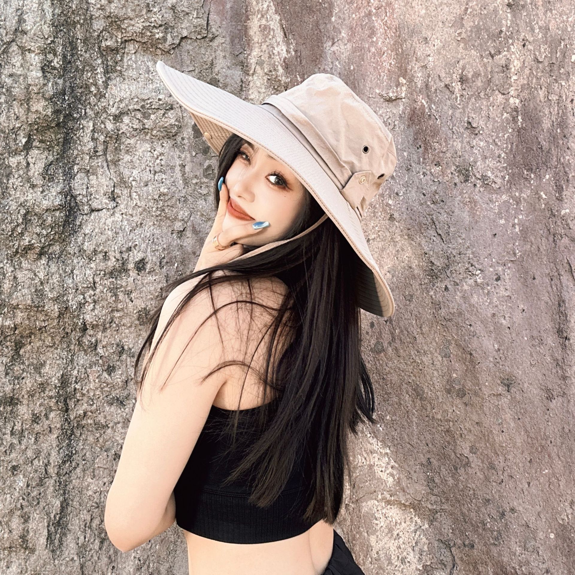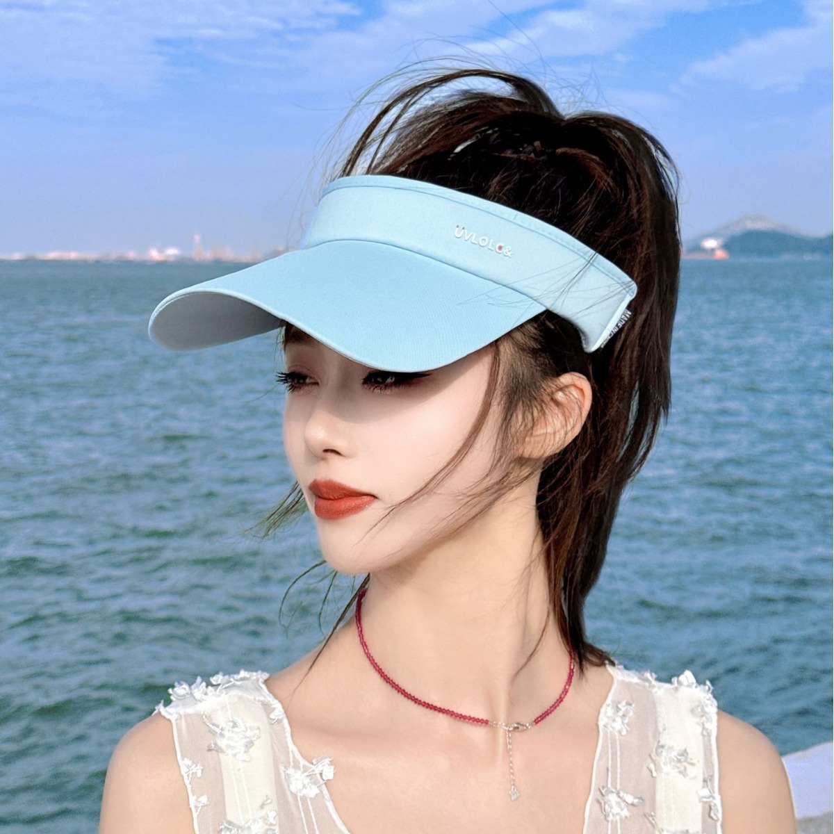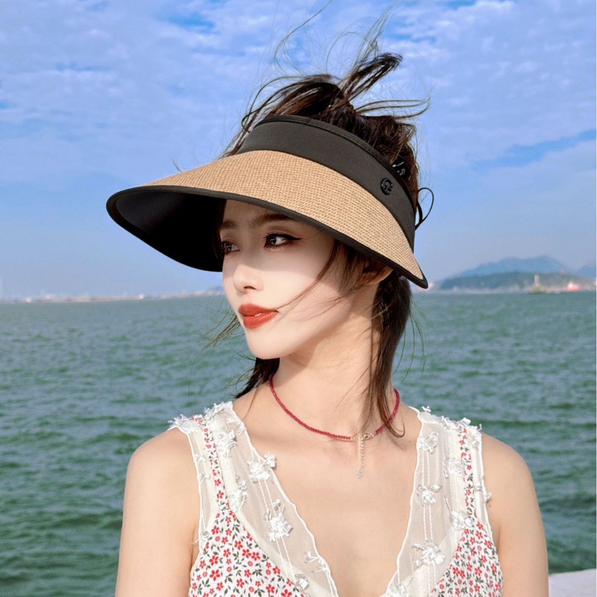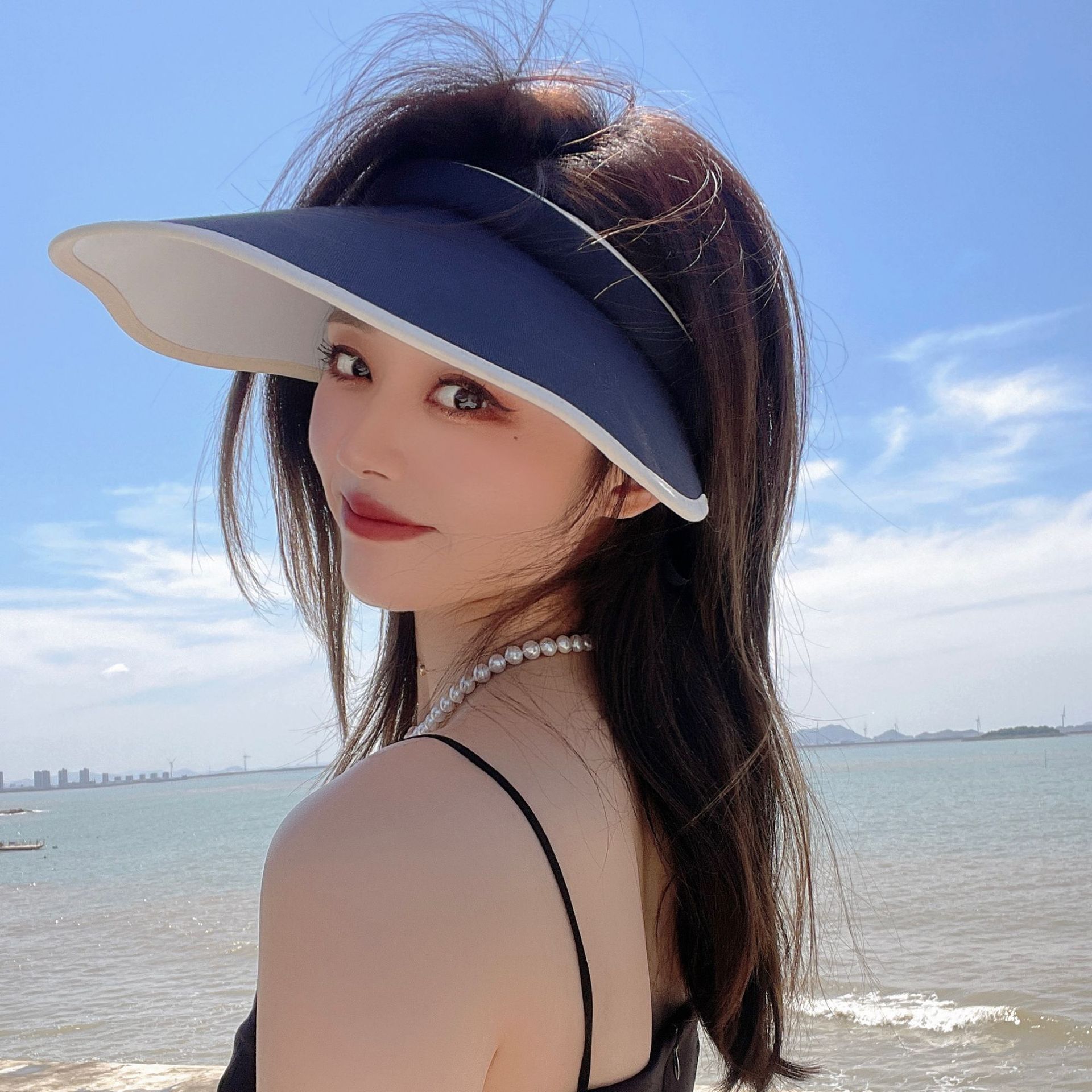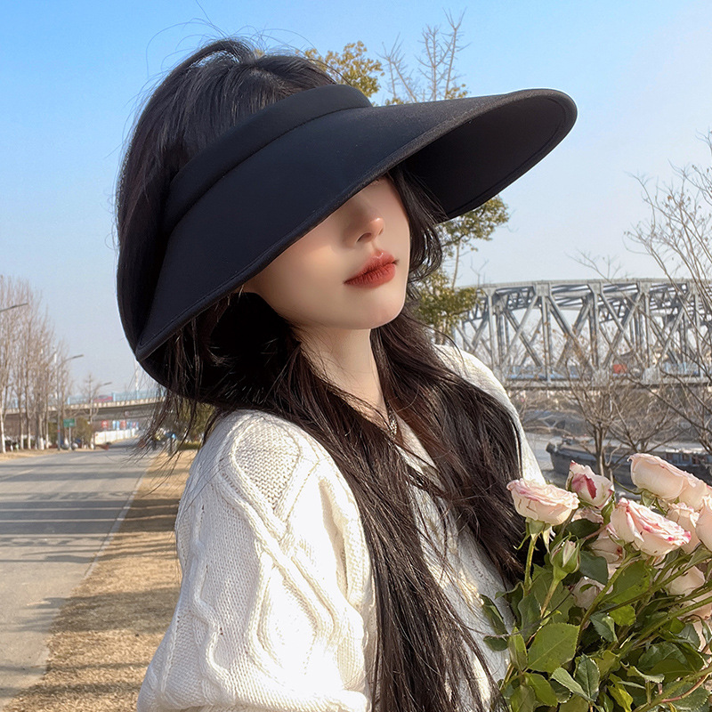 夏季遮脸沙滩遮阳帽贝壳防晒帽女防紫外线便携空顶女发箍帽子