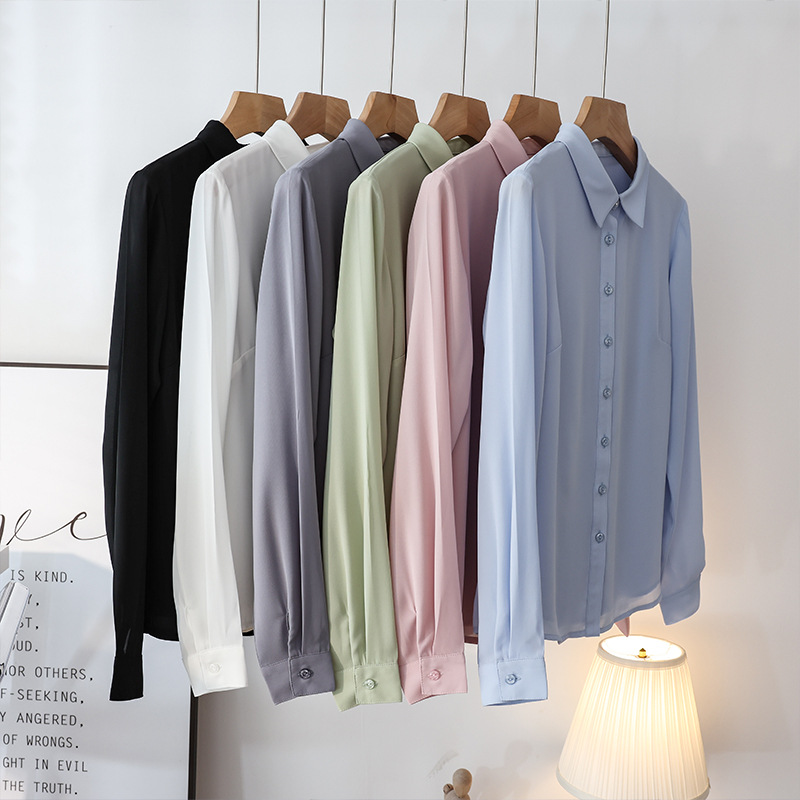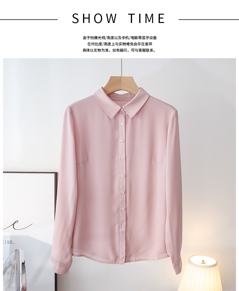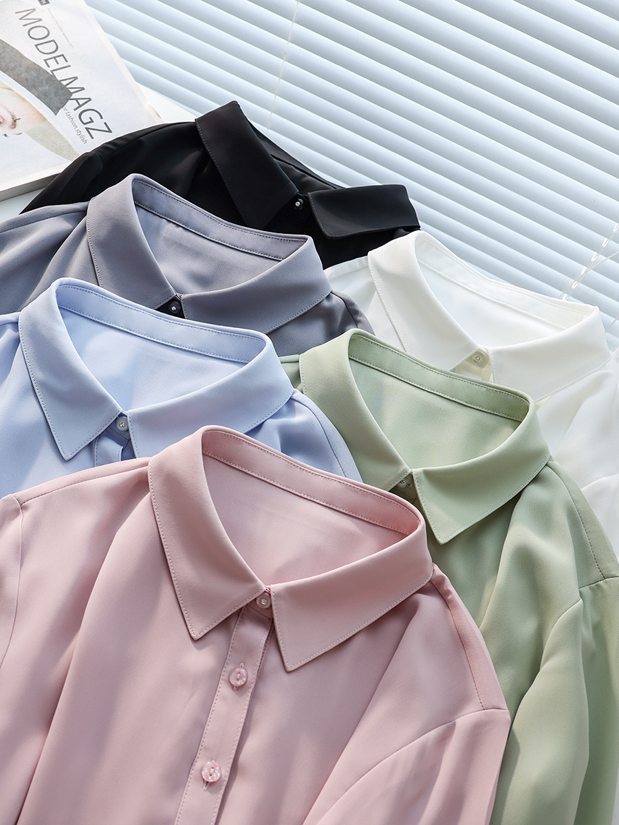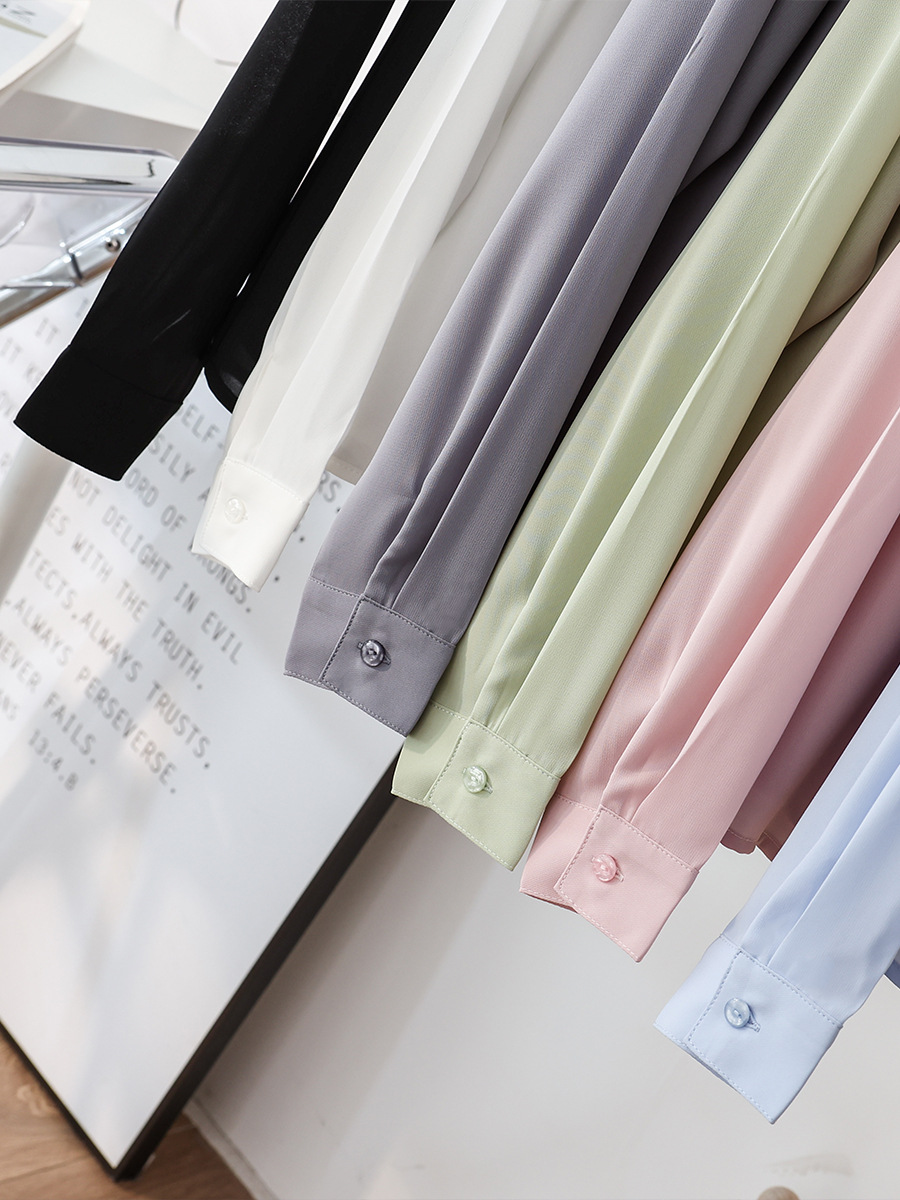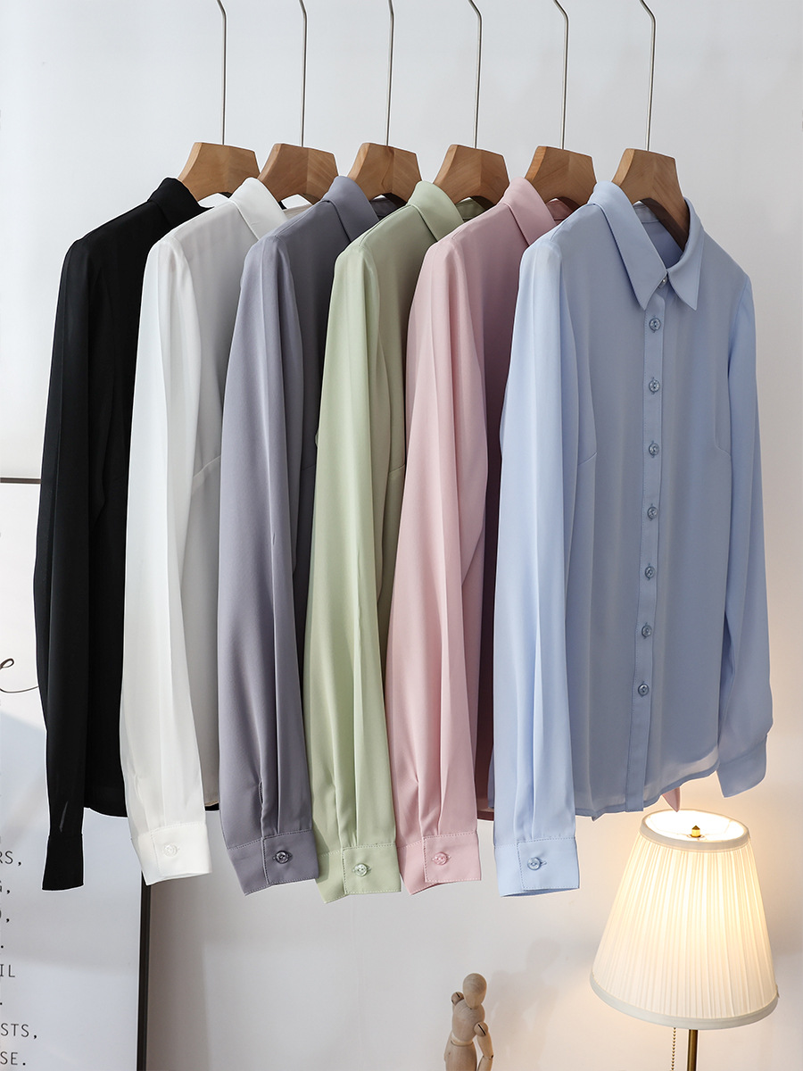 春夏新款丝滑垂坠透气雪纺白色衬衫女长袖韩范职业OL工装打底上衣