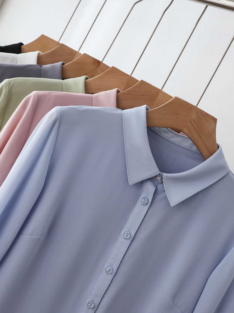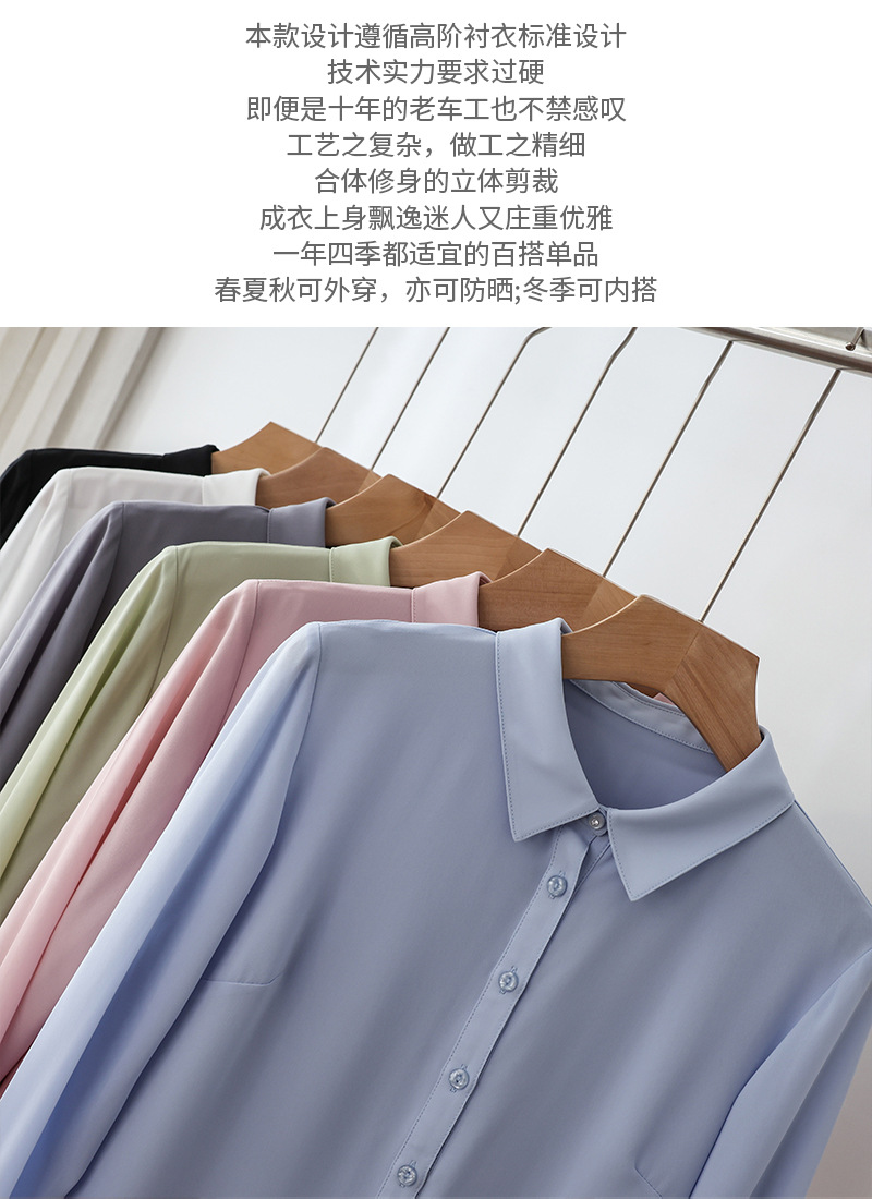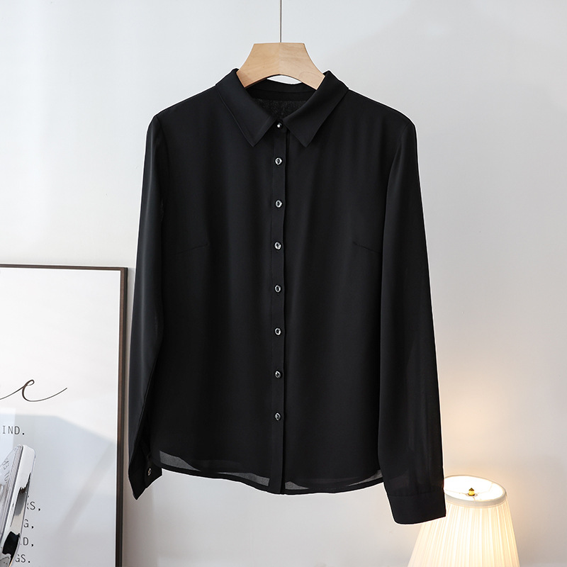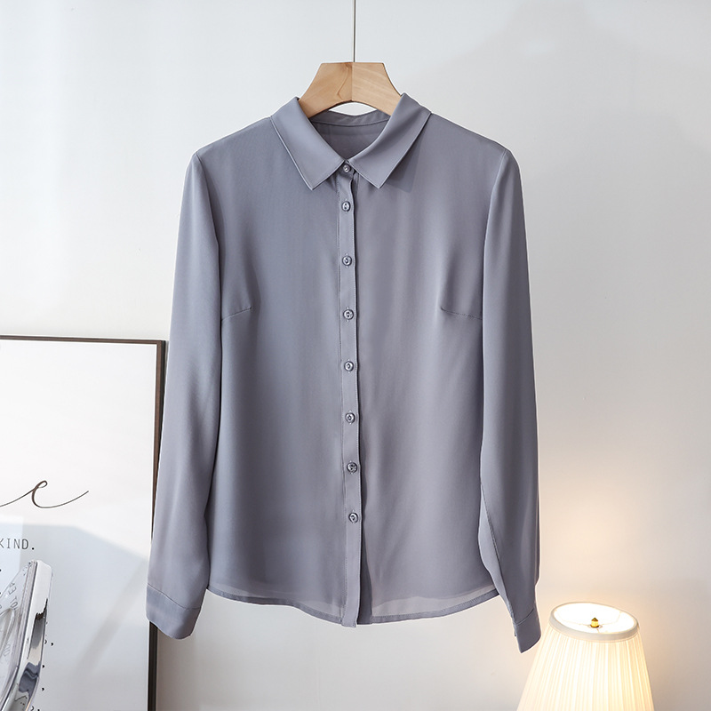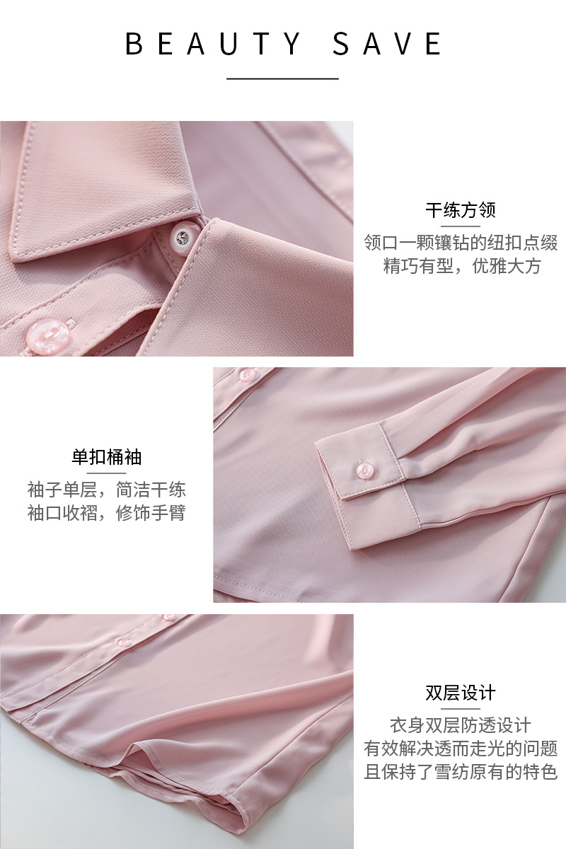 春夏新款丝滑垂坠透气雪纺白色衬衫女长袖韩范职业OL工装打底上衣