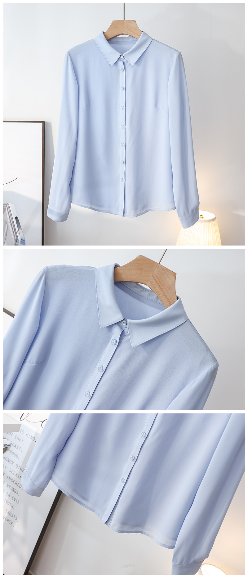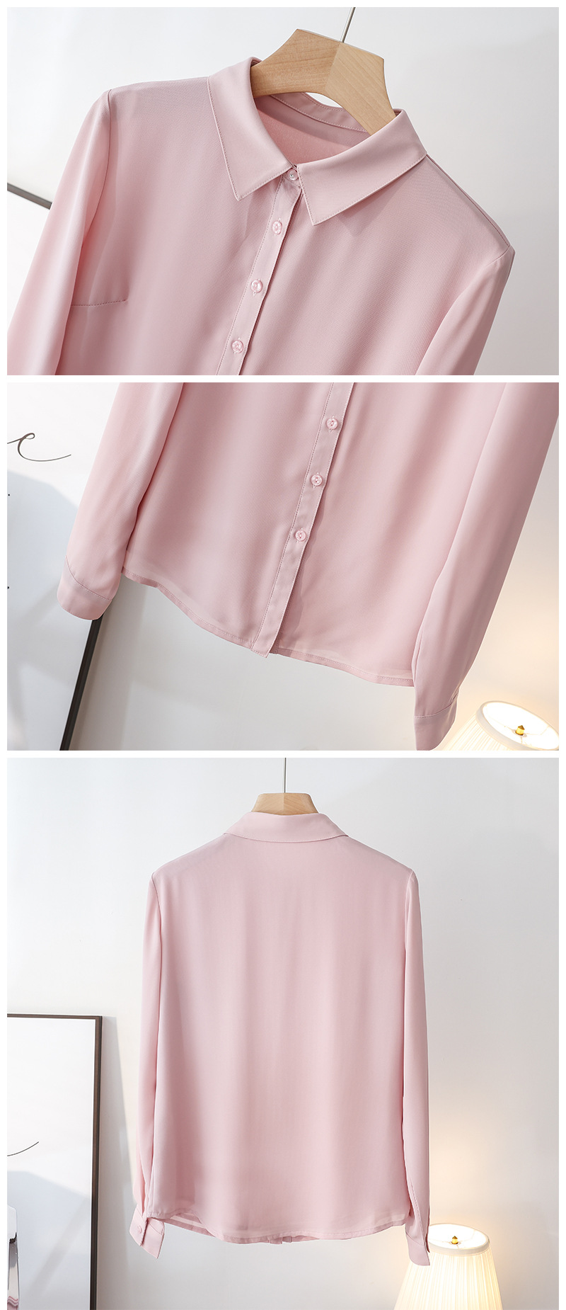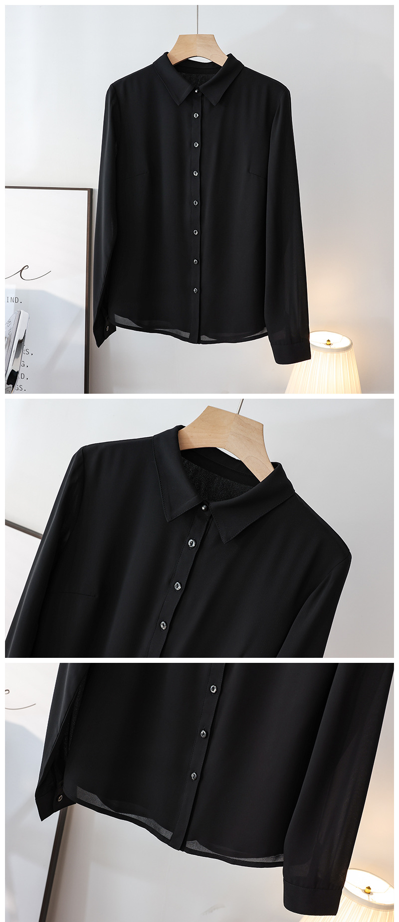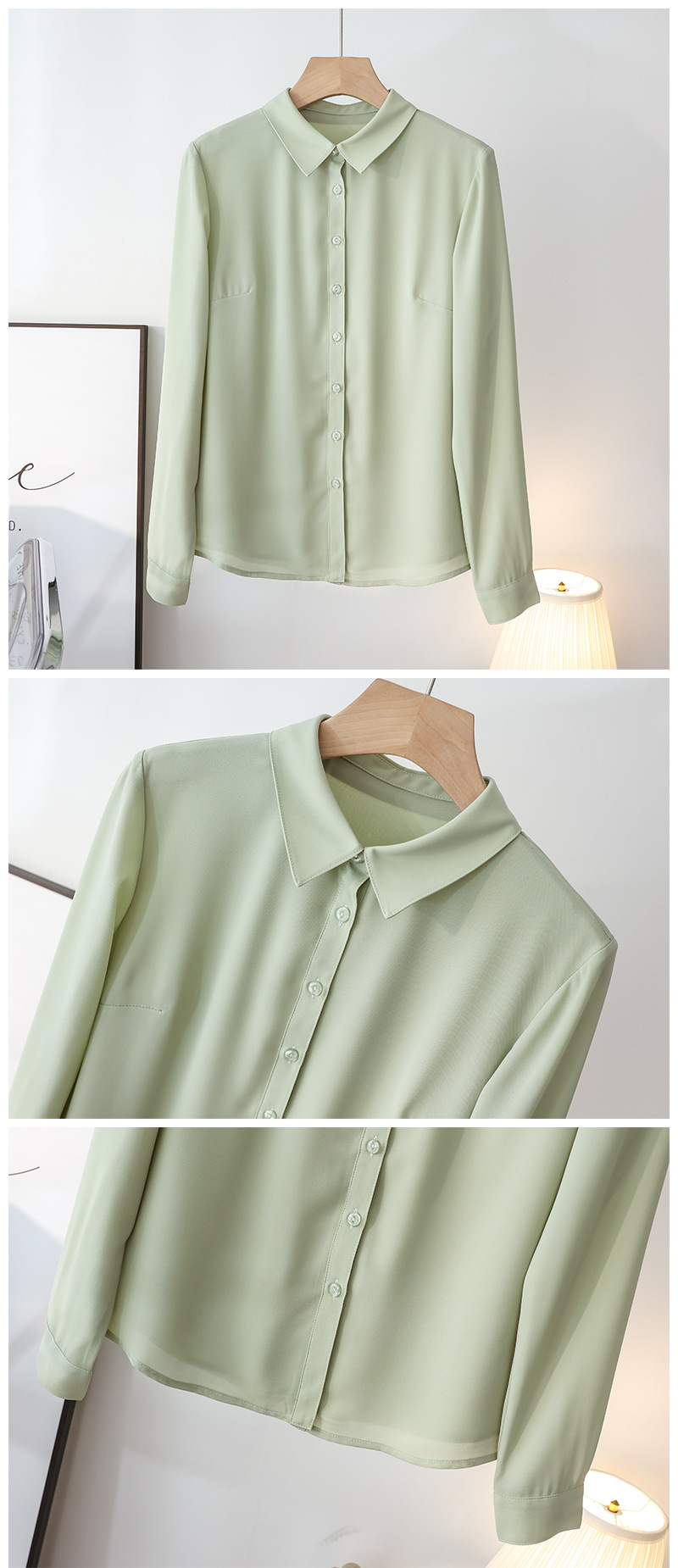 春夏新款丝滑垂坠透气雪纺白色衬衫女长袖韩范职业OL工装打底上衣