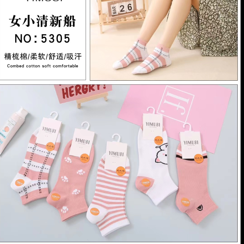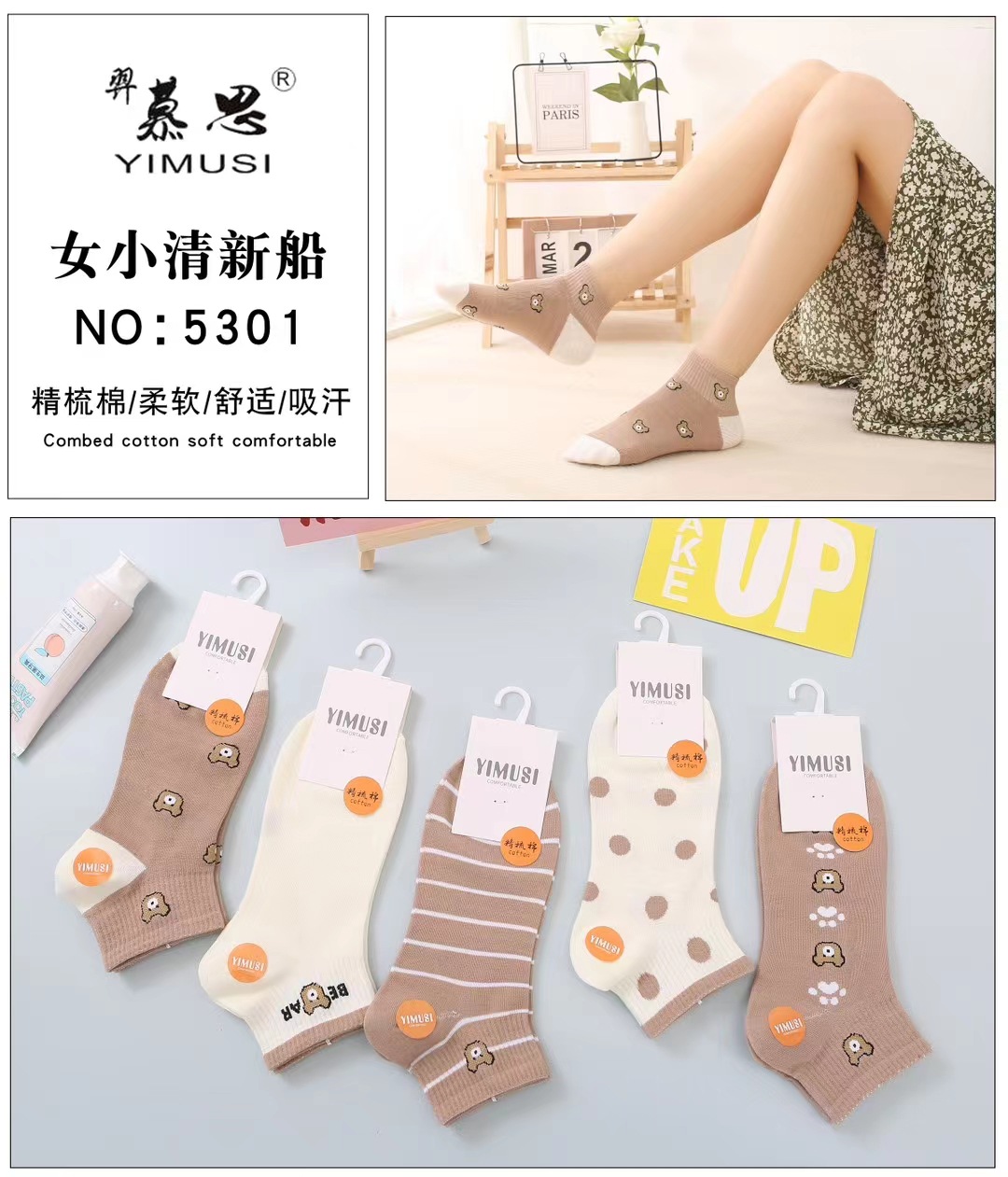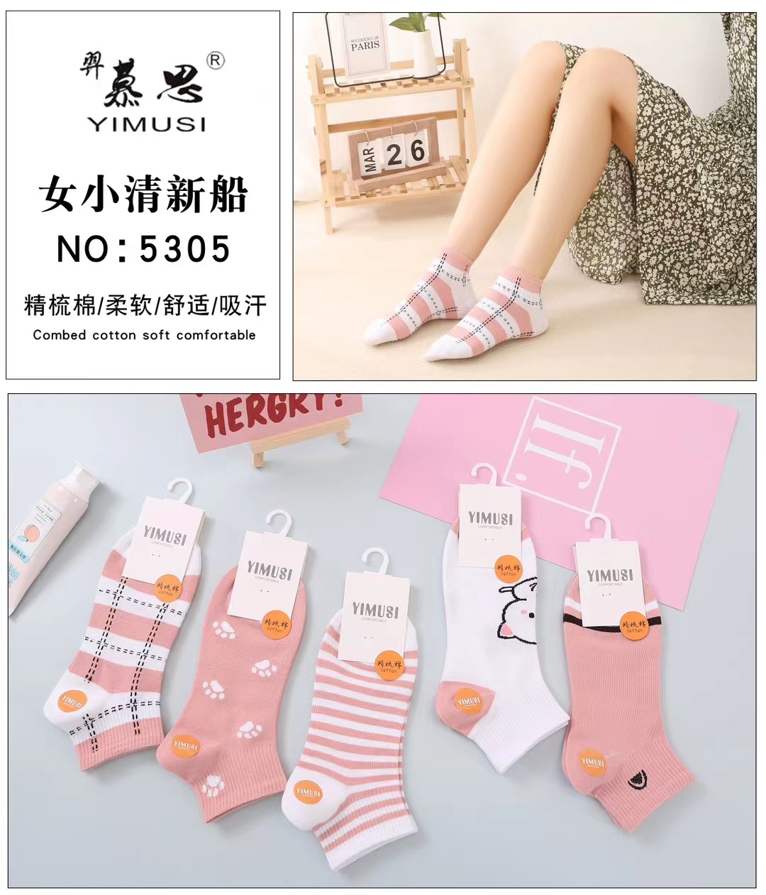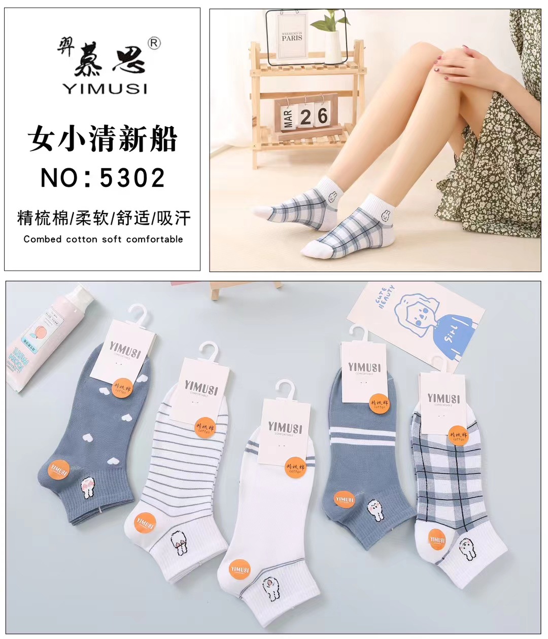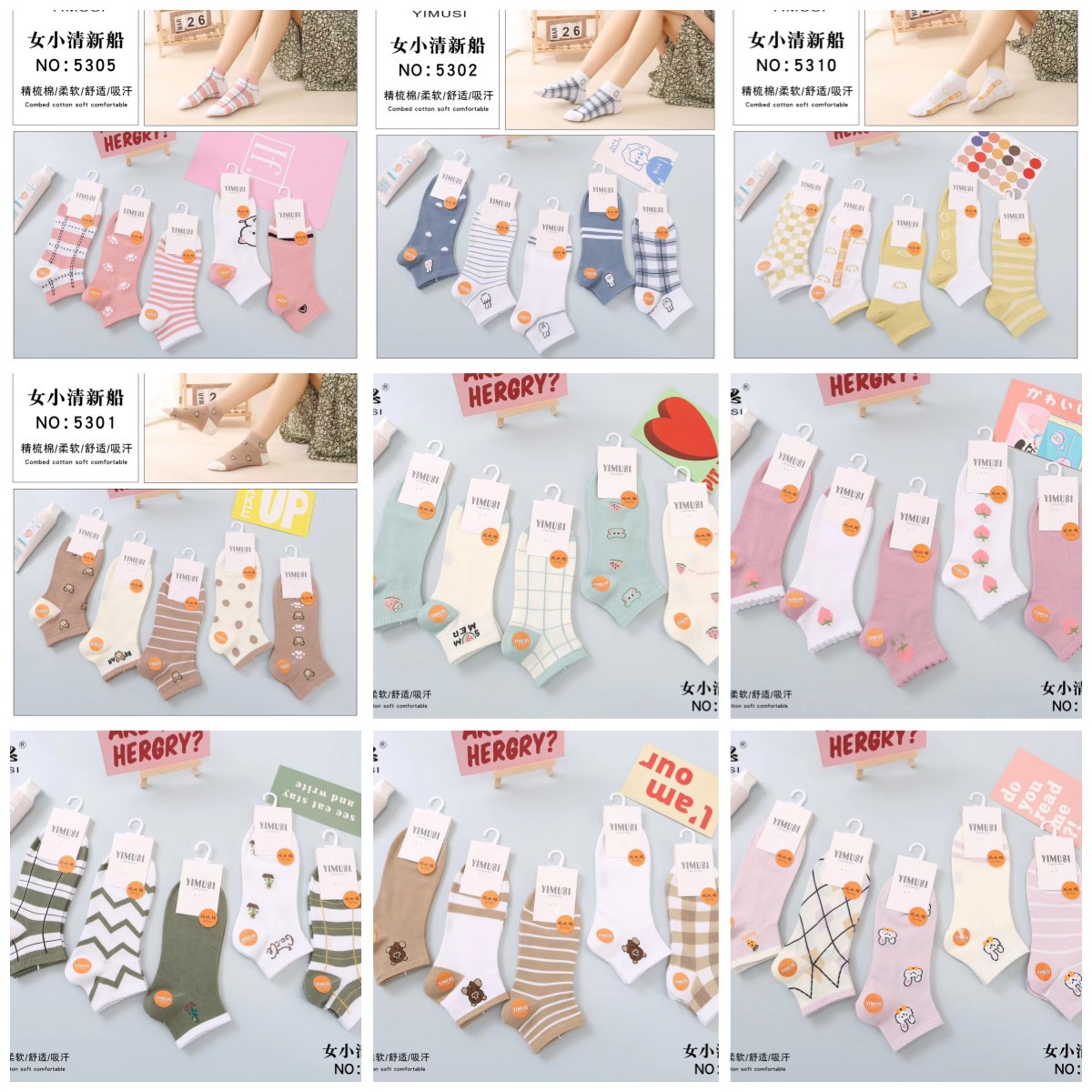船袜春夏新款运动学院风彩棉女小清新船袜透气吸汗隐形女士批发