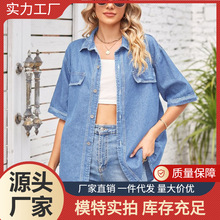 欧美跨境 2024夏季新款亚马逊独立站水洗修身无袖 牛仔背心上衣女