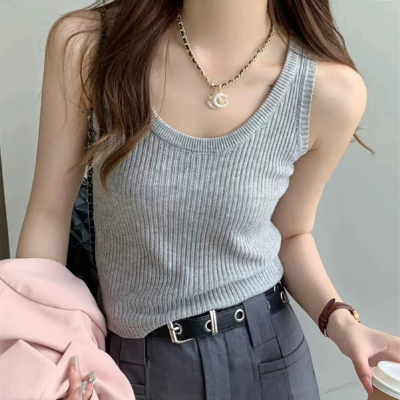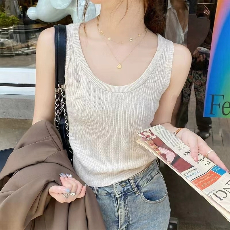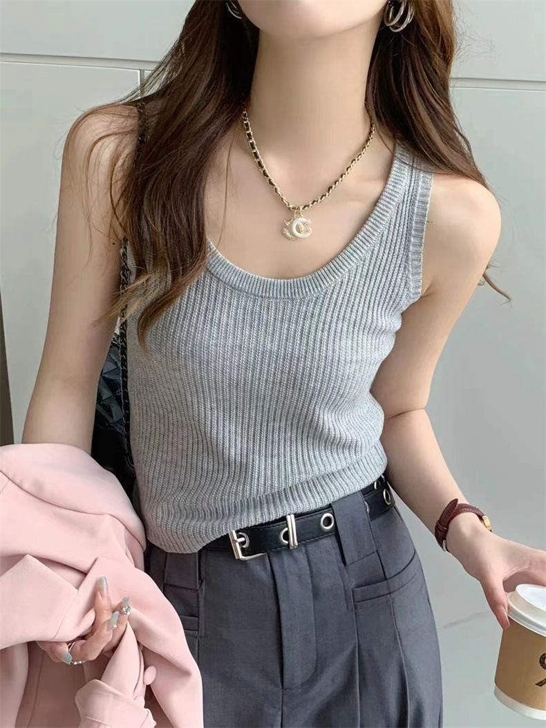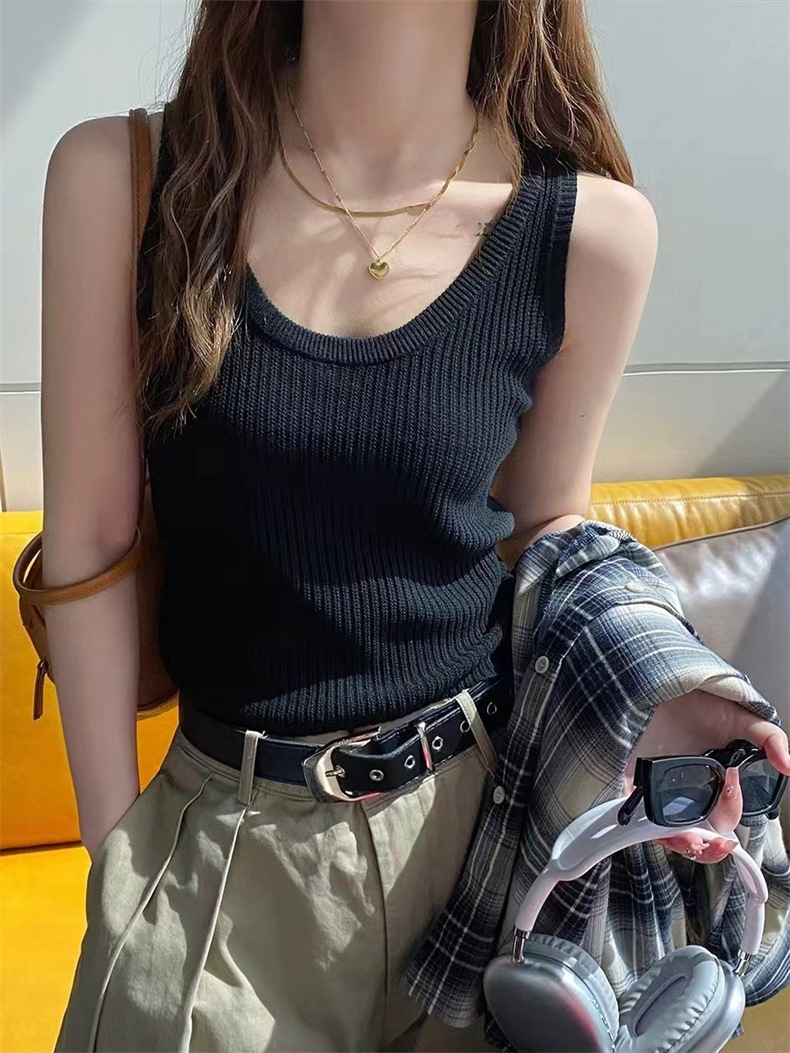 针织吊带背心女2023夏季新款纯色简约西装内搭上衣修身显瘦打底衫