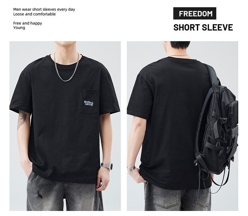 夏季新款短袖男T恤男士半袖潮牌港风时尚休闲男款宽松体恤打底衫