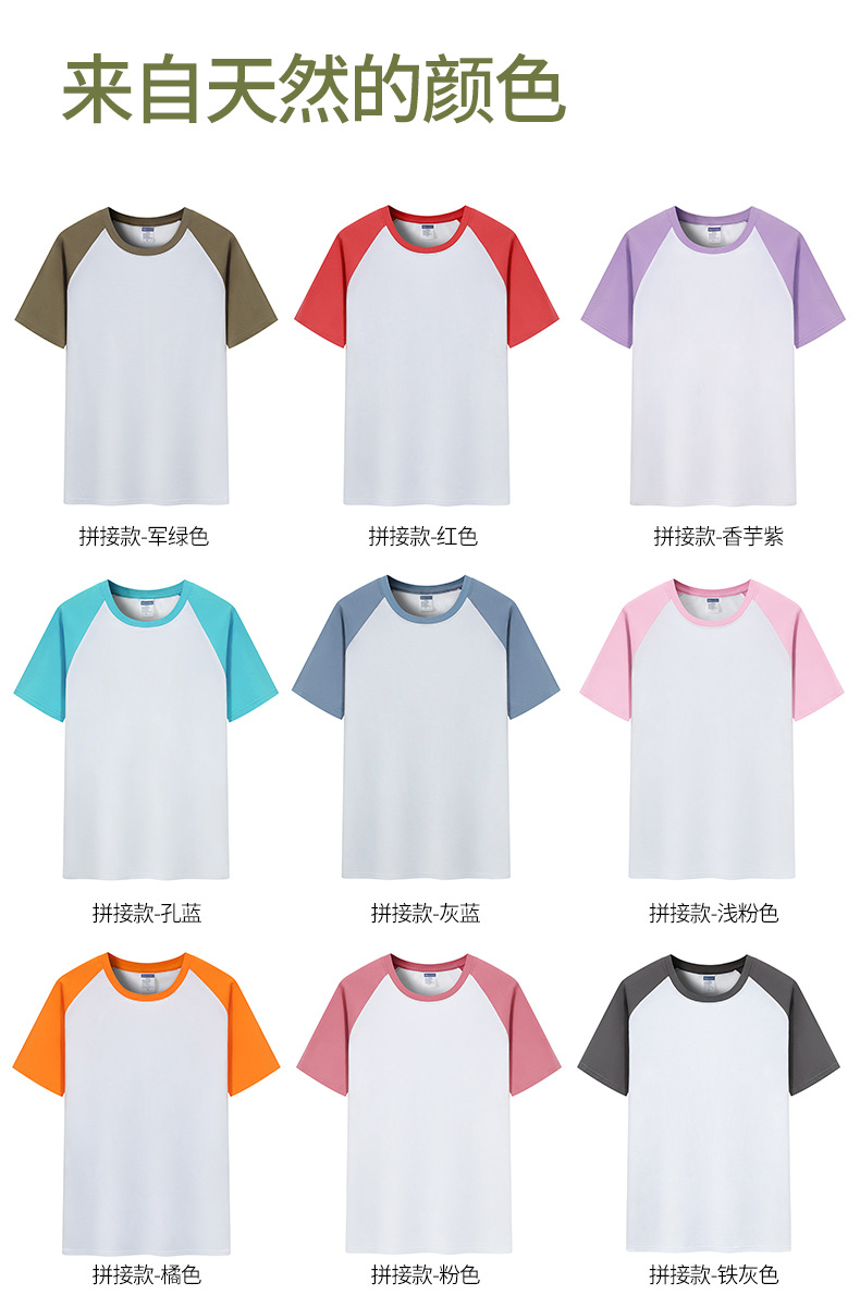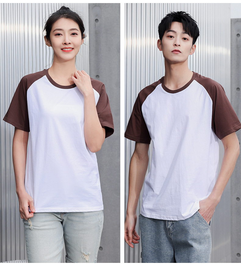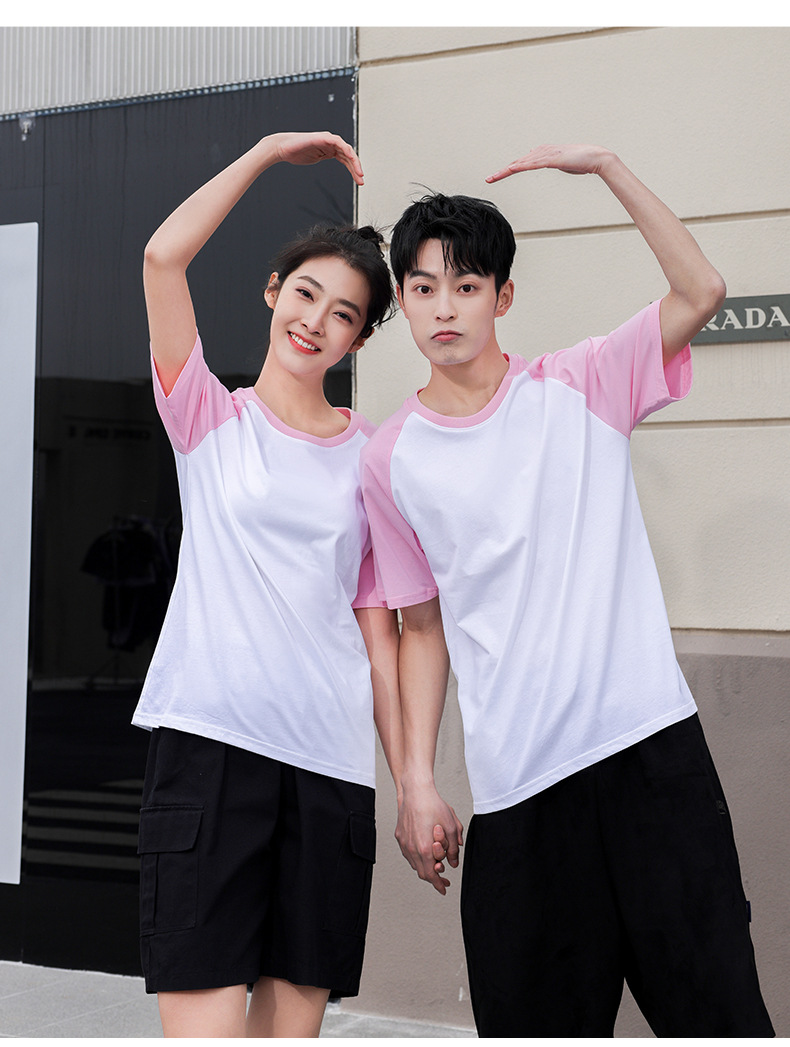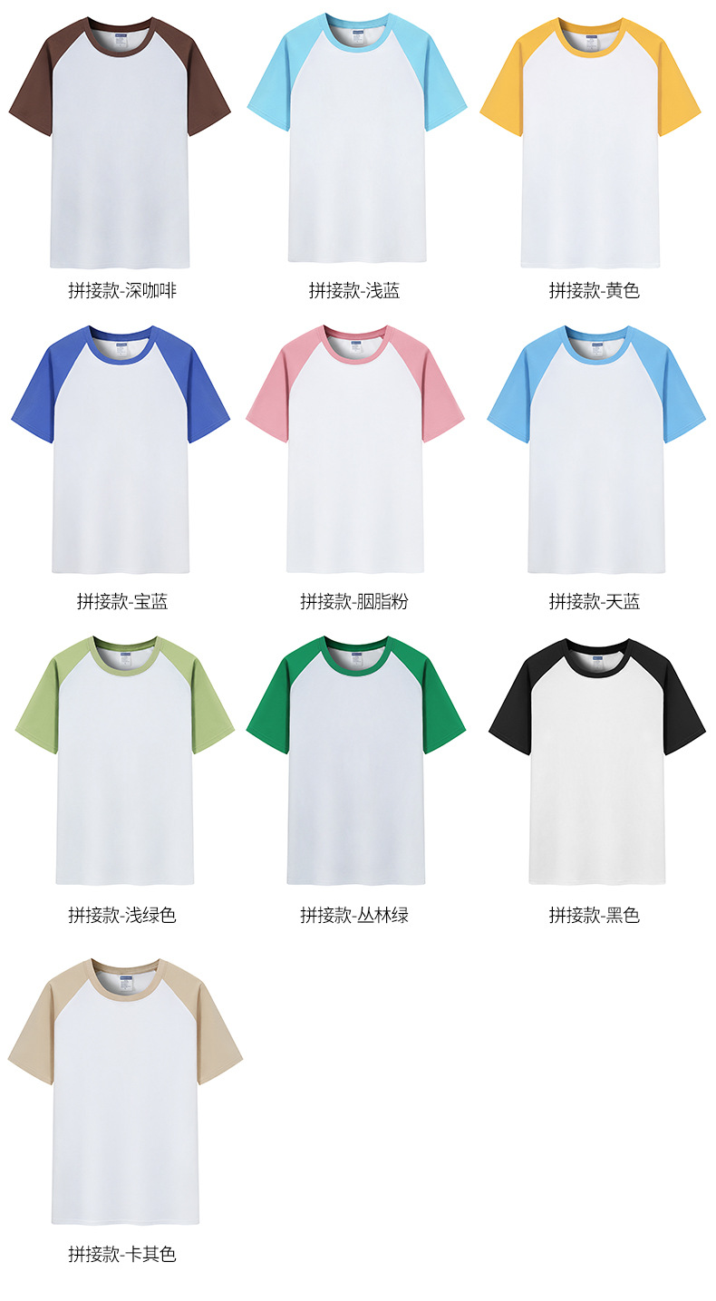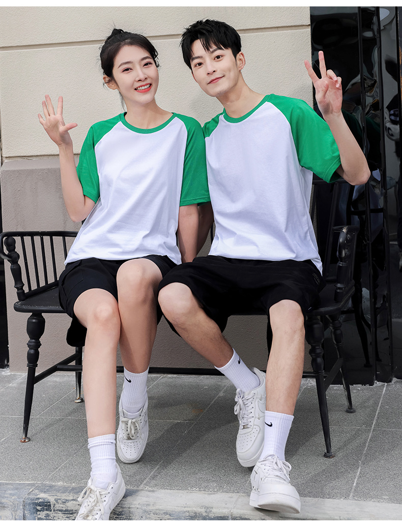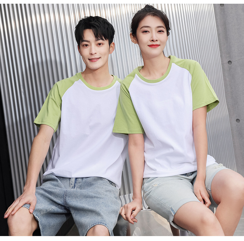插肩纯棉t恤定制印logo班服撞色圆领短袖文化衫广告工作服印字