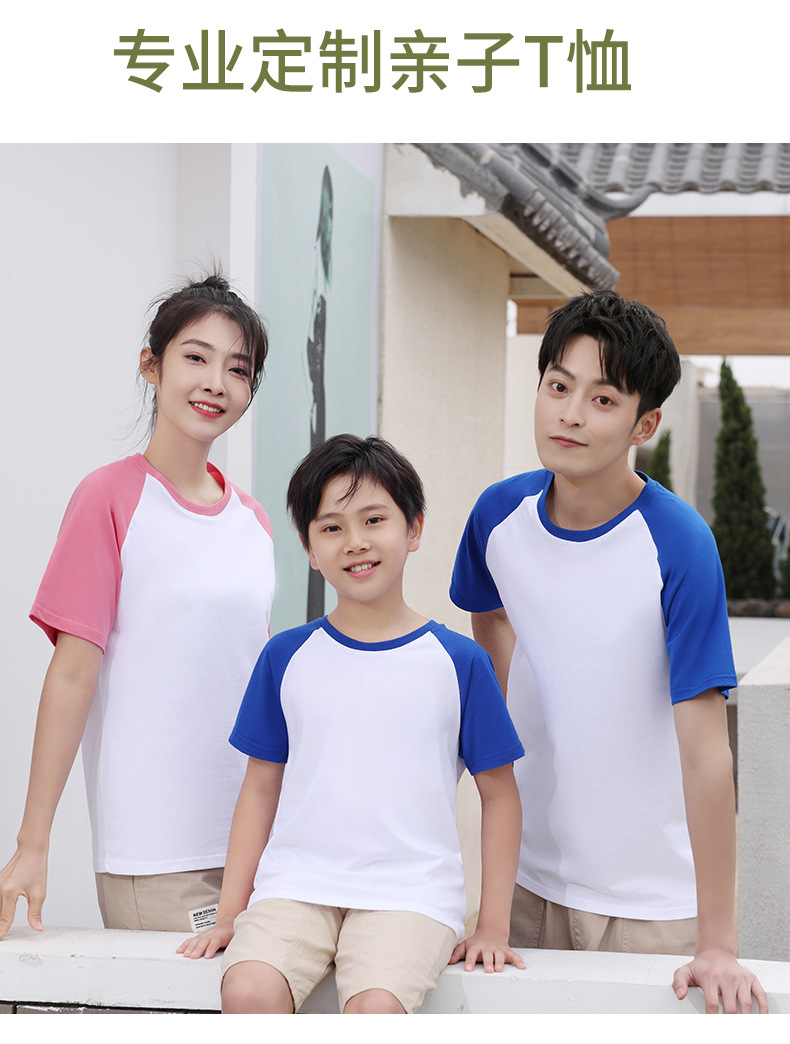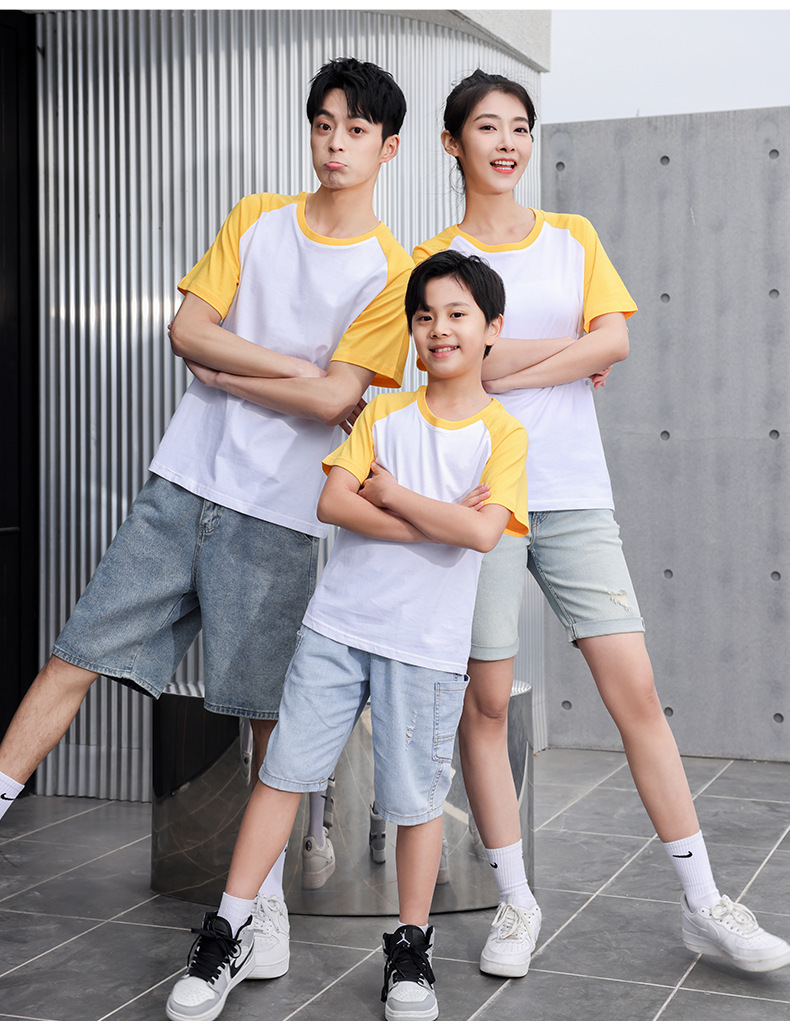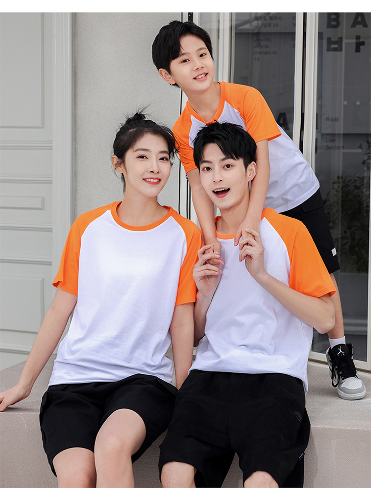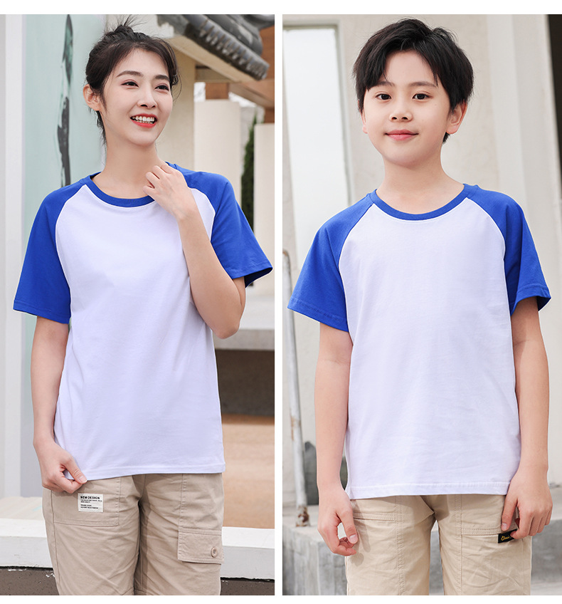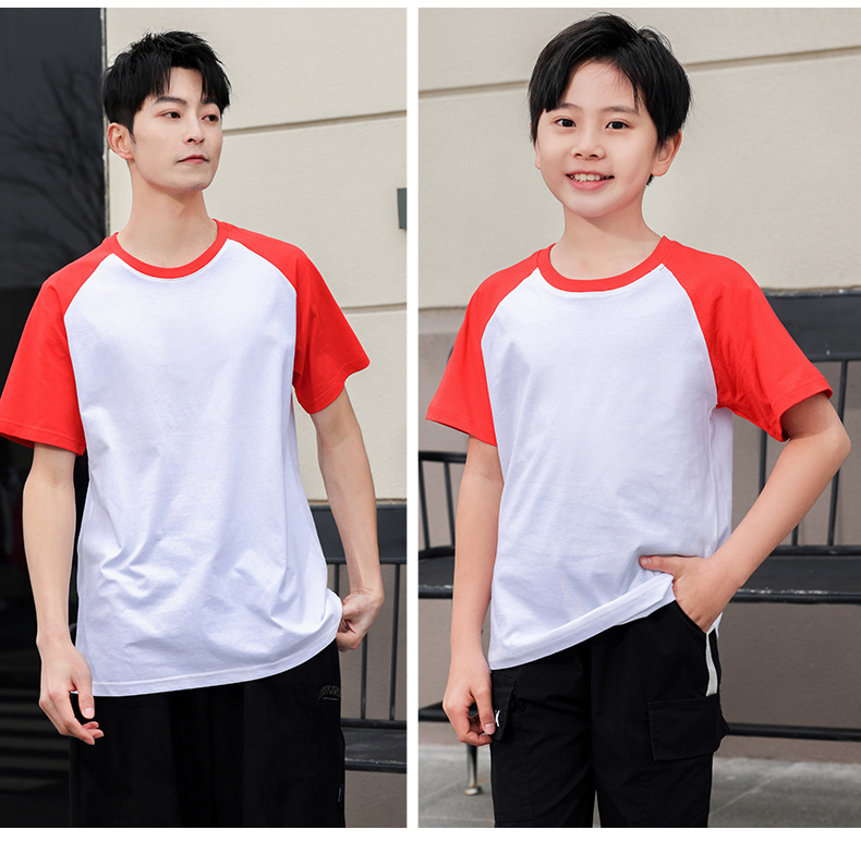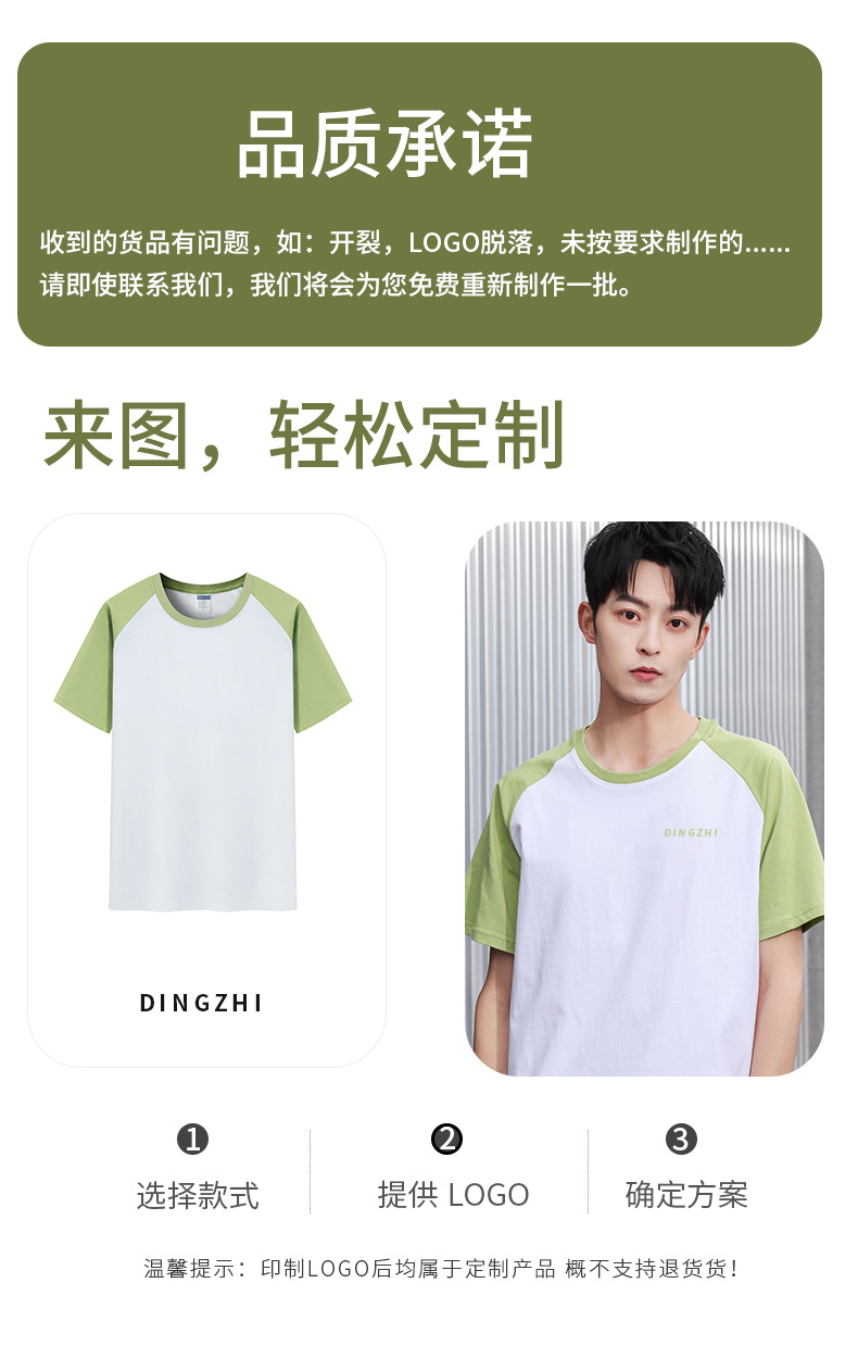 插肩纯棉t恤定制印logo班服撞色圆领短袖文化衫广告工作服印字