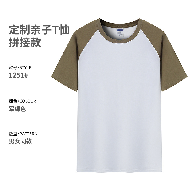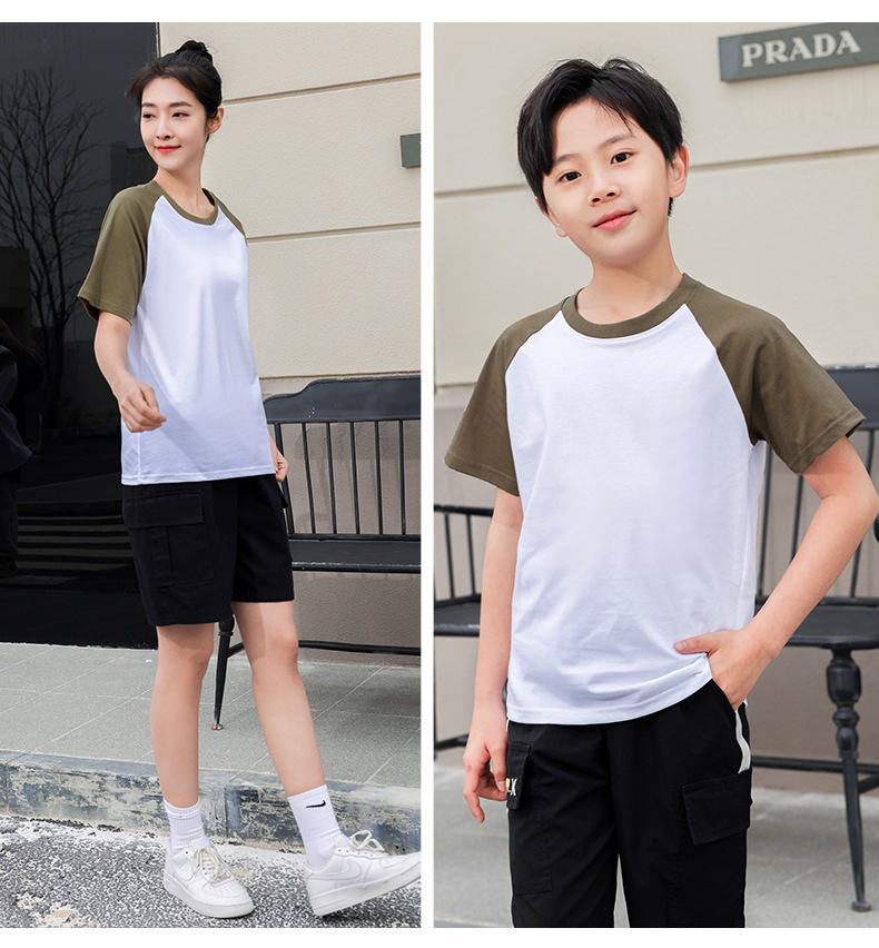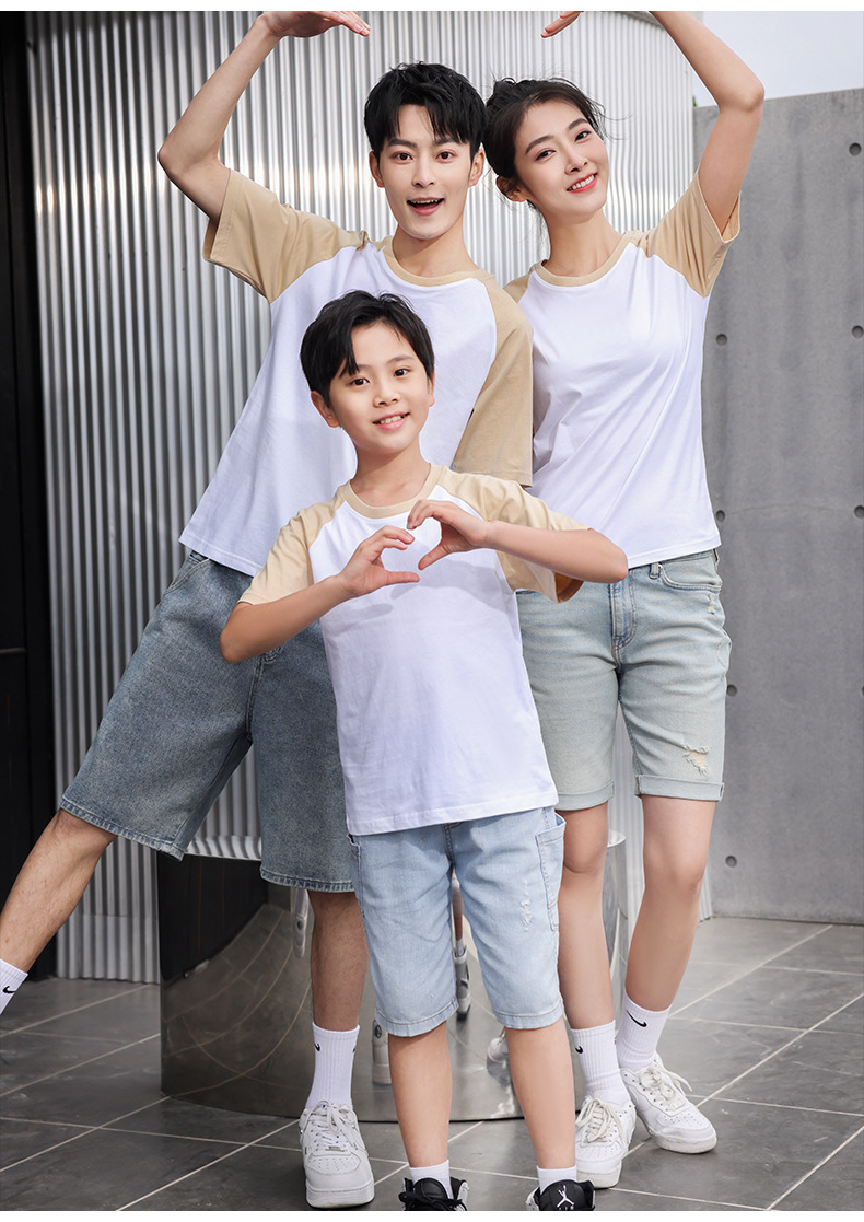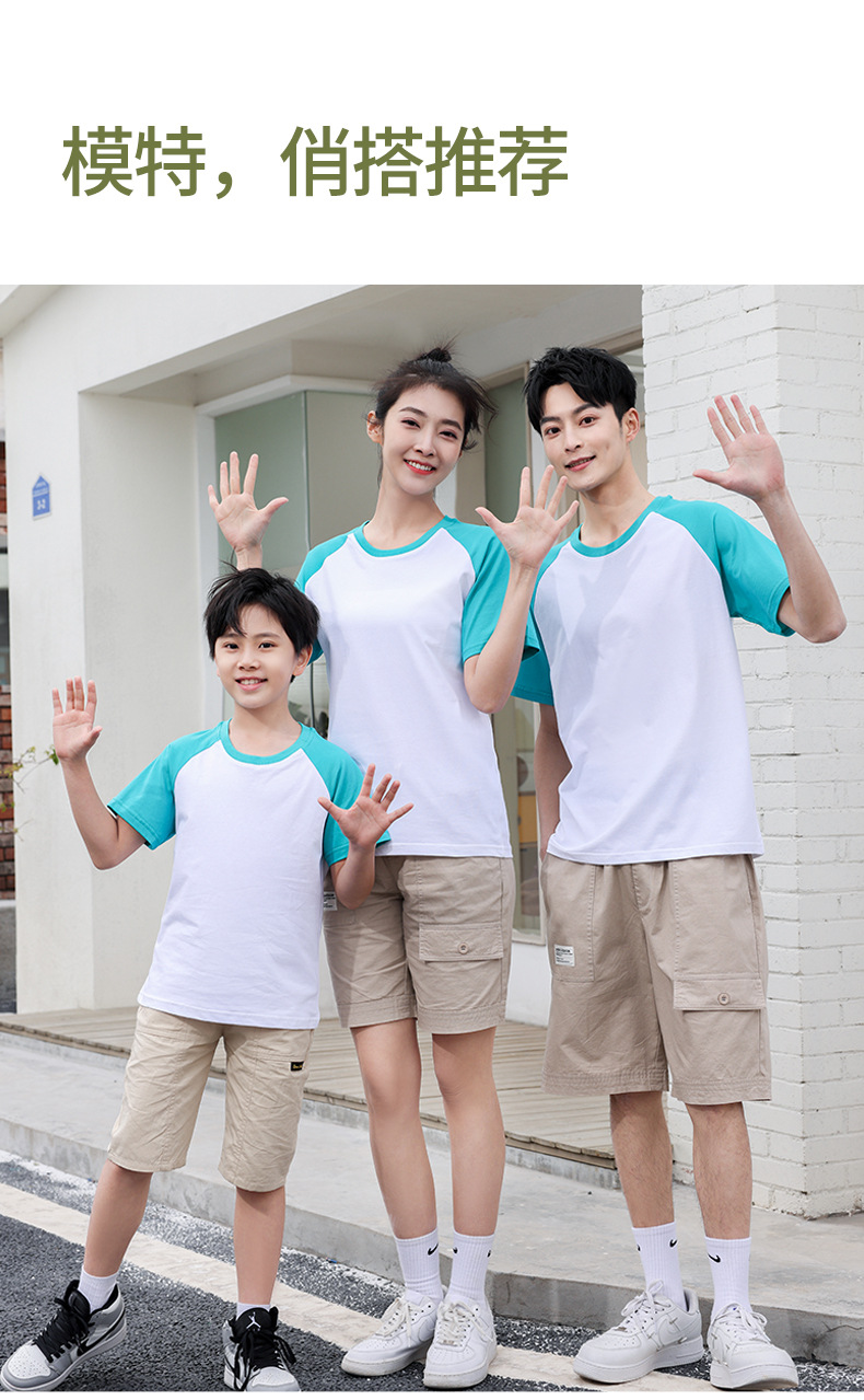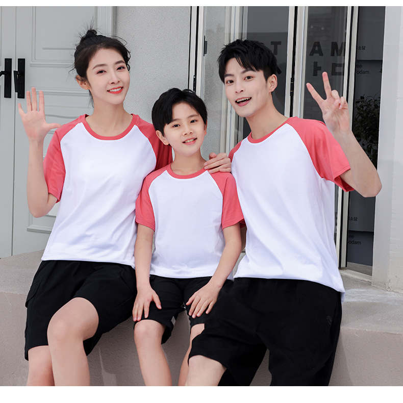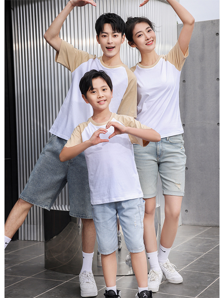 插肩纯棉t恤定制印logo班服撞色圆领短袖文化衫广告工作服印字