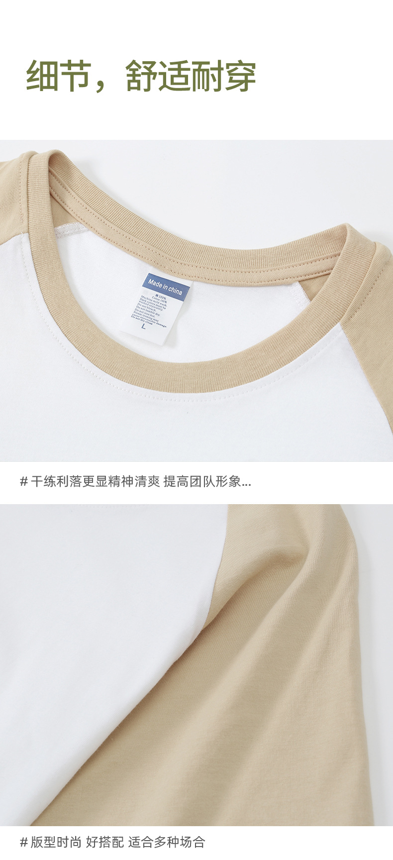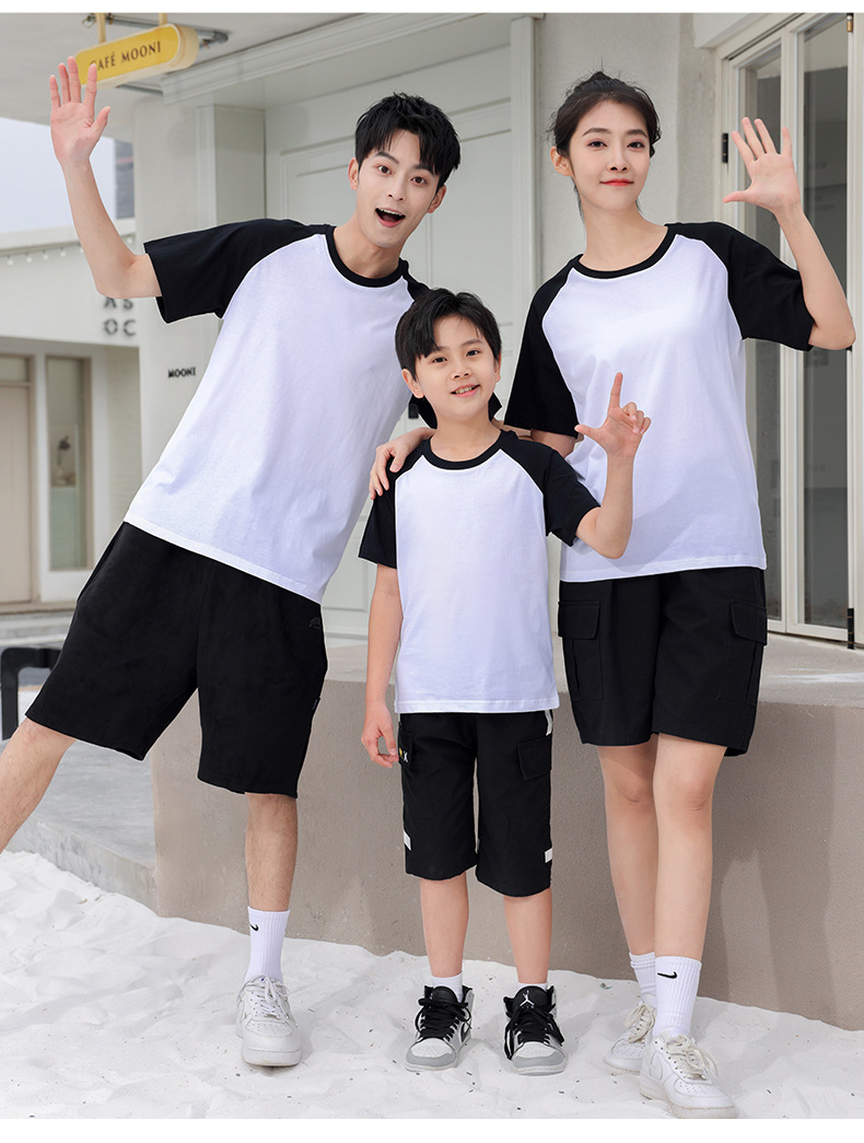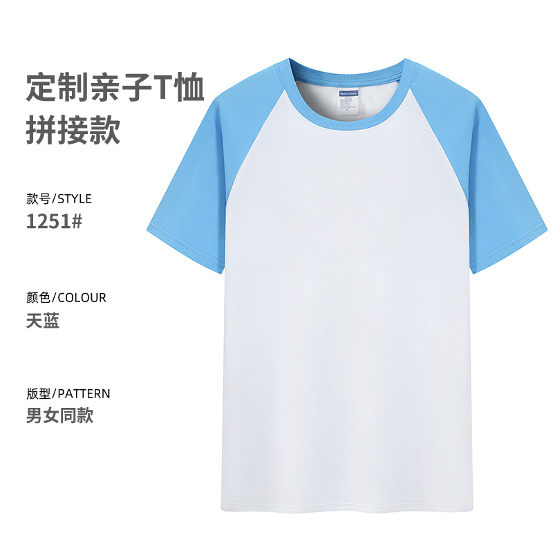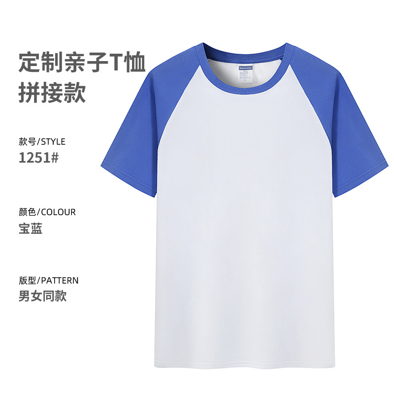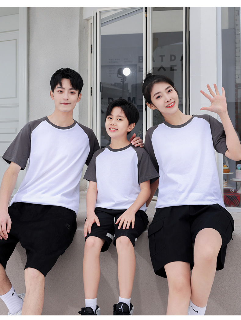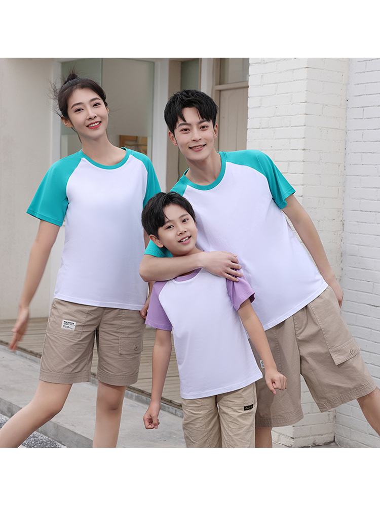 插肩纯棉t恤定制印logo班服撞色圆领短袖文化衫广告工作服印字