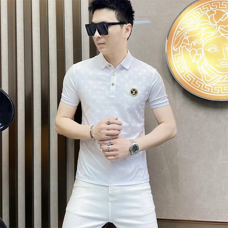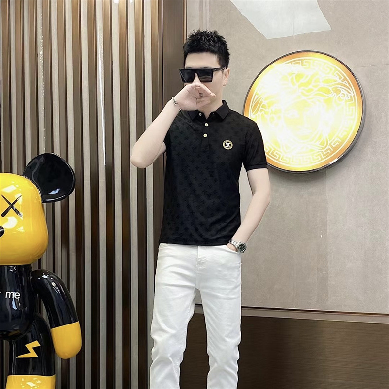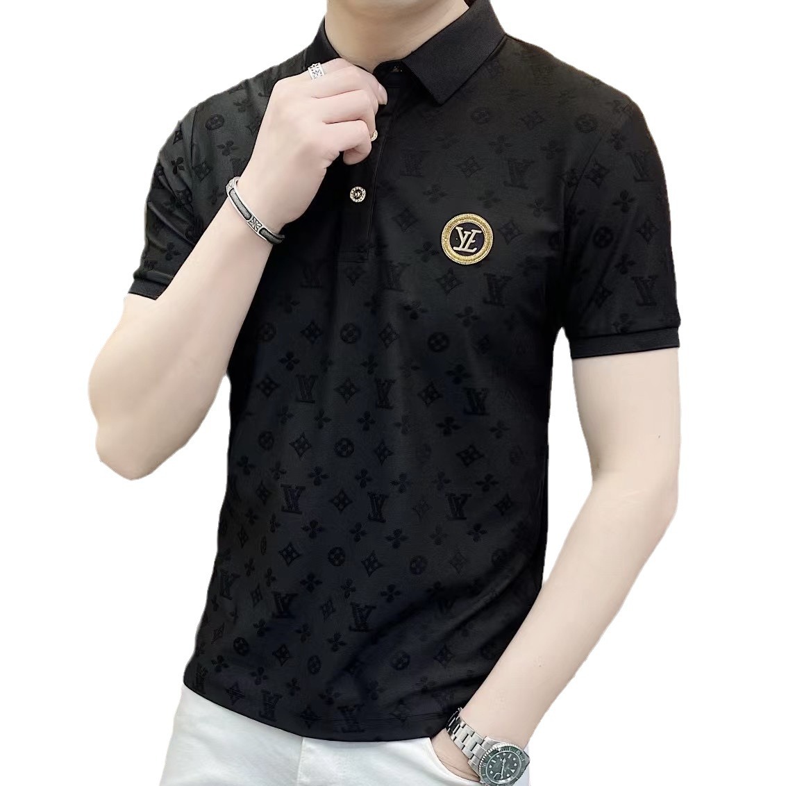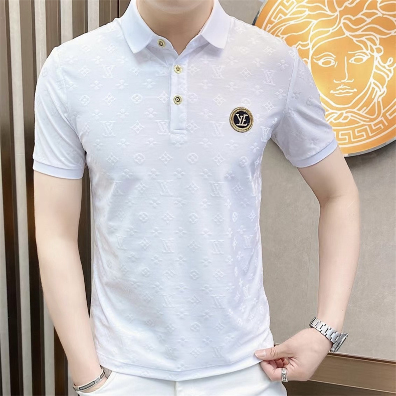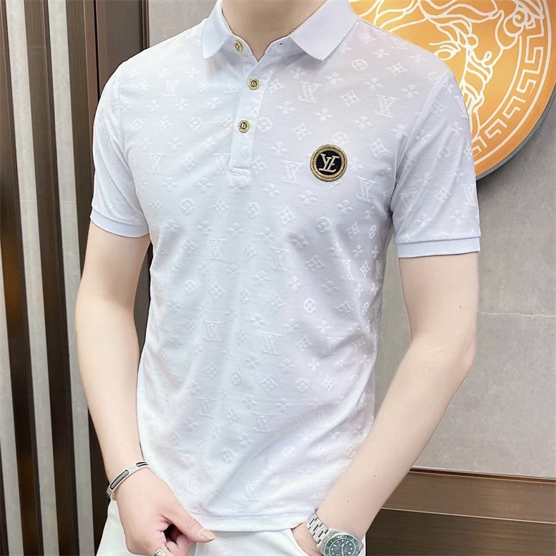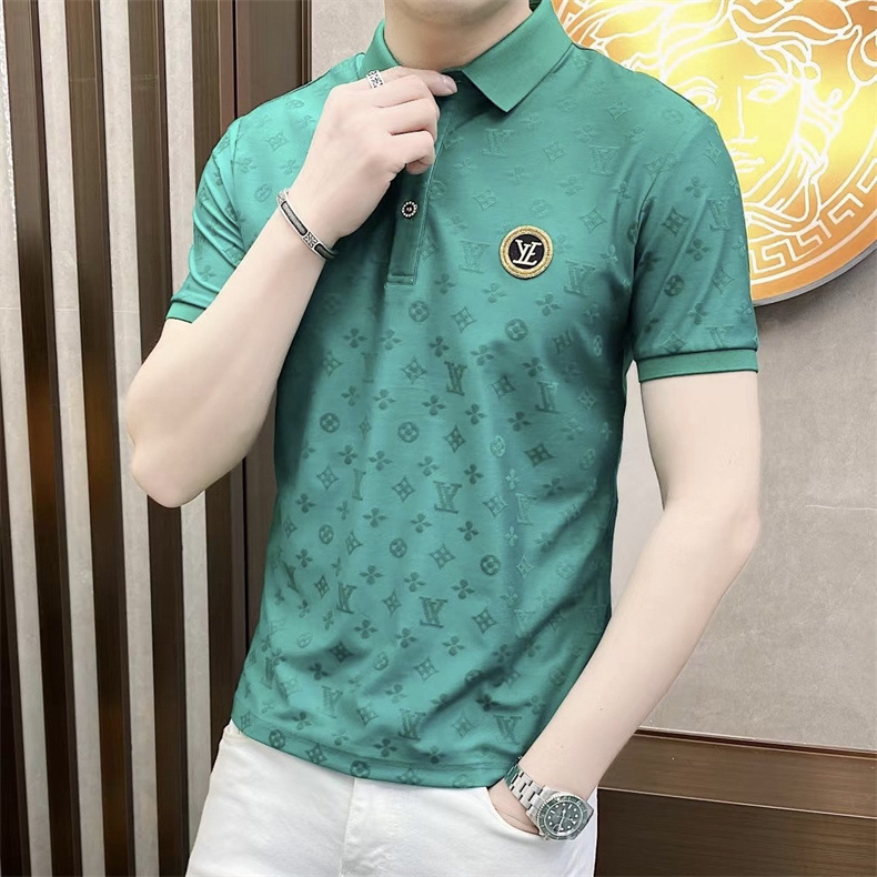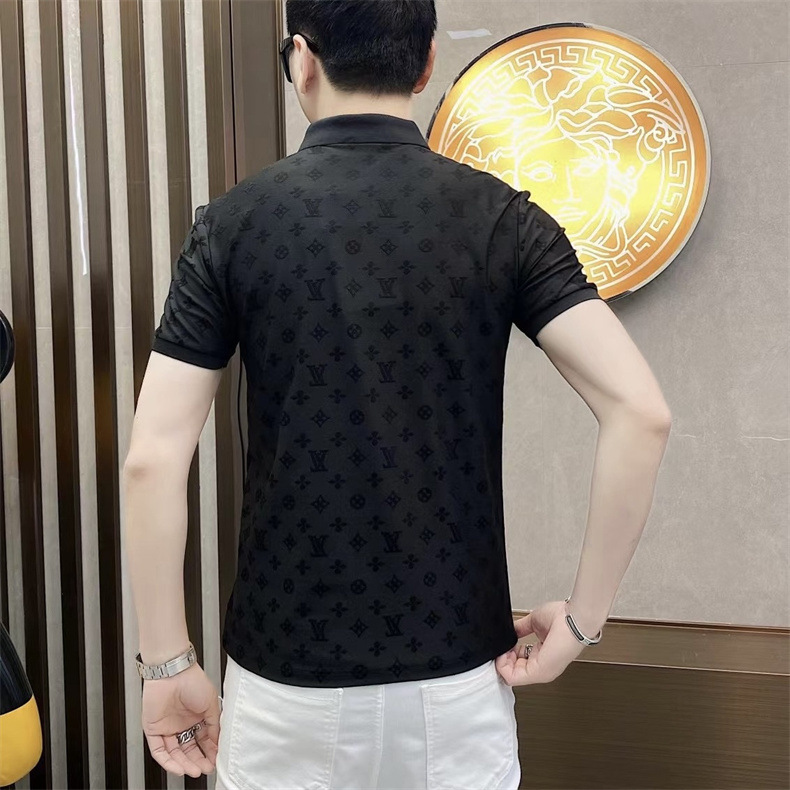 Polo衫2024夏季新款提花暗纹字母翻领短袖休闲有领男中青年半袖t
