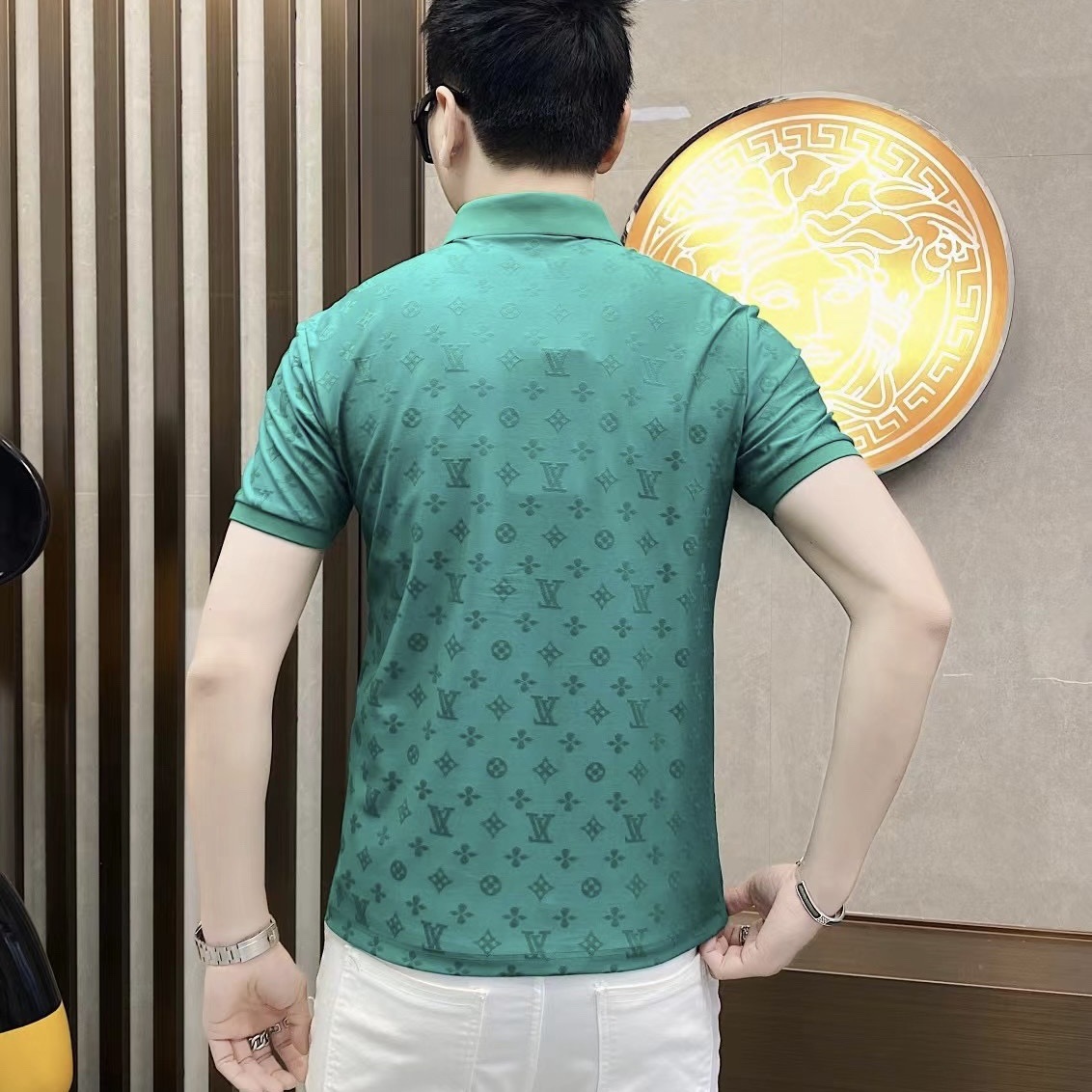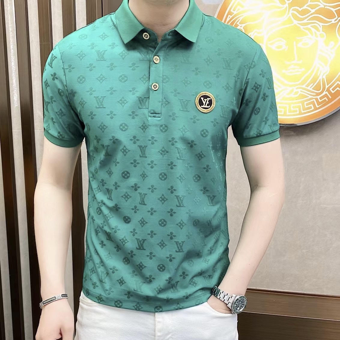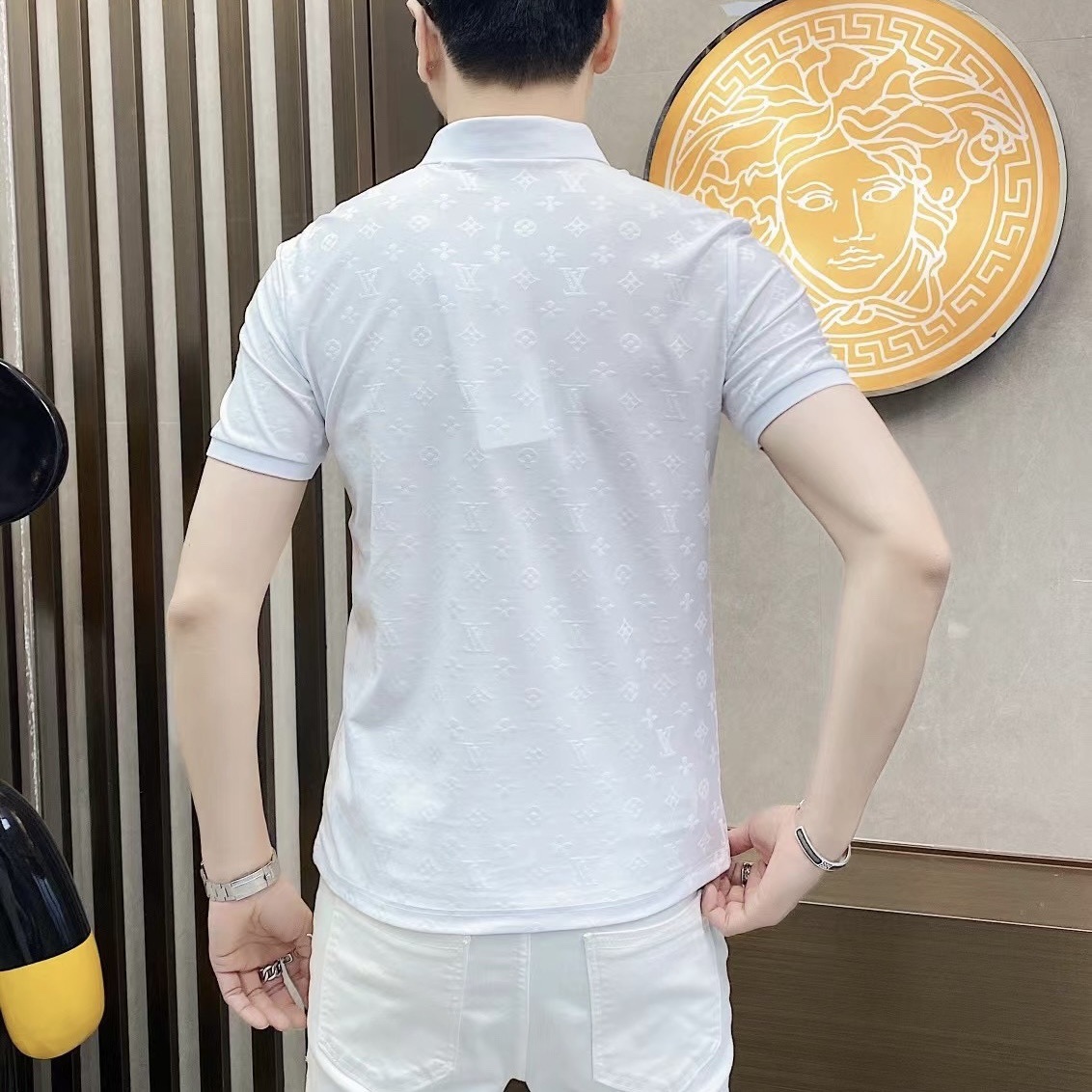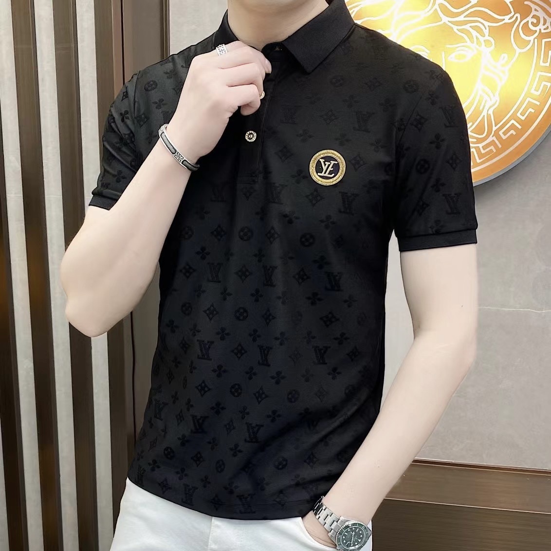 Polo衫2024夏季新款提花暗纹字母翻领短袖休闲有领男中青年半袖t