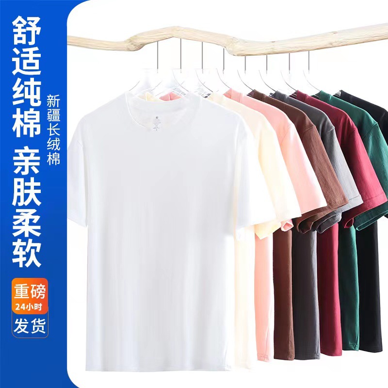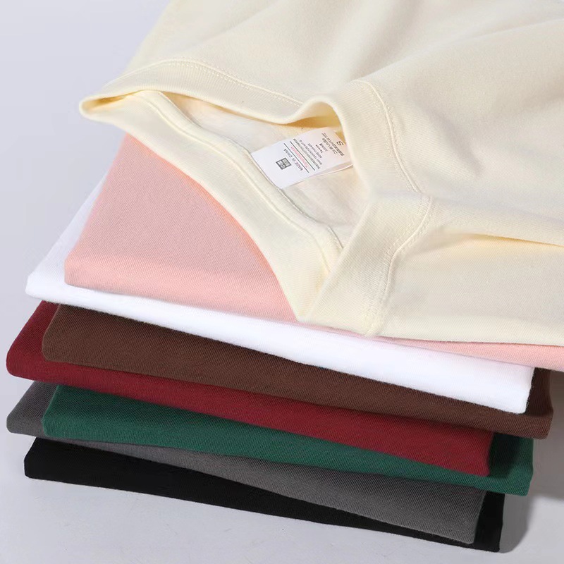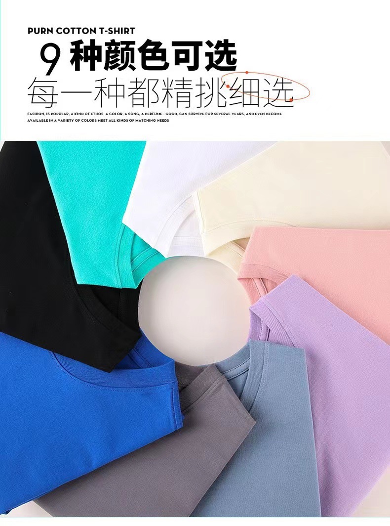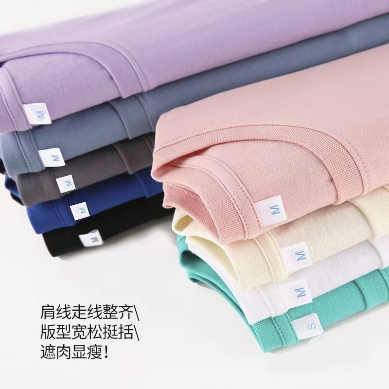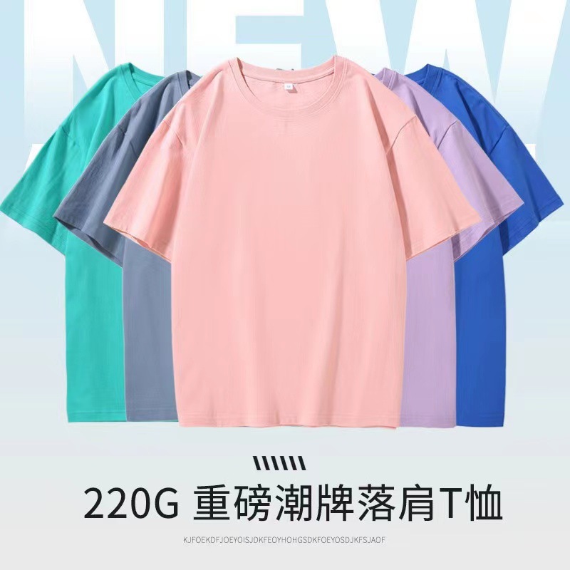 新品重磅220克精梳棉小落肩t恤男女情侣衫印制logo团体服潮流T恤