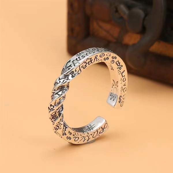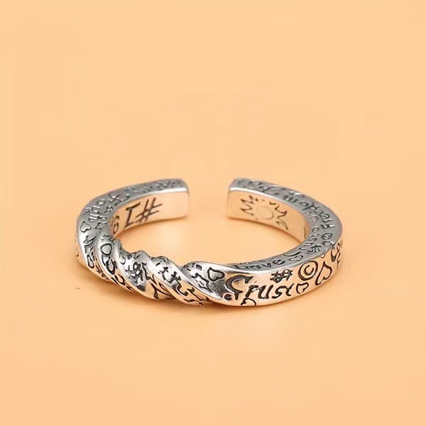 笑脸涂鸦戒指男ins小众复古个性开口时尚指环潮人单身食指戒手饰