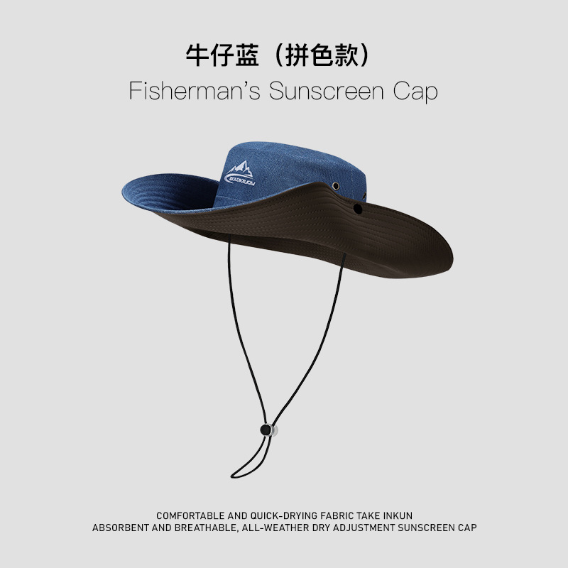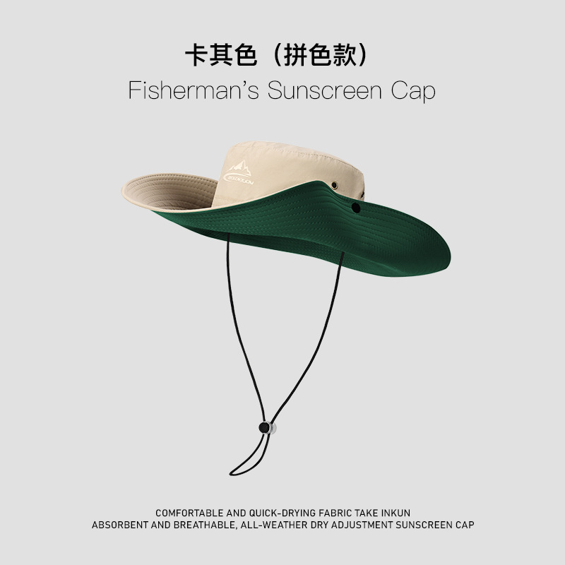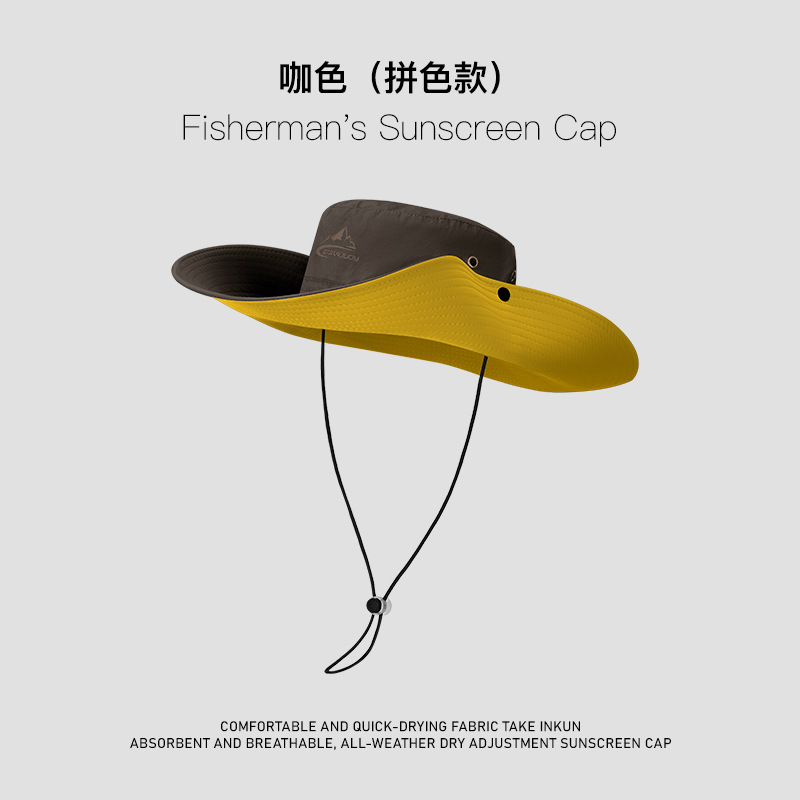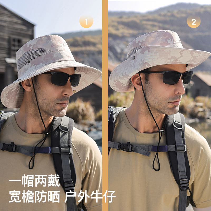 欧美防晒渔夫帽男士夏季户外登山帽钓鱼透气防紫外线遮阳帽子跨境