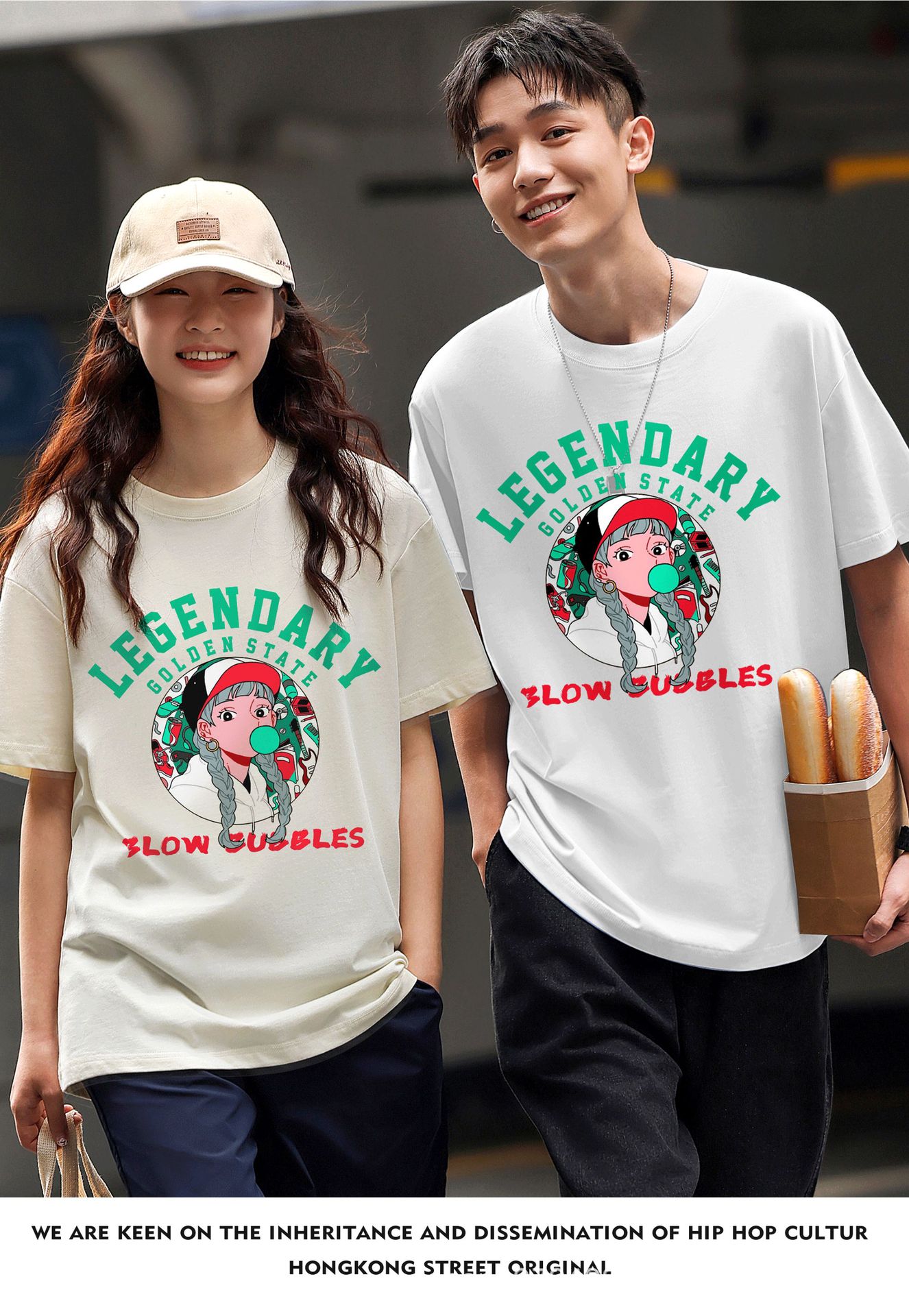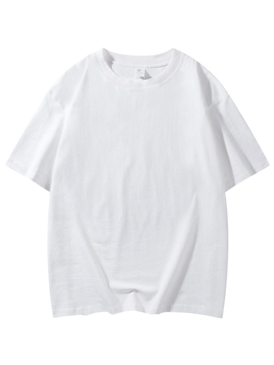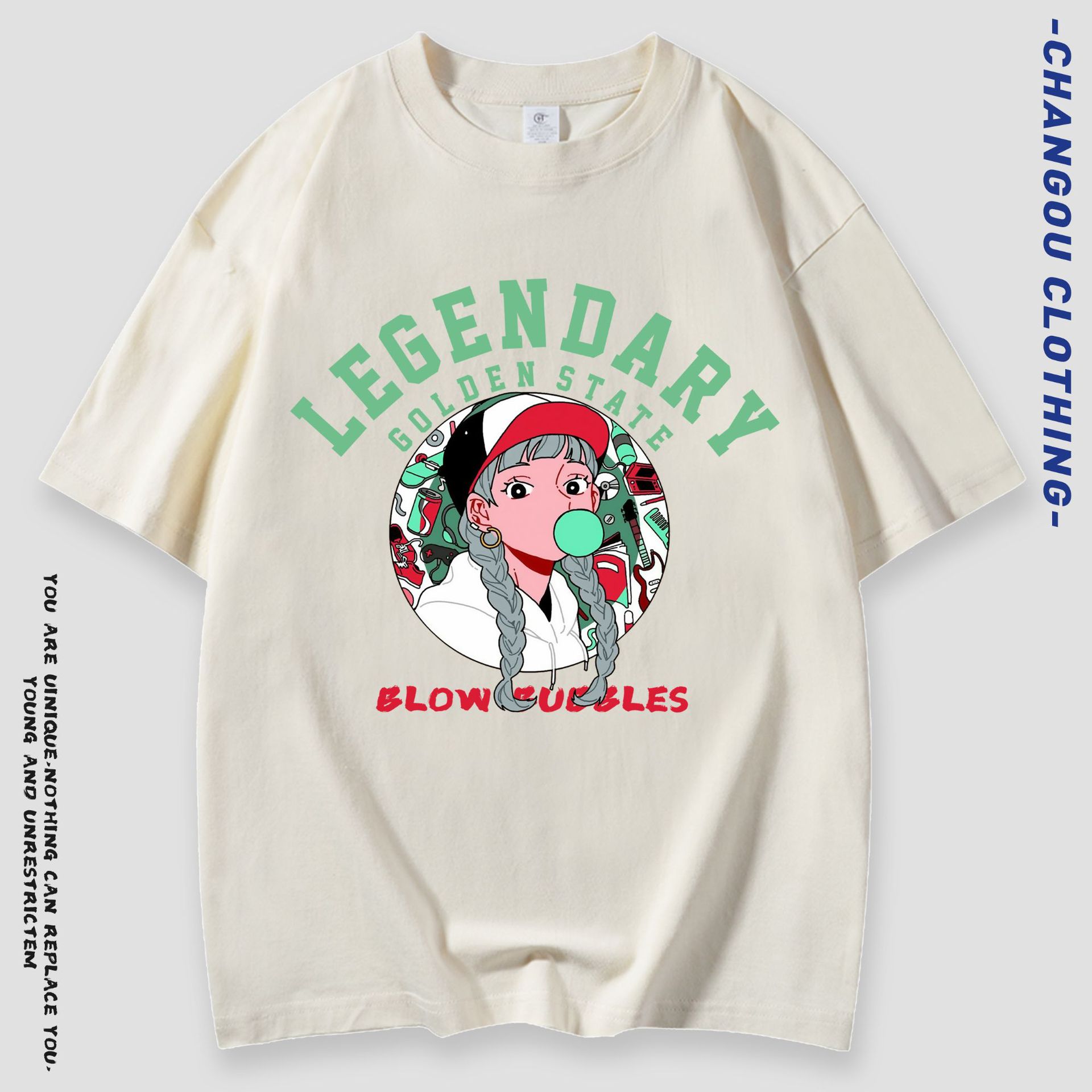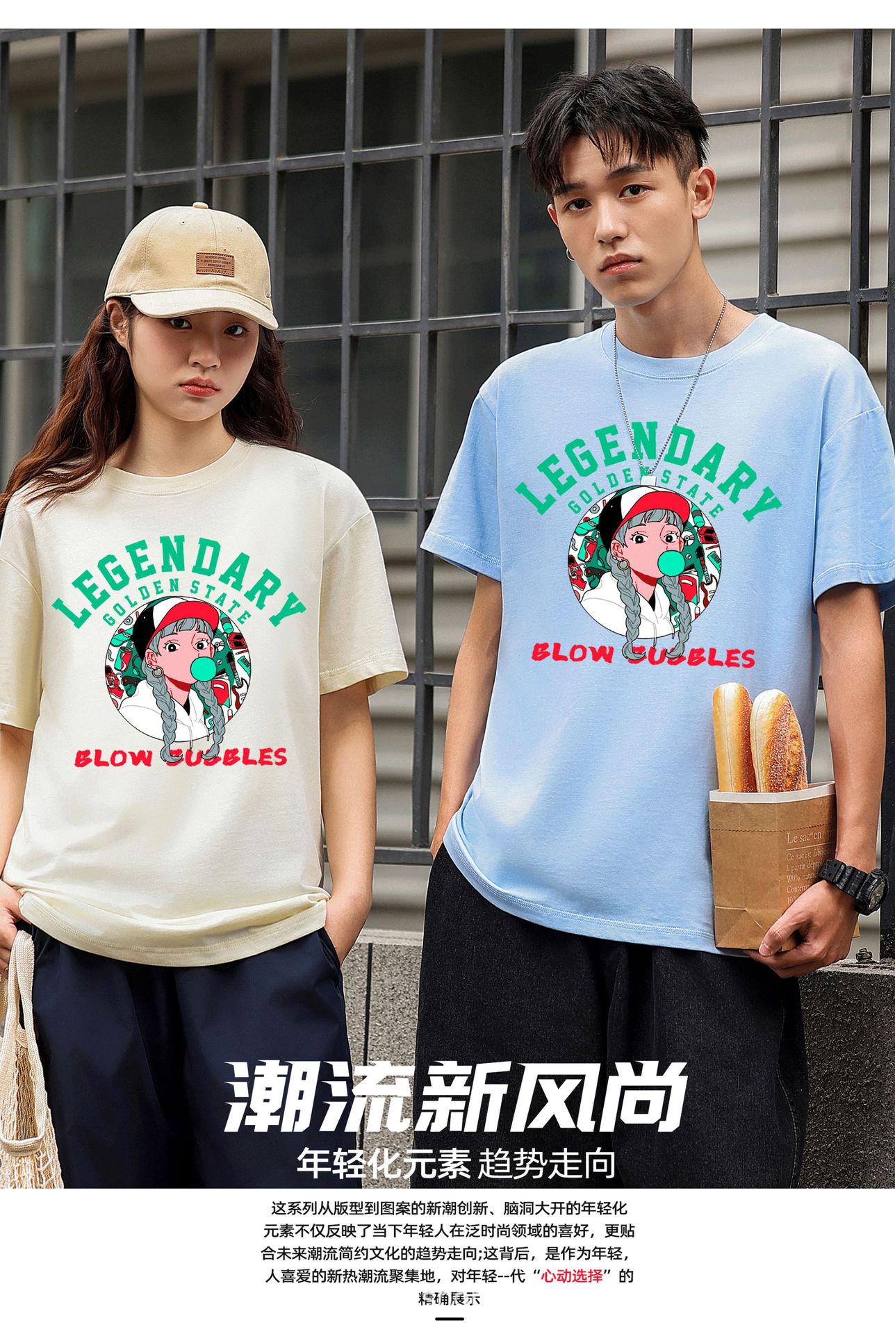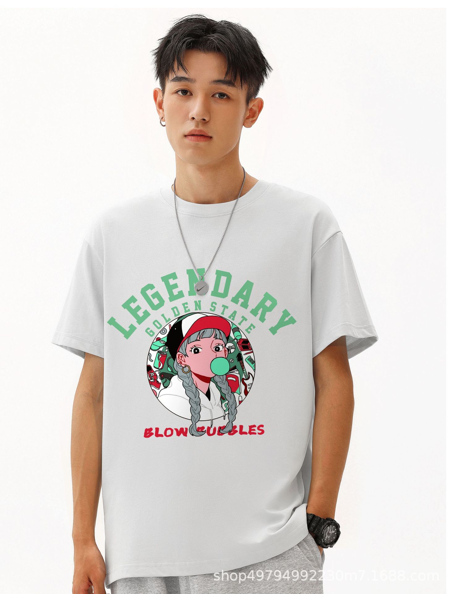 夏季男装220G重磅纯棉短袖t恤男印花ins潮牌落肩圆领短袖宽松T恤