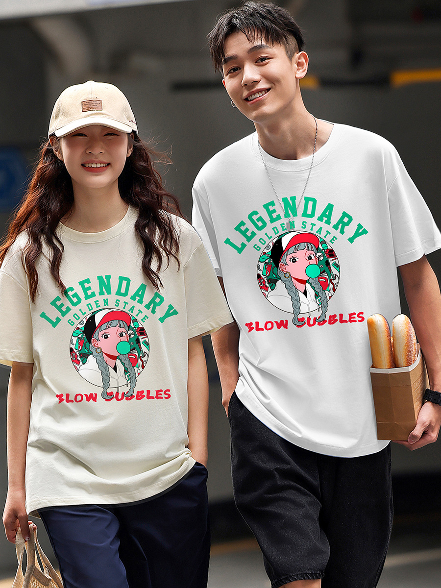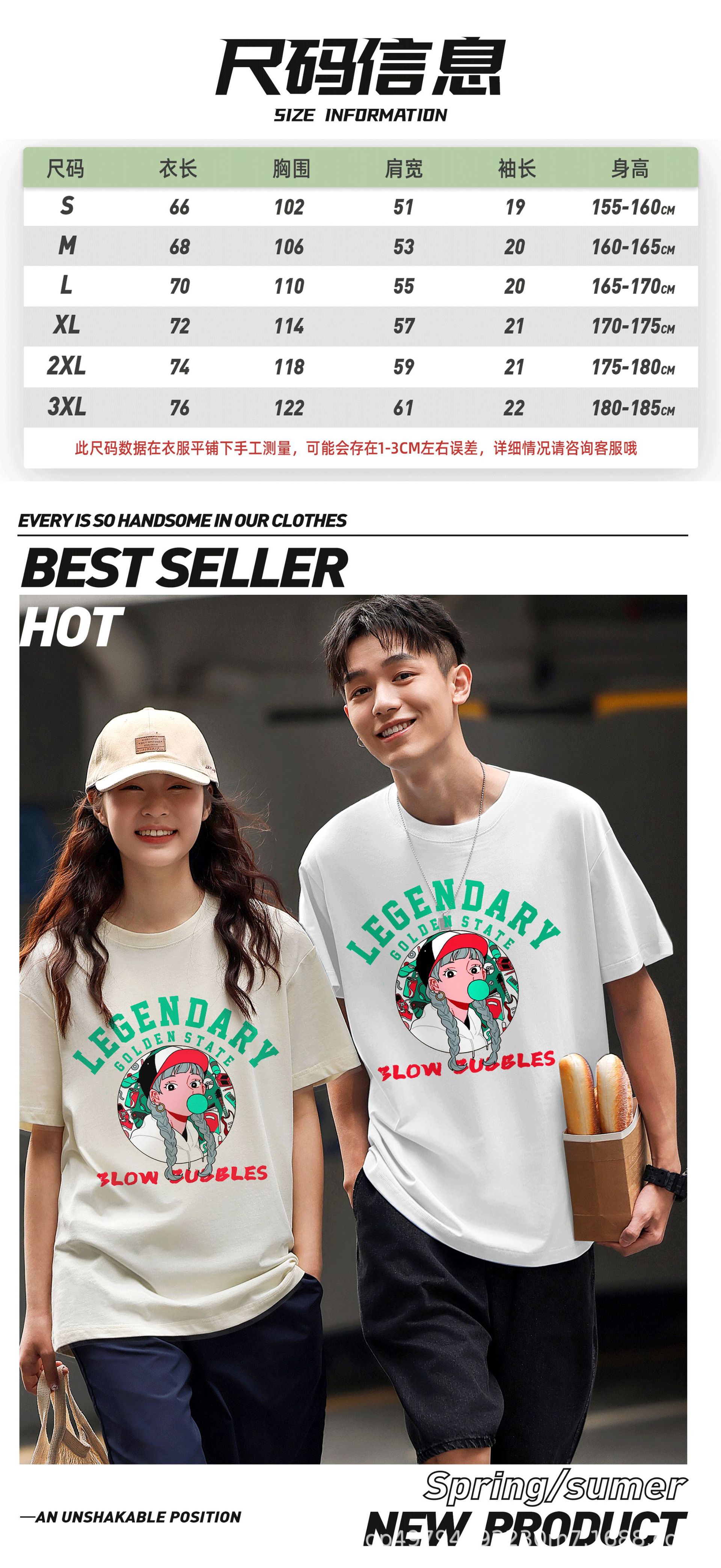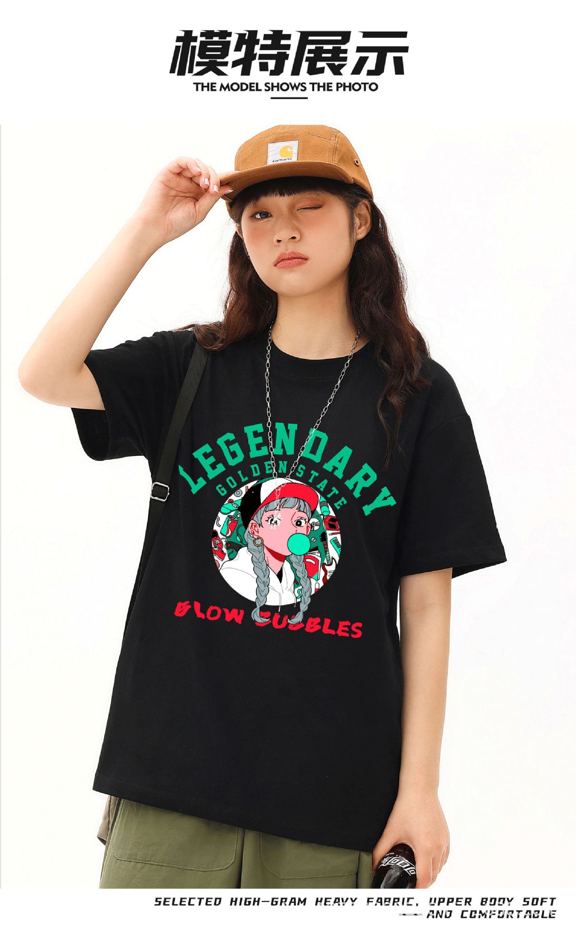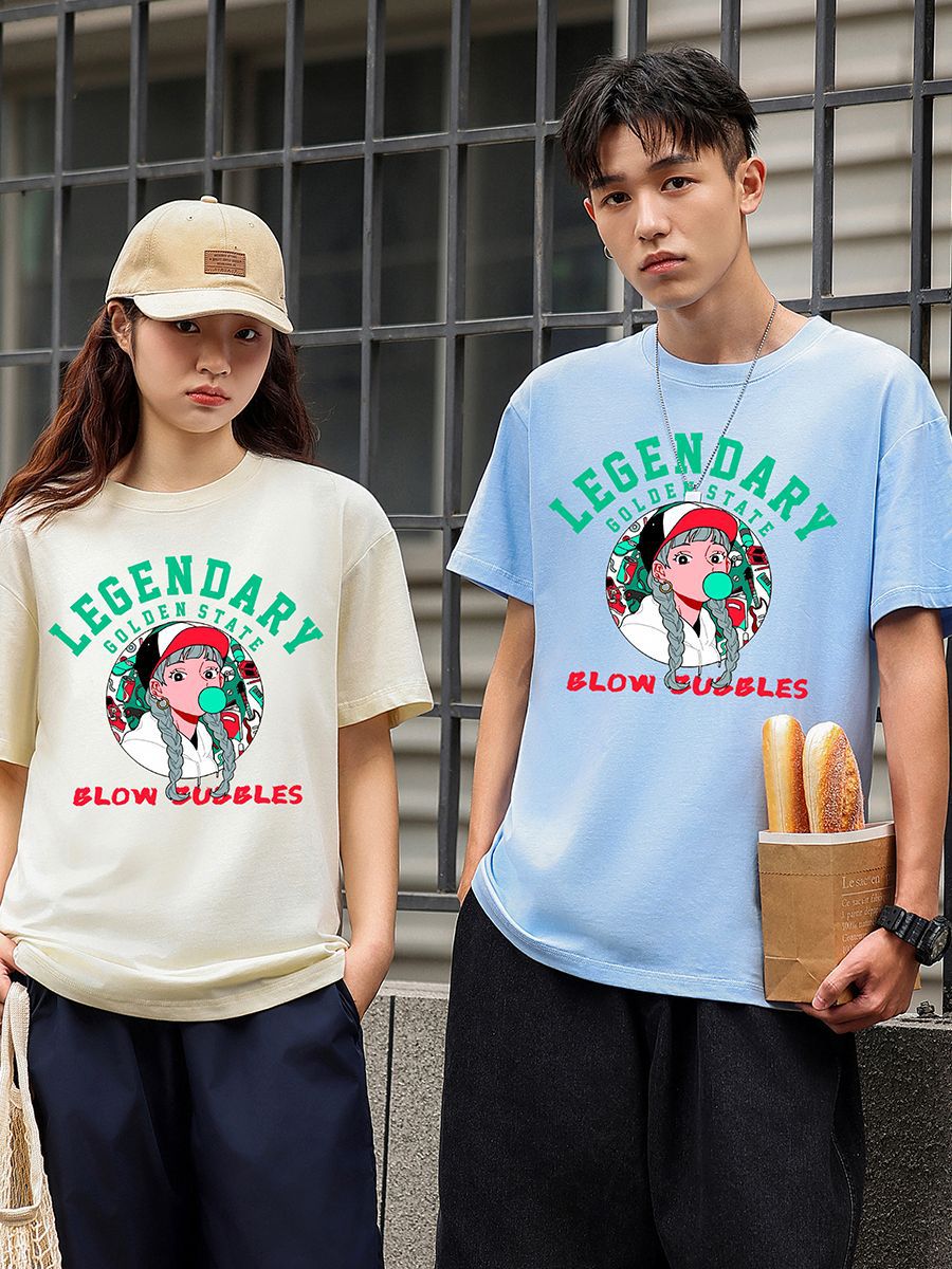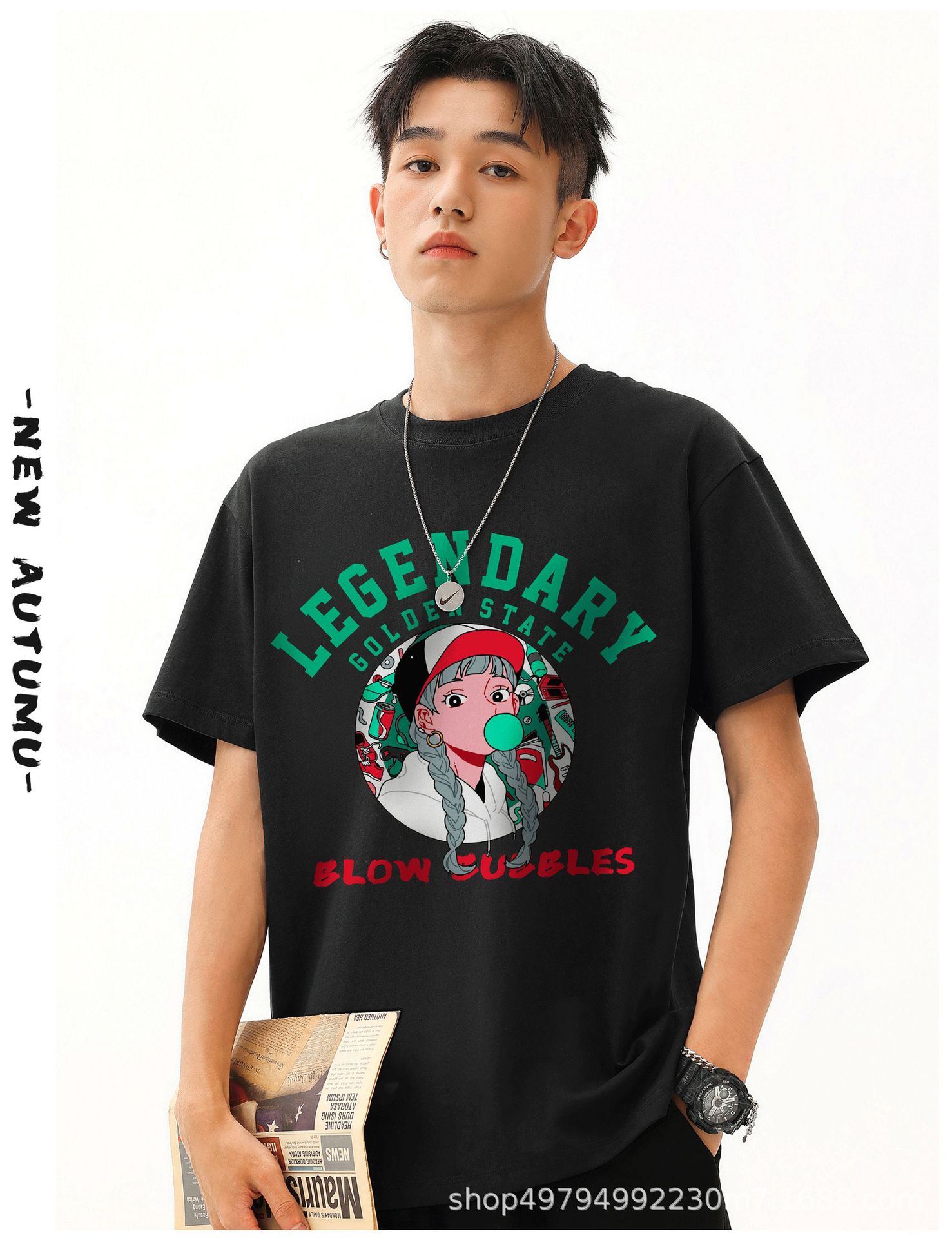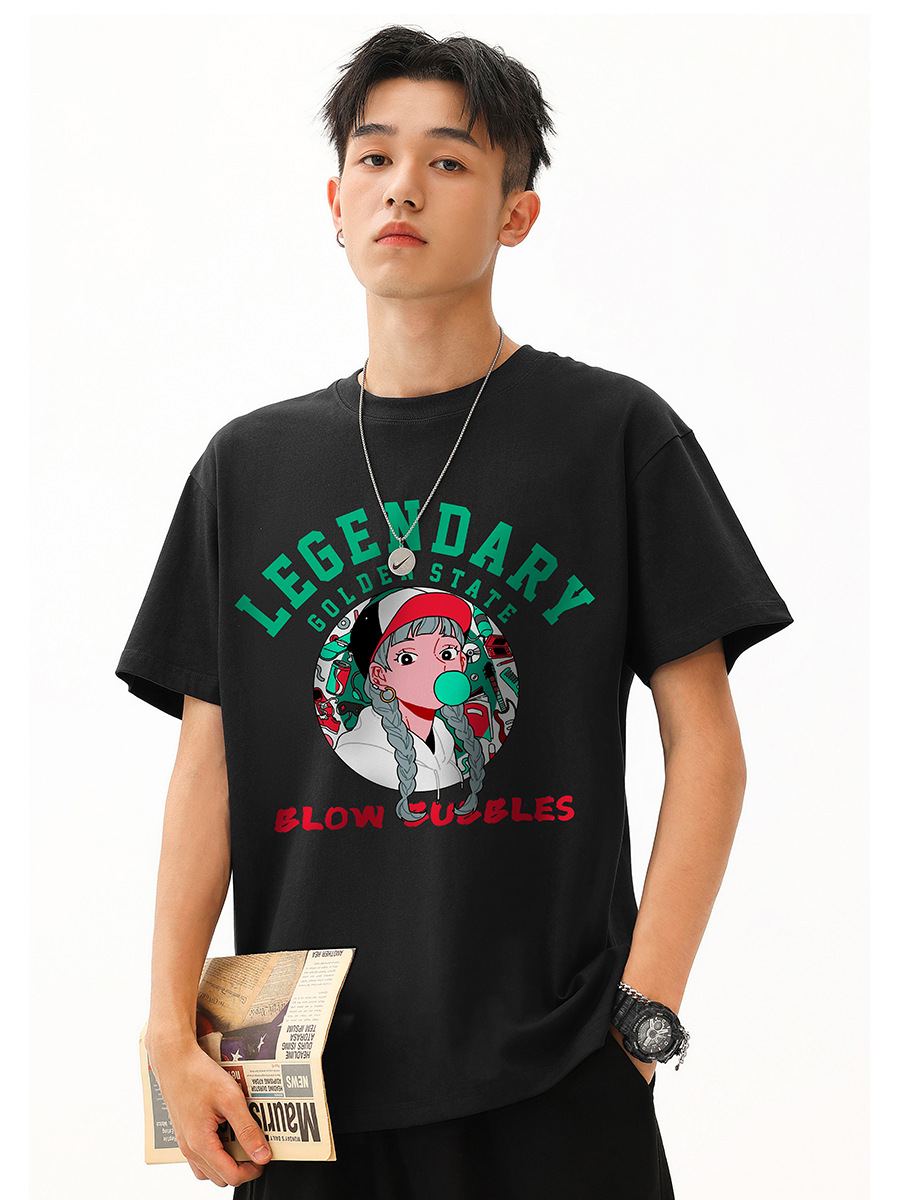 夏季男装220G重磅纯棉短袖t恤男印花ins潮牌落肩圆领短袖宽松T恤