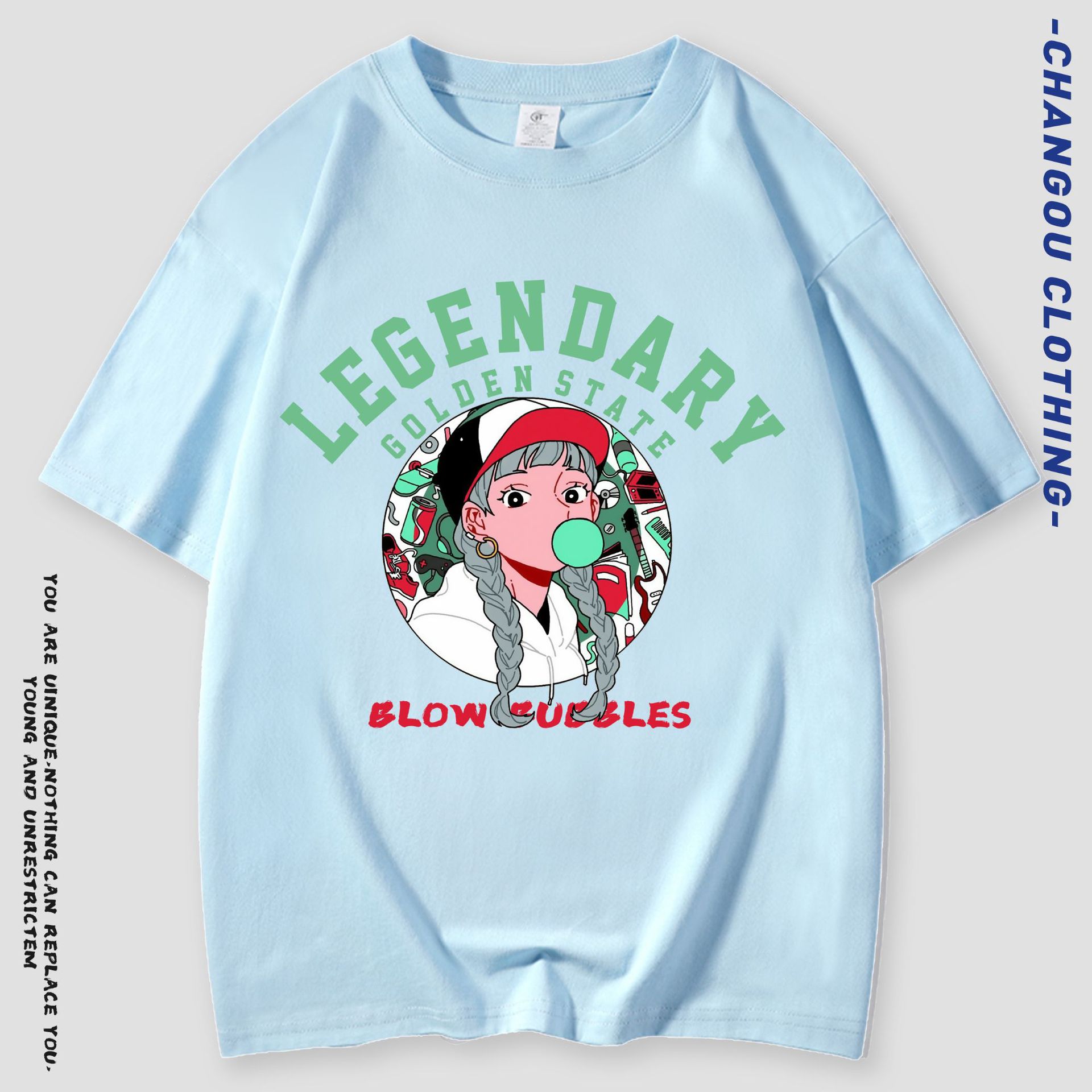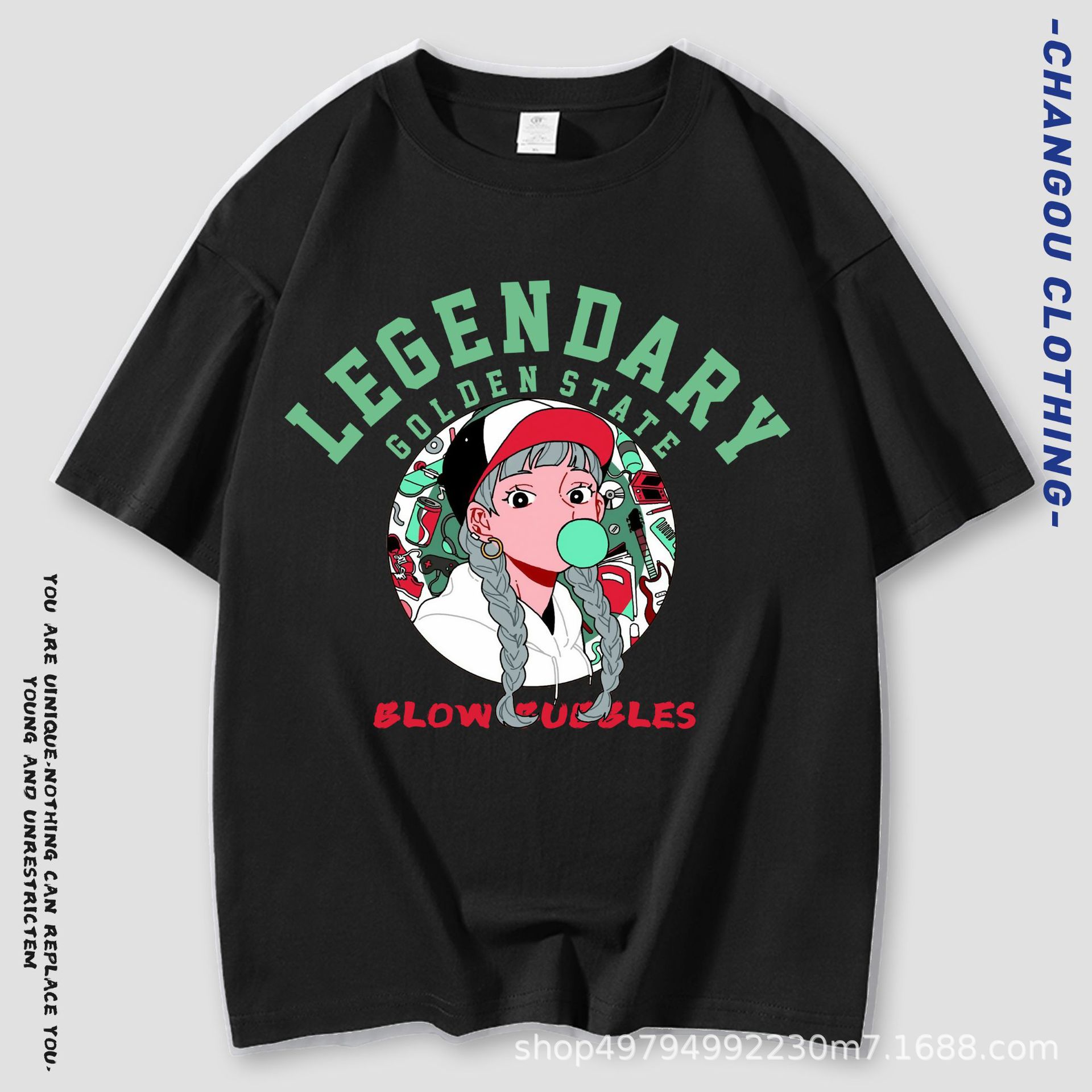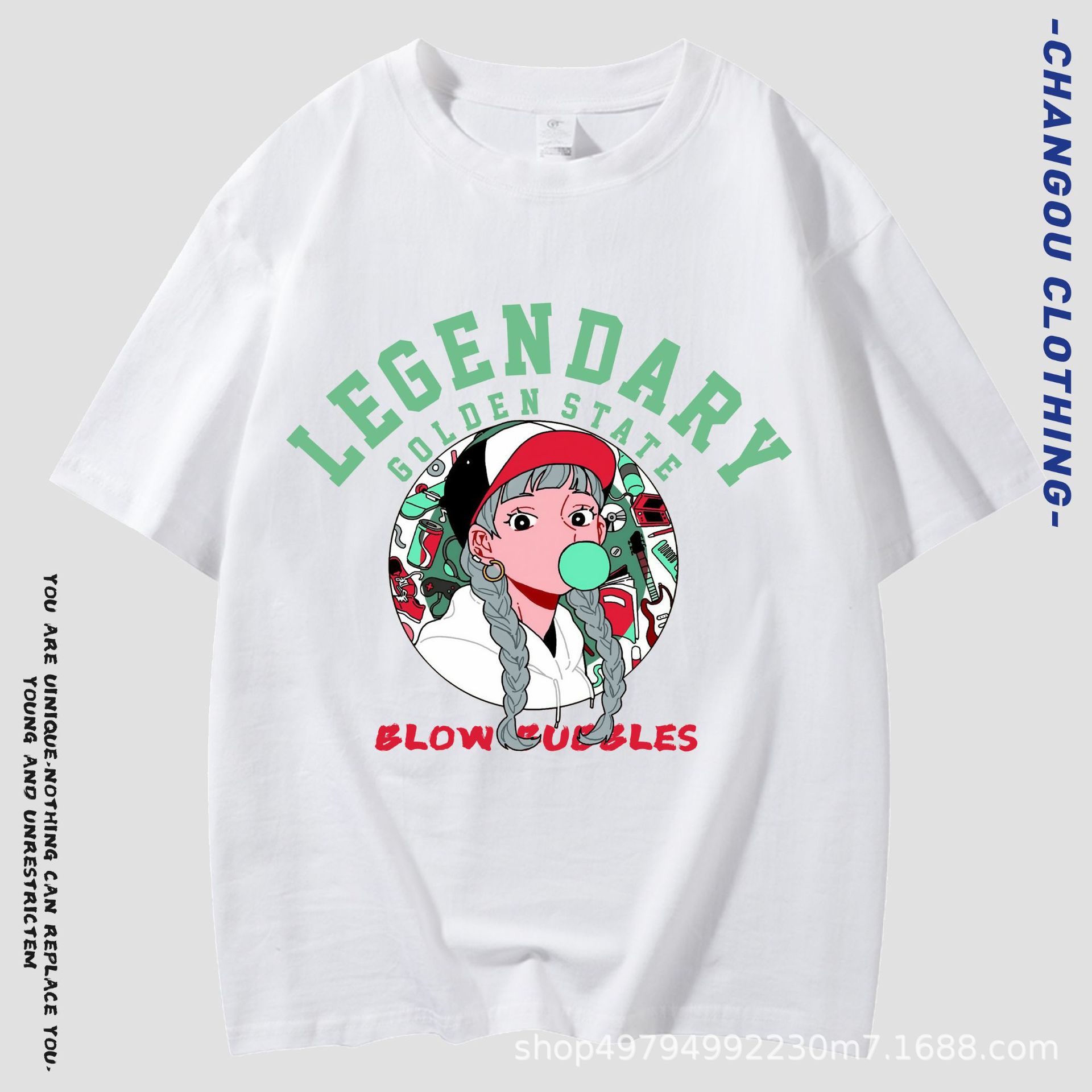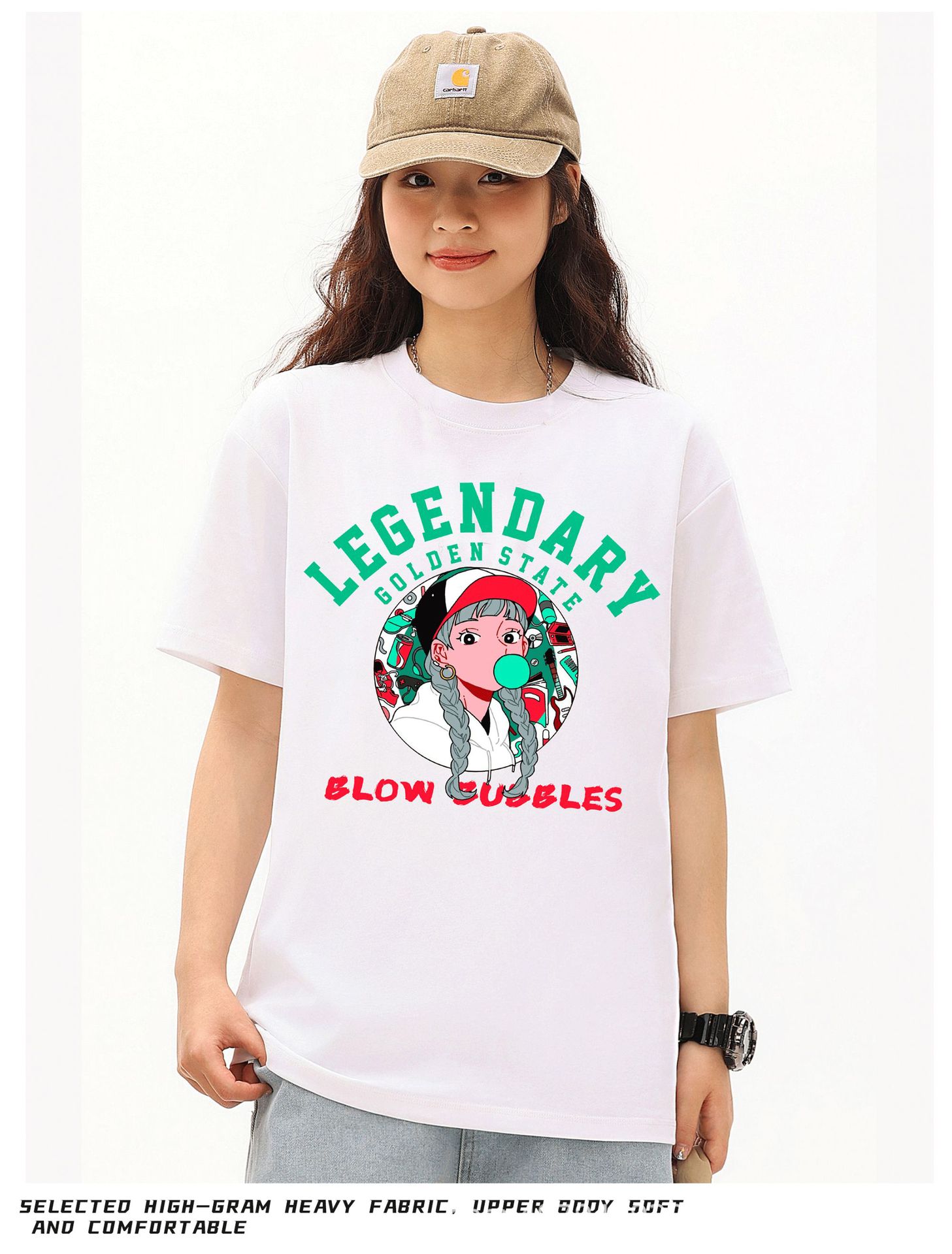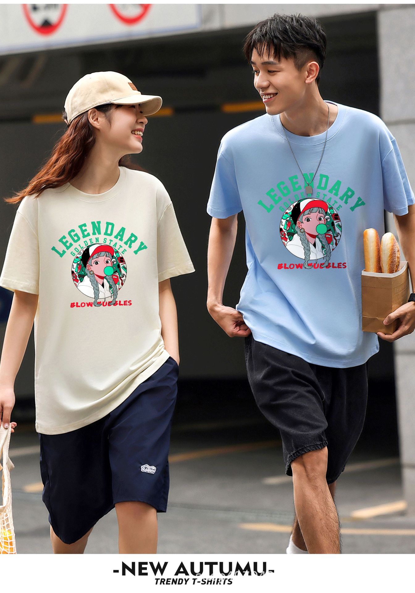 夏季男装220G重磅纯棉短袖t恤男印花ins潮牌落肩圆领短袖宽松T恤