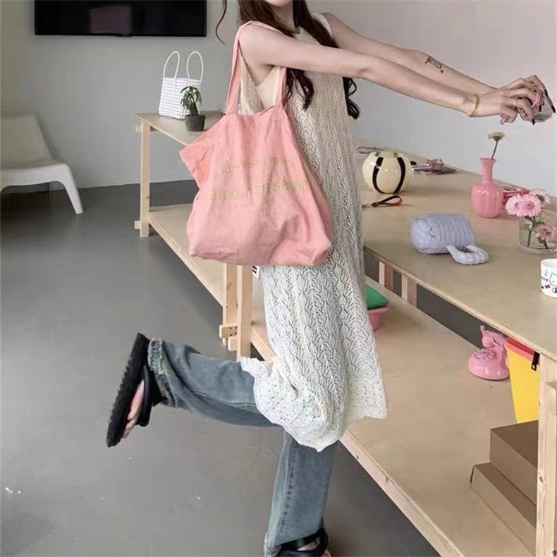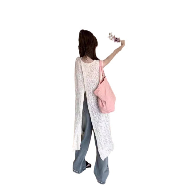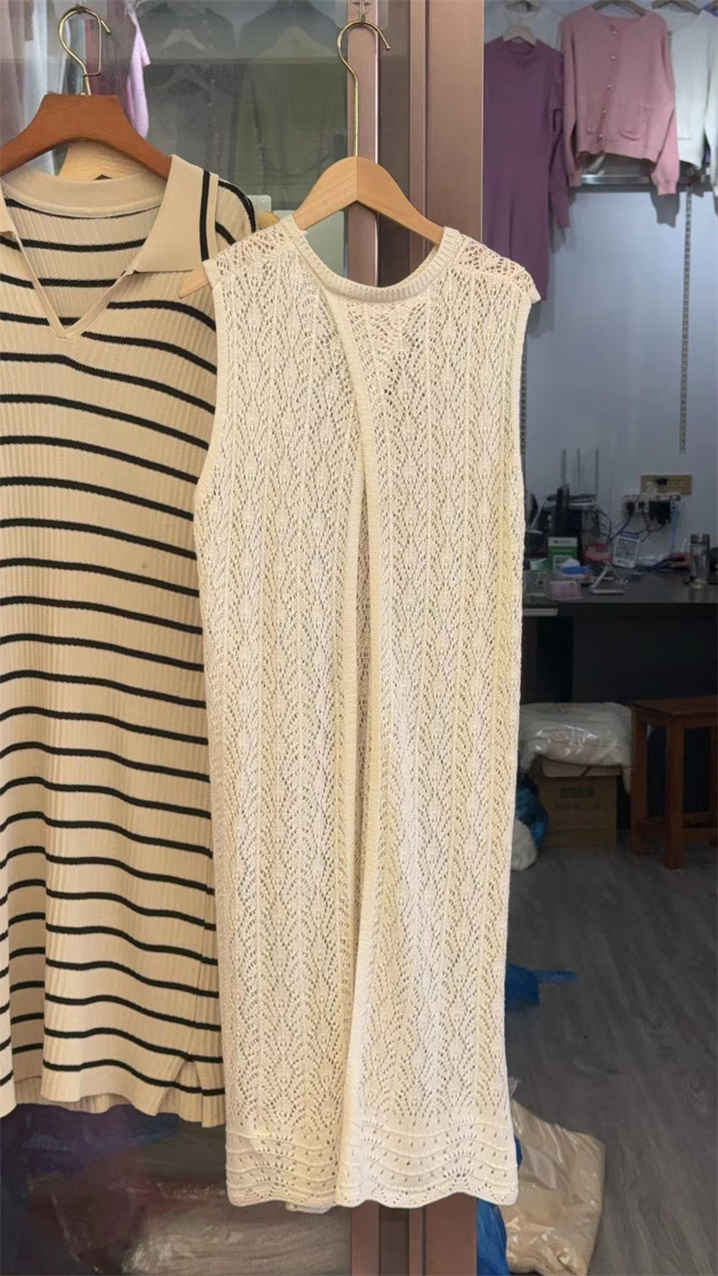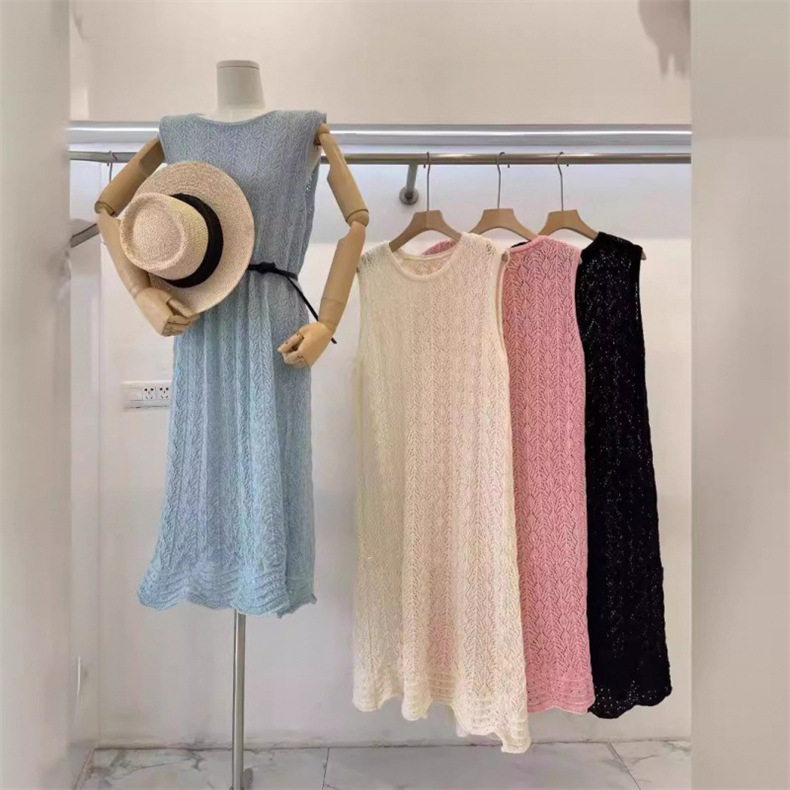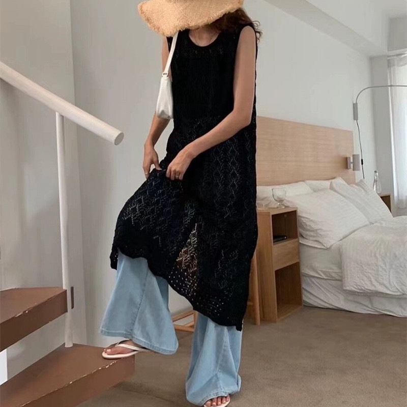 蓝秋 设计感小众叠穿罩衫2024夏季新款镂空针织背心裙长裙连衣裙