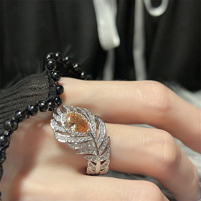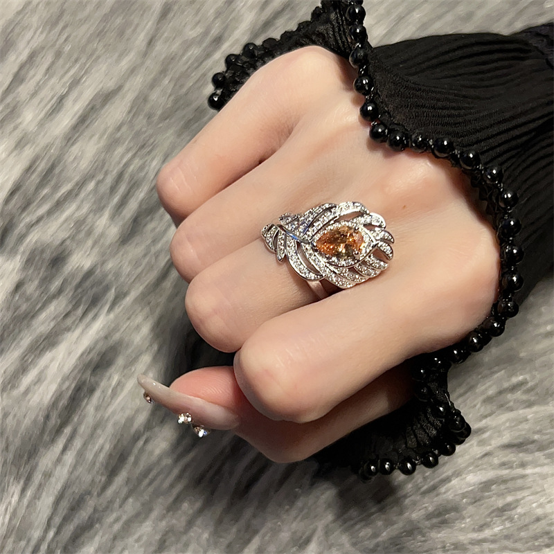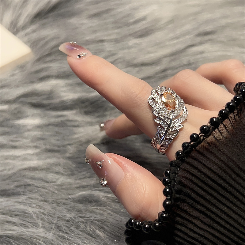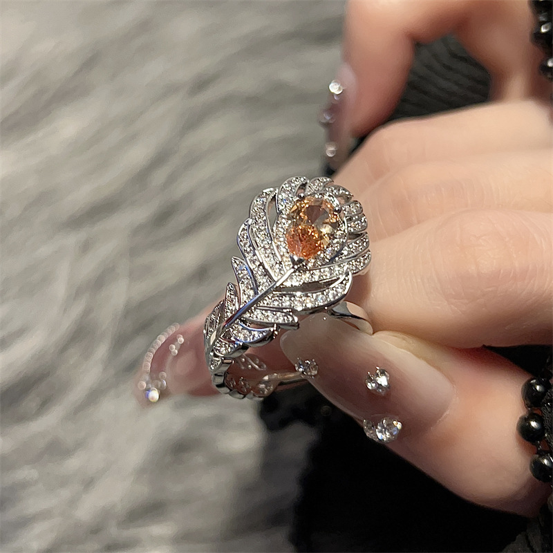 新品超闪孔雀羽毛戒指女开口微镶满钻锆石宫廷风轻奢高级感小红书
