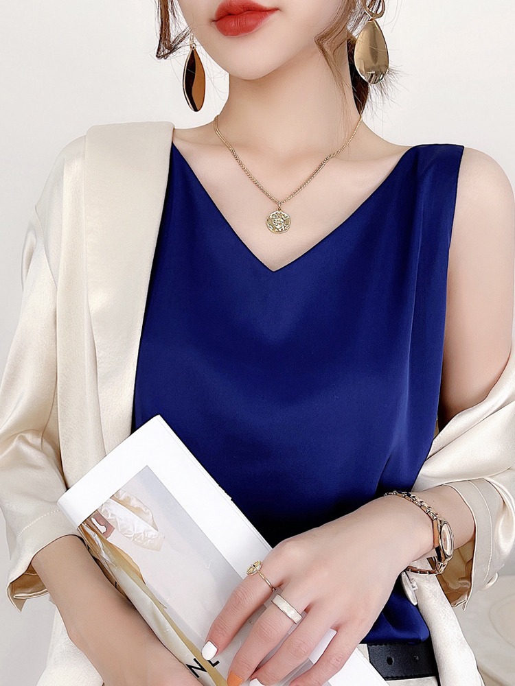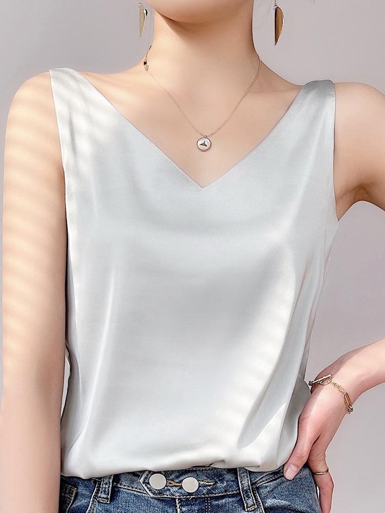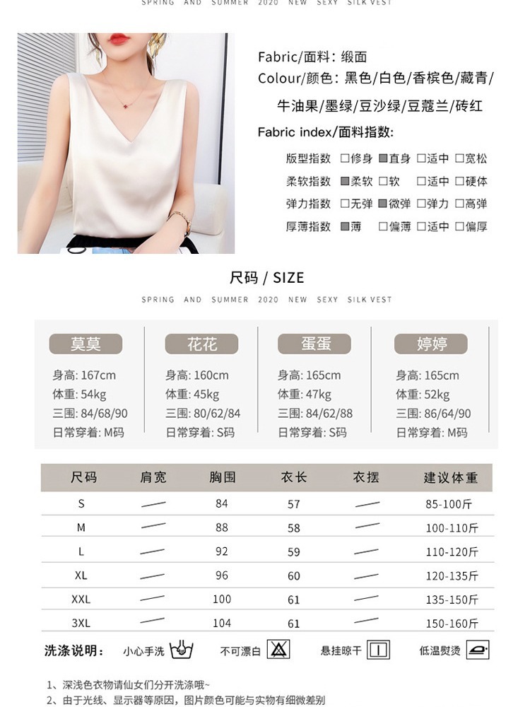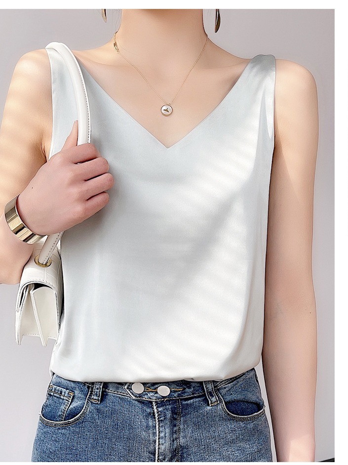 醋酸丝绸丝双肩吊带女背心夏新修身v领短款气质性感内搭上衣