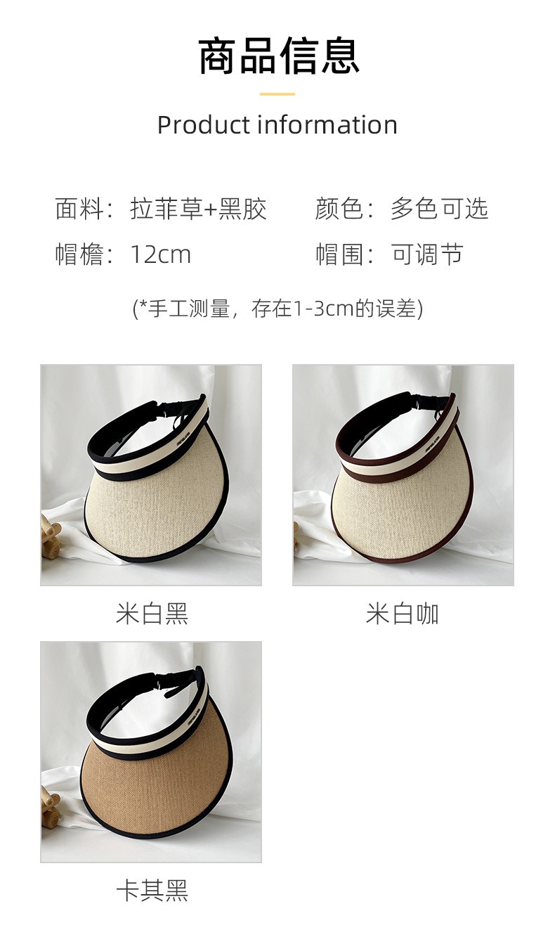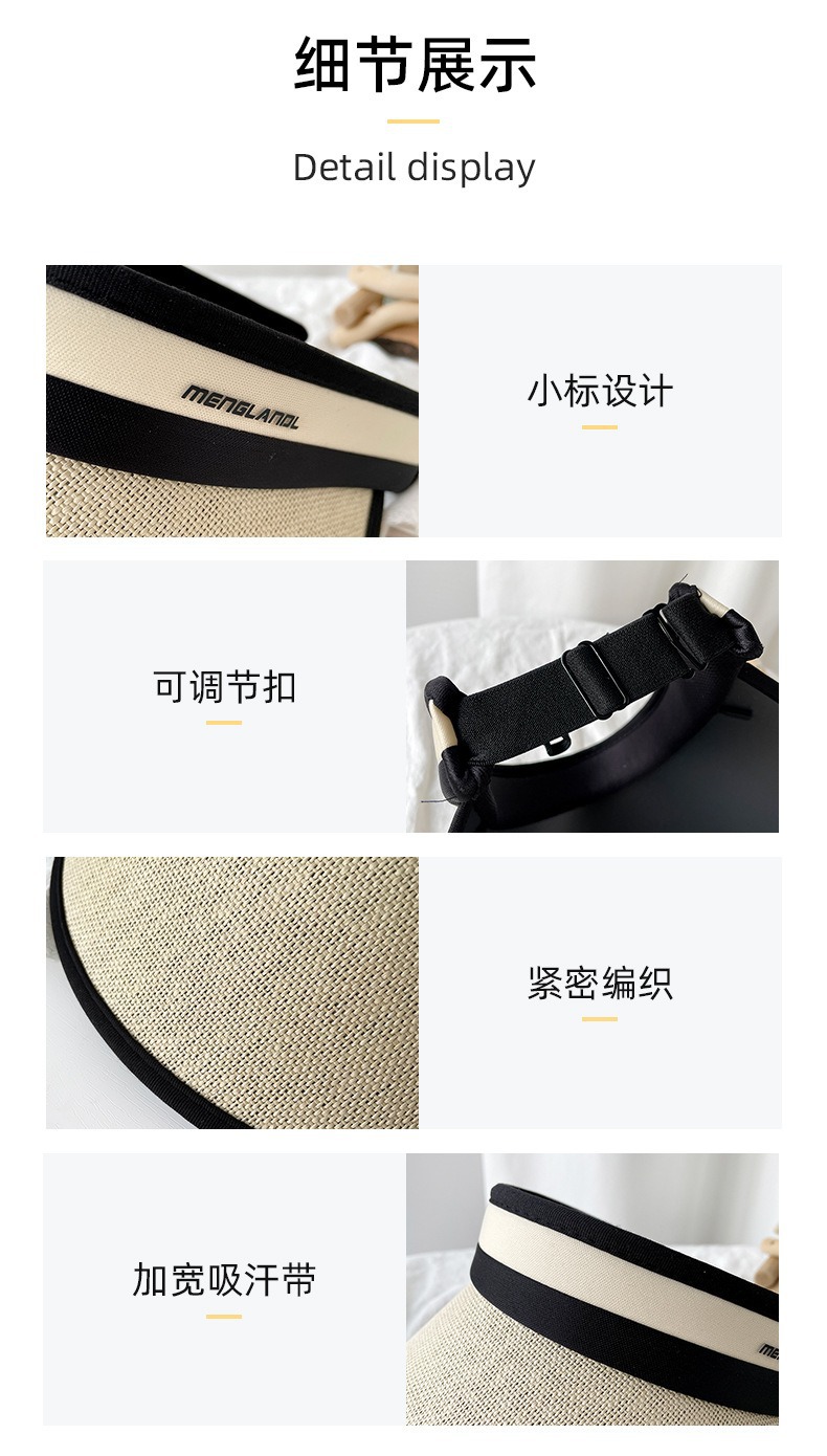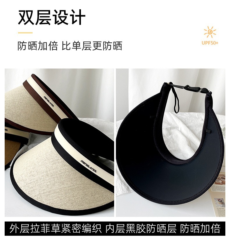 防晒帽无顶太阳帽日常休闲户外露营便携式夏季防紫外线遮阳帽批发