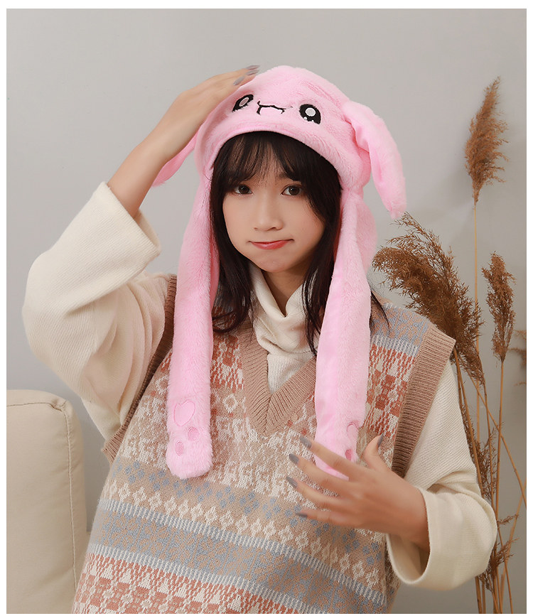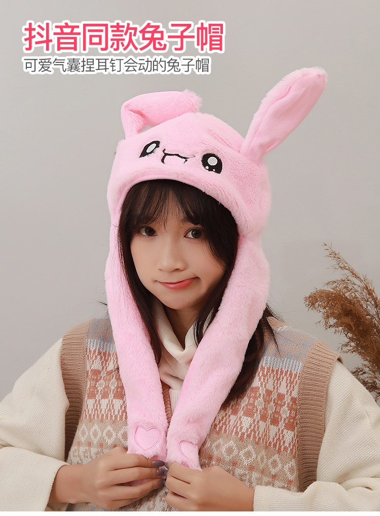 抖音同款发光网红兔子耳朵帽子会动的兔耳朵帽甜美可爱萌萌哒气囊
