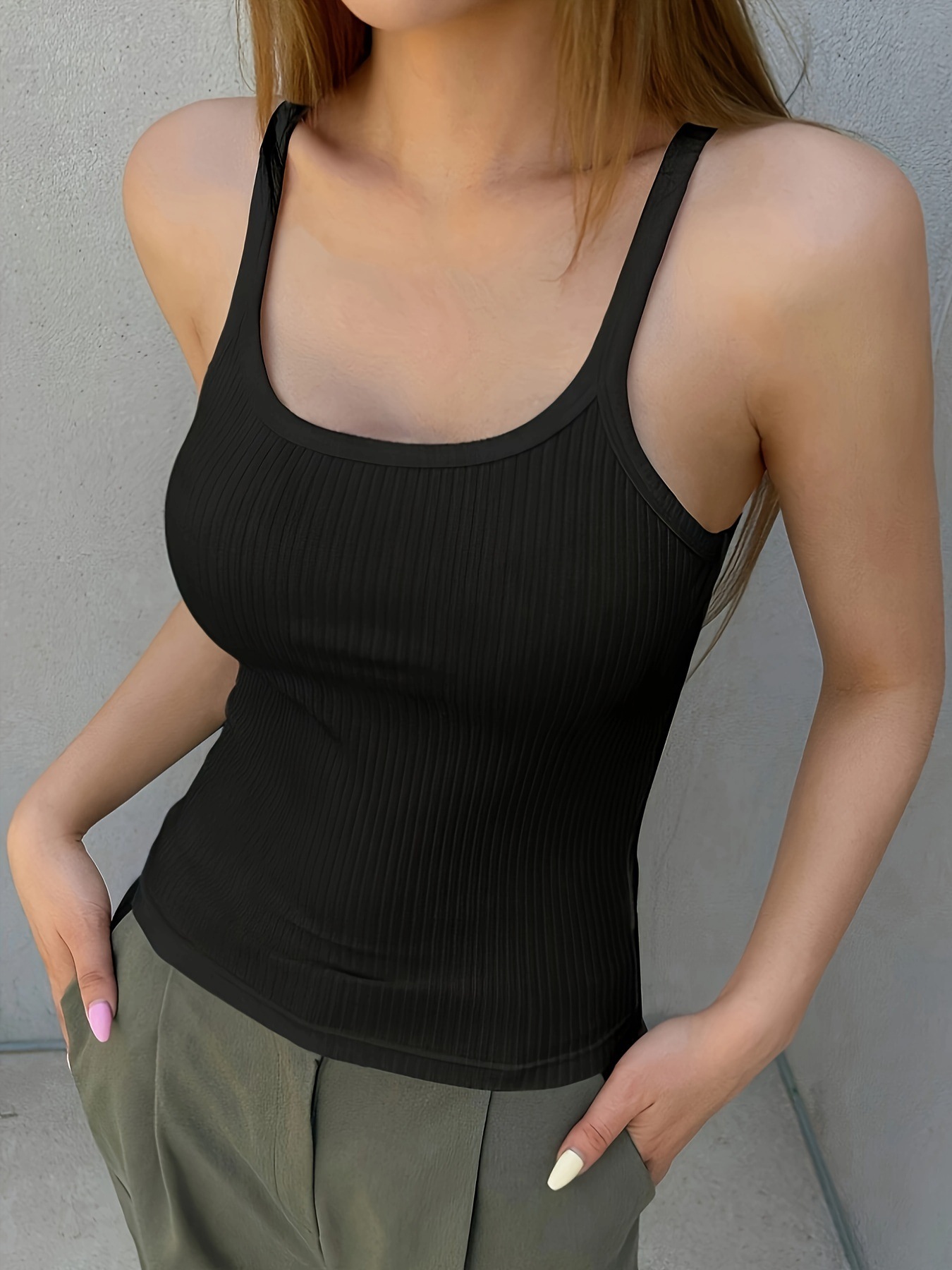 2024亚马逊 欧美春夏季新款性感修身吊带露脐小背心女U领运动上衣