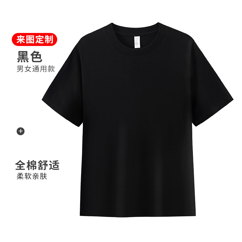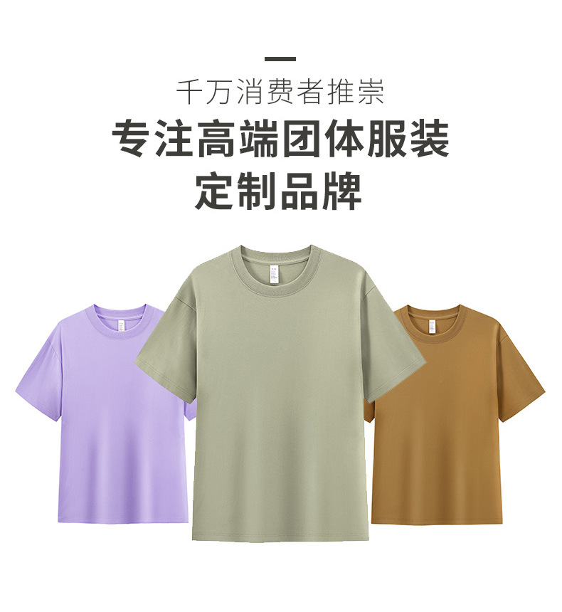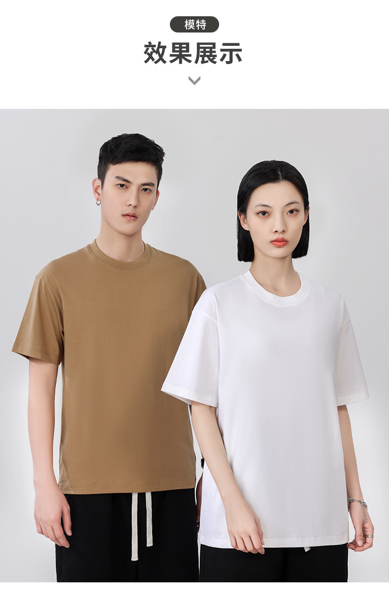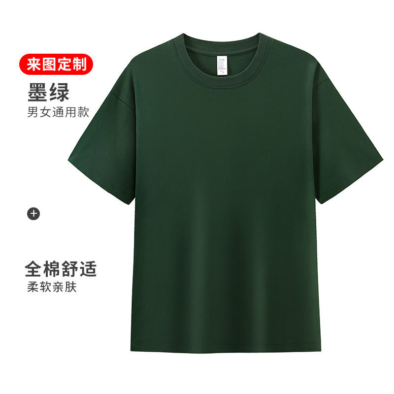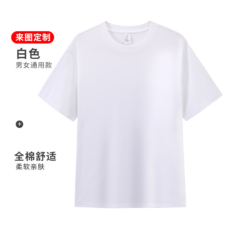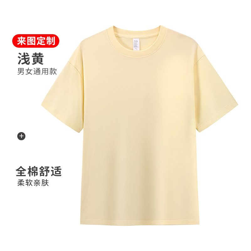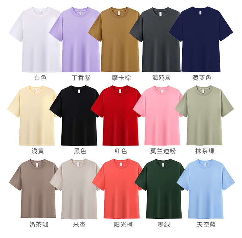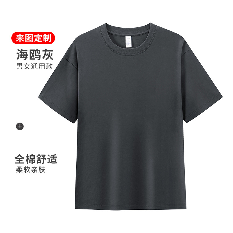 230克纯棉宽松大落肩纯棉t恤定 制LOGO男女同款圆领短袖聚会班服