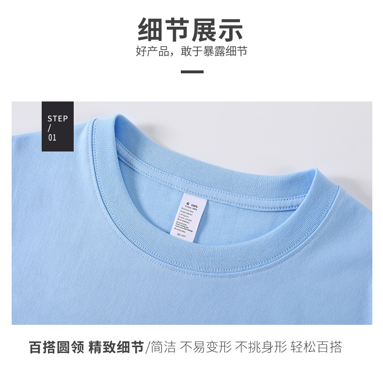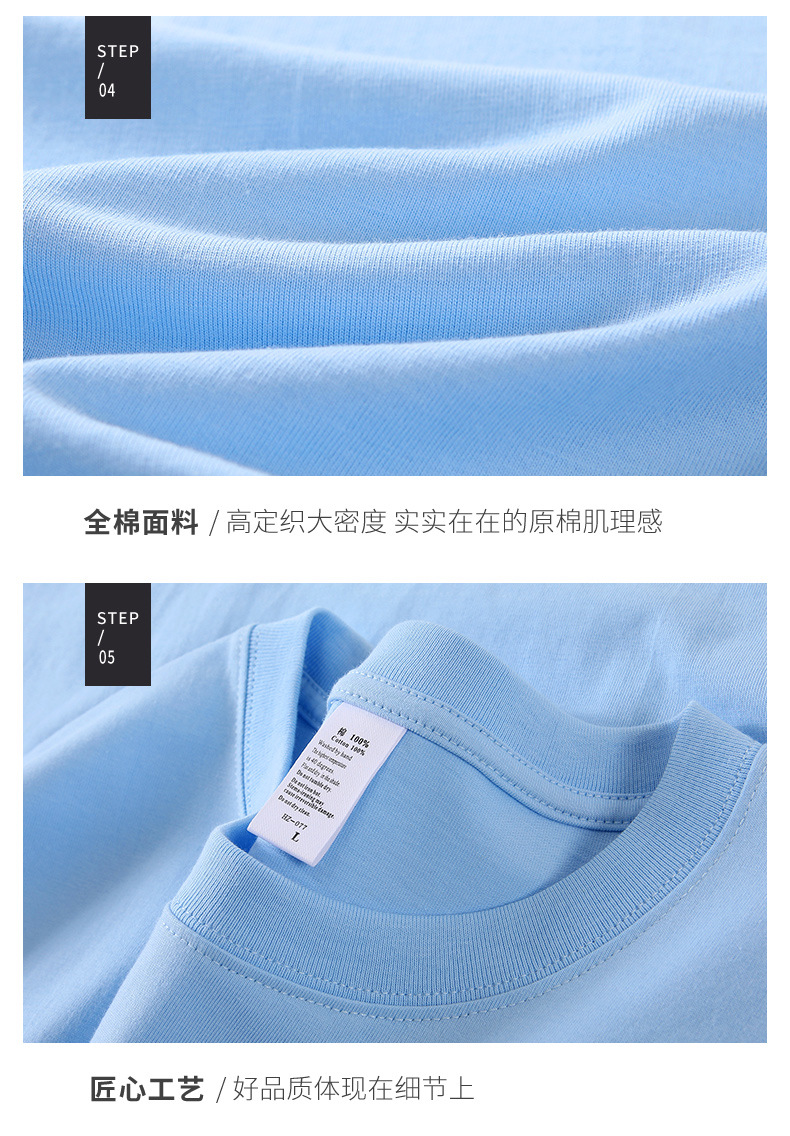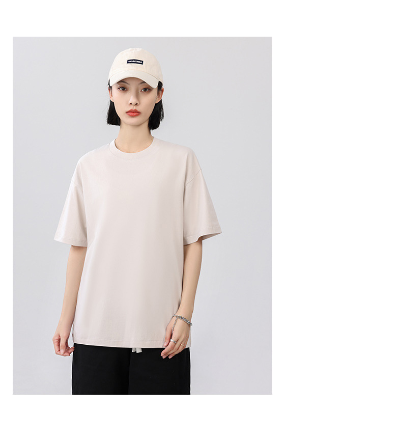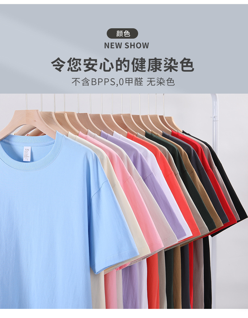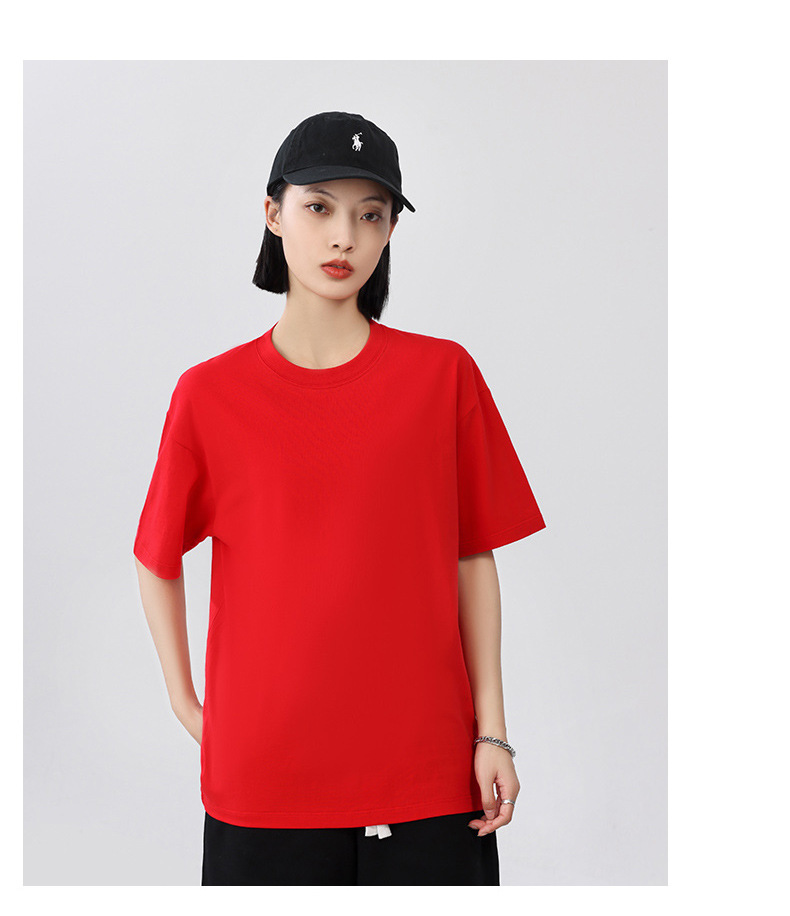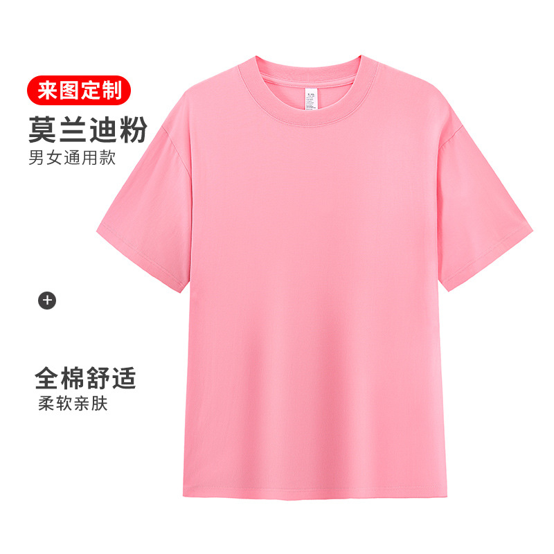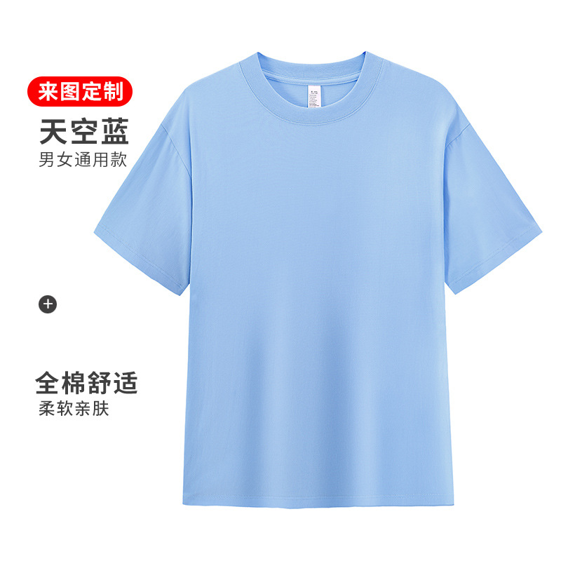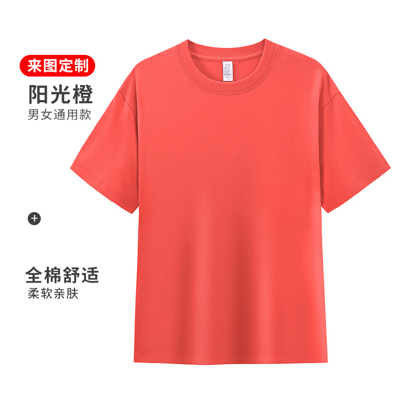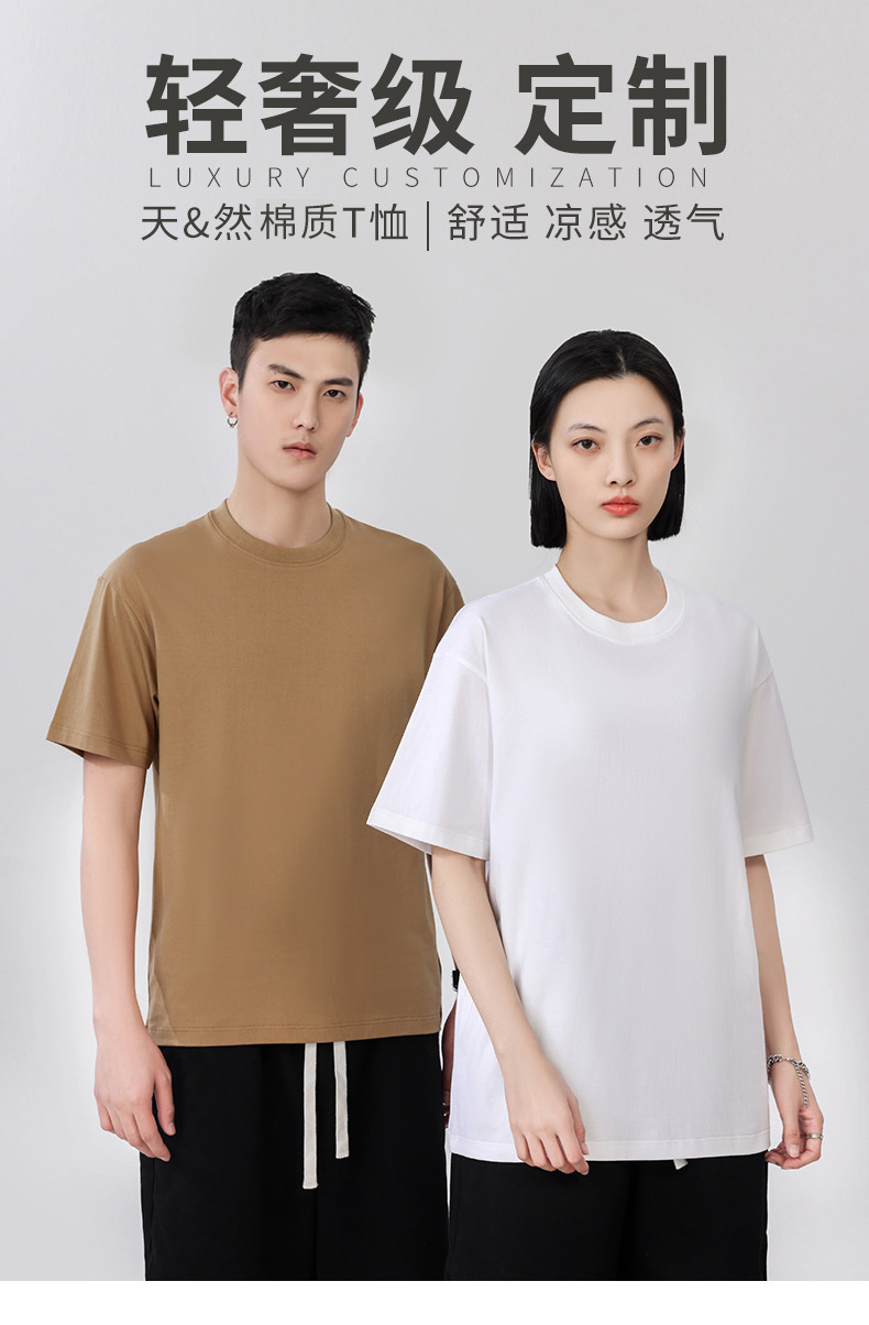230克纯棉宽松大落肩纯棉t恤定 制LOGO男女同款圆领短袖聚会班服