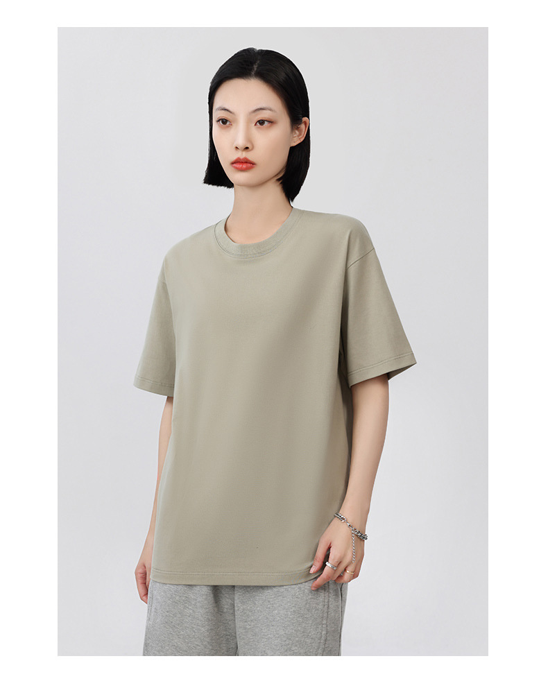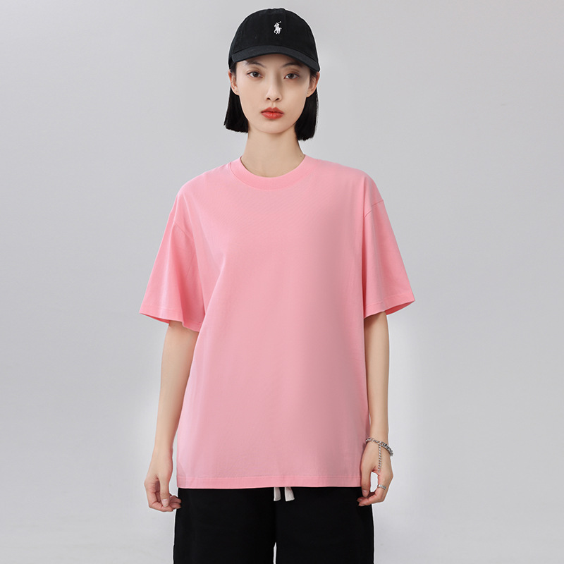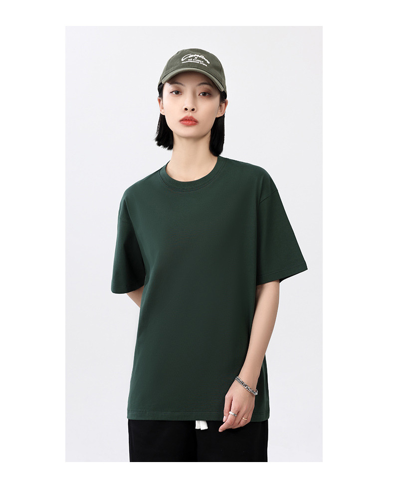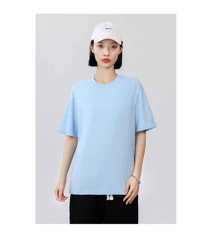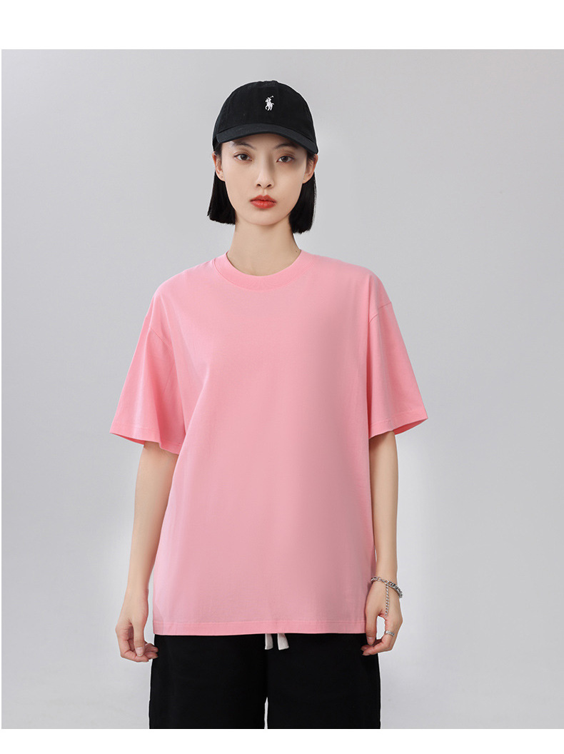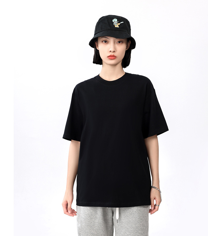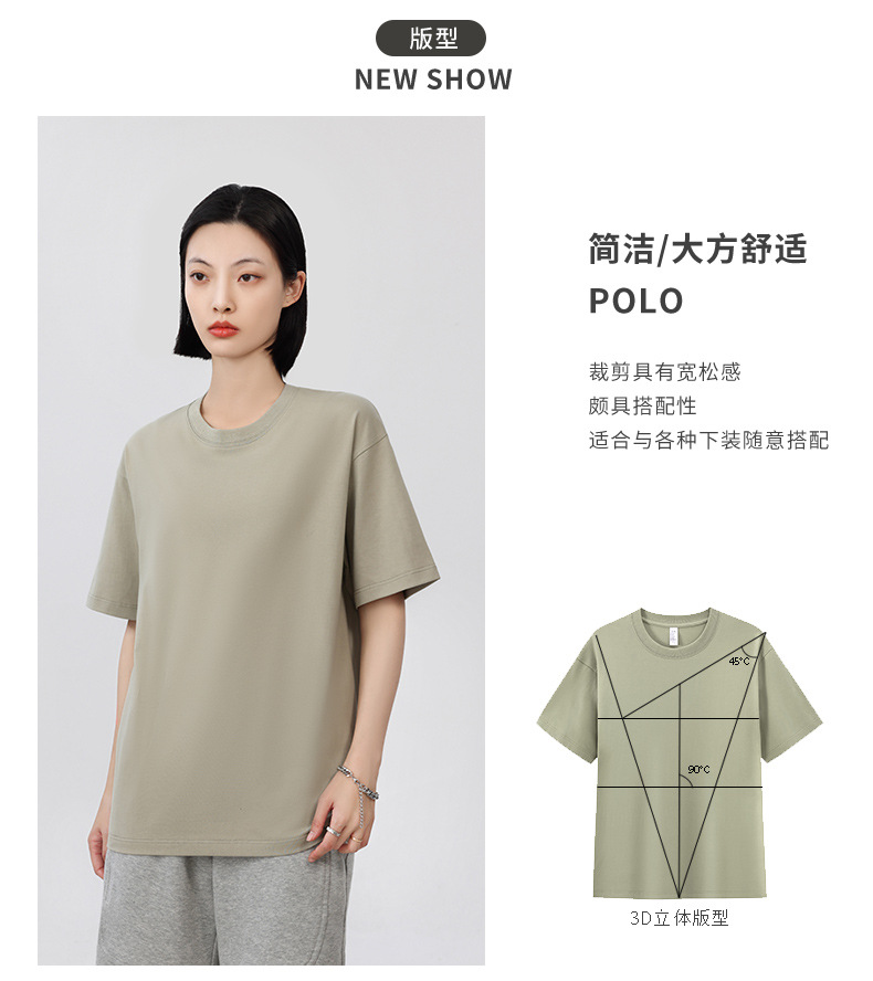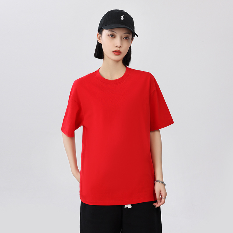230克纯棉宽松大落肩纯棉t恤定 制LOGO男女同款圆领短袖聚会班服