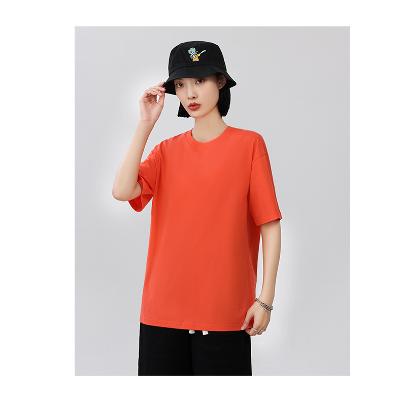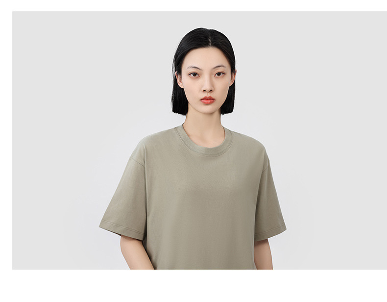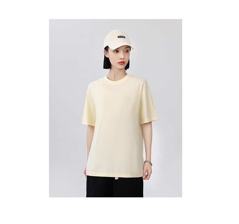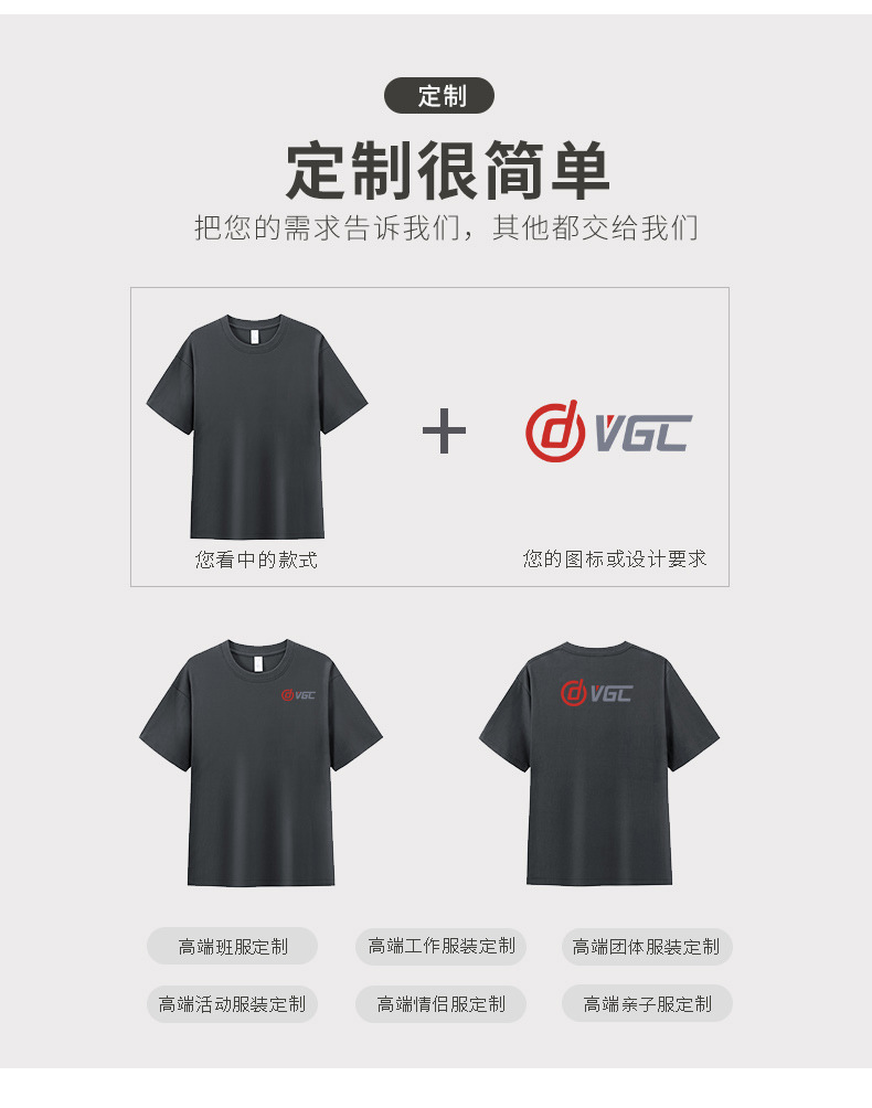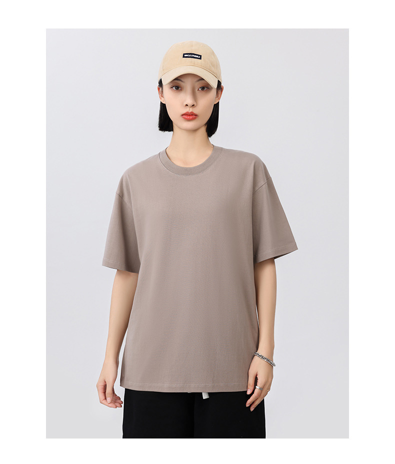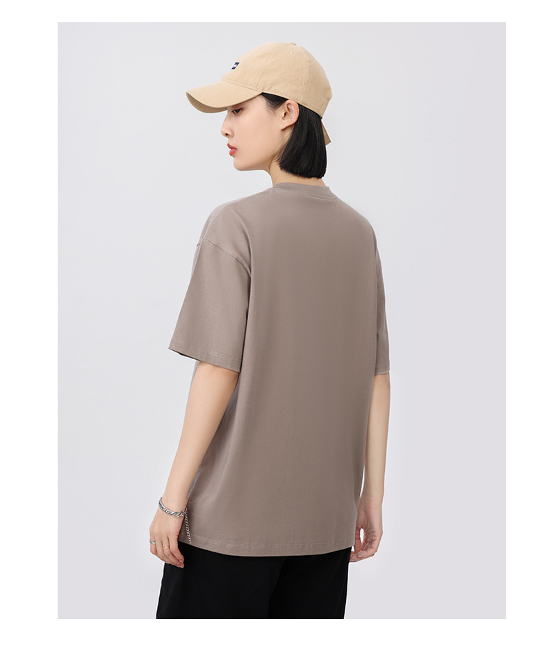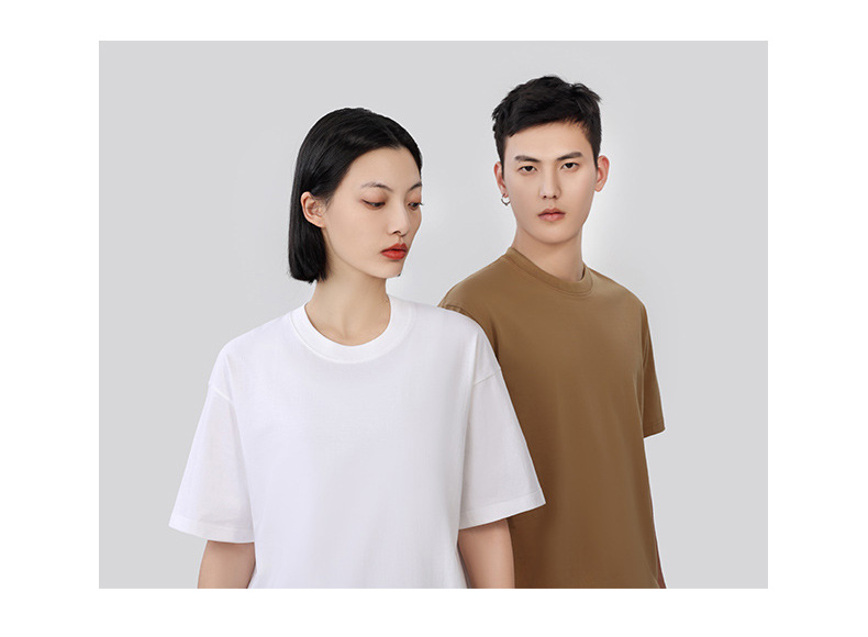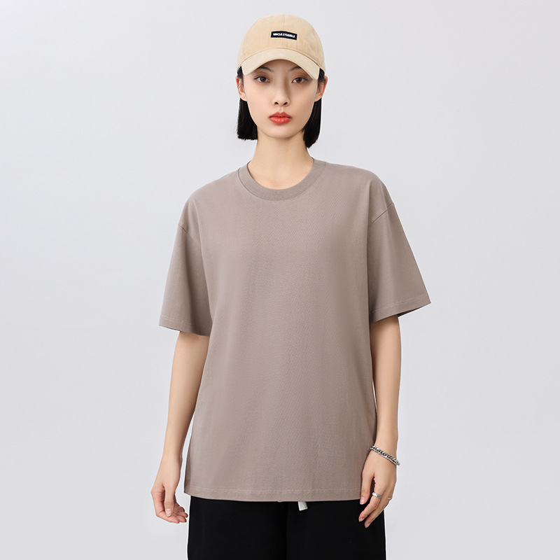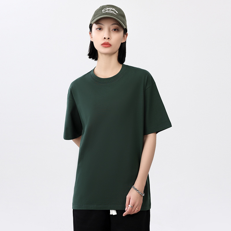 230克纯棉宽松大落肩纯棉t恤定 制LOGO男女同款圆领短袖聚会班服