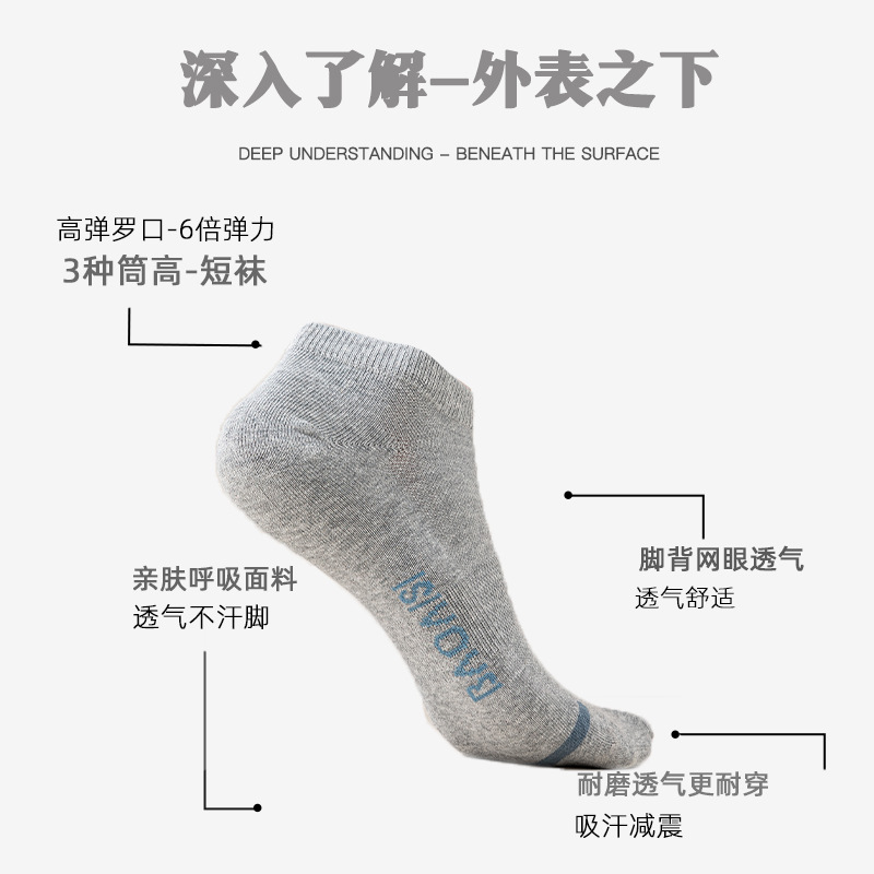 船袜7A级舒适防臭运动吸汗短袜男女士春秋短筒纯棉袜子男女同款