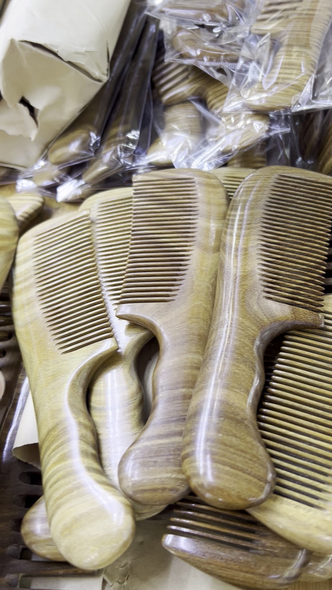 源头厂家绿檀整木绿檀木梳子细齿长柄梳家用美发梳按摩梳子批发