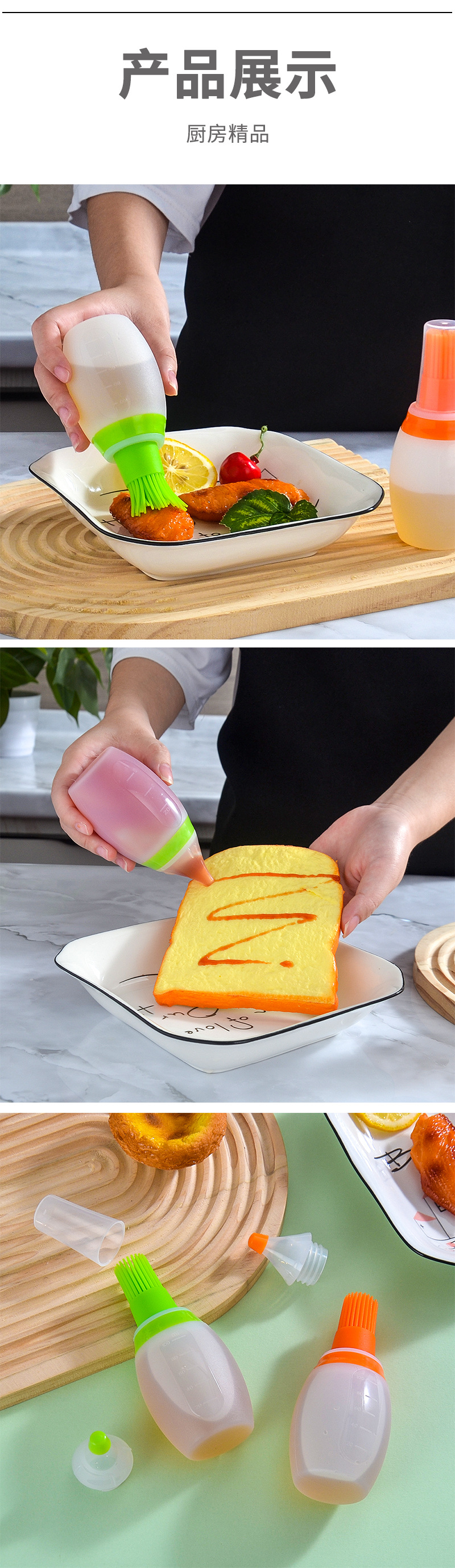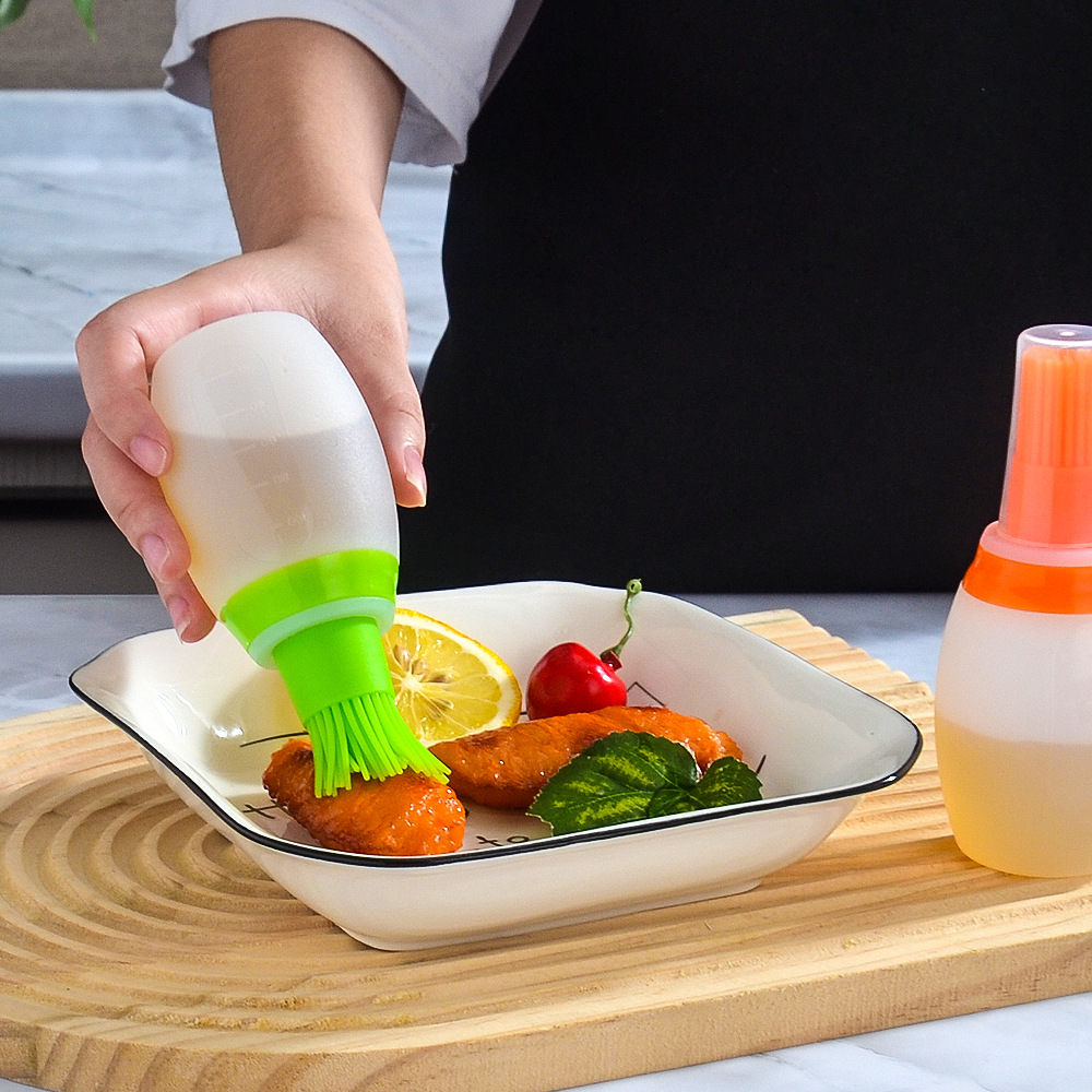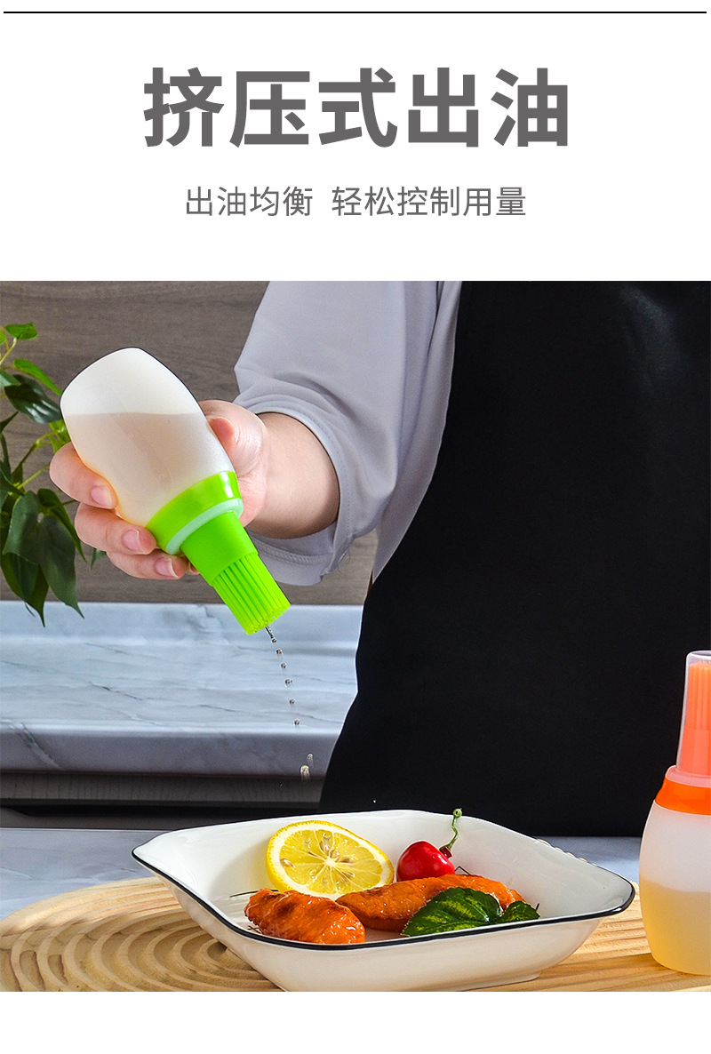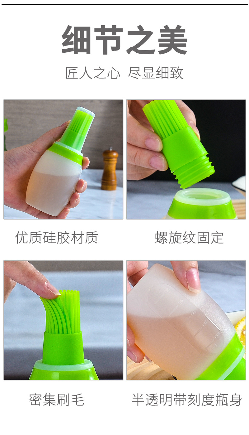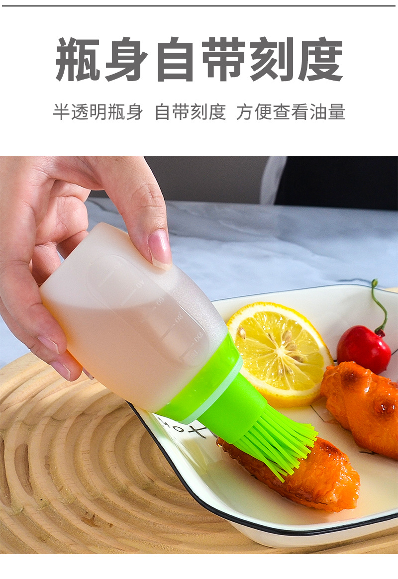 带盖硅胶油瓶刷厨房带刻度油壶酱料瓶耐高温户外烧烤油瓶刷