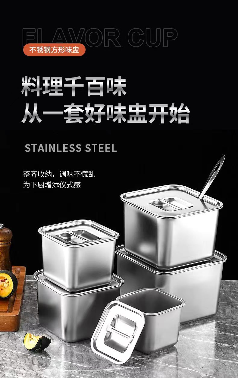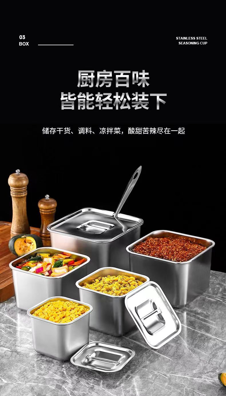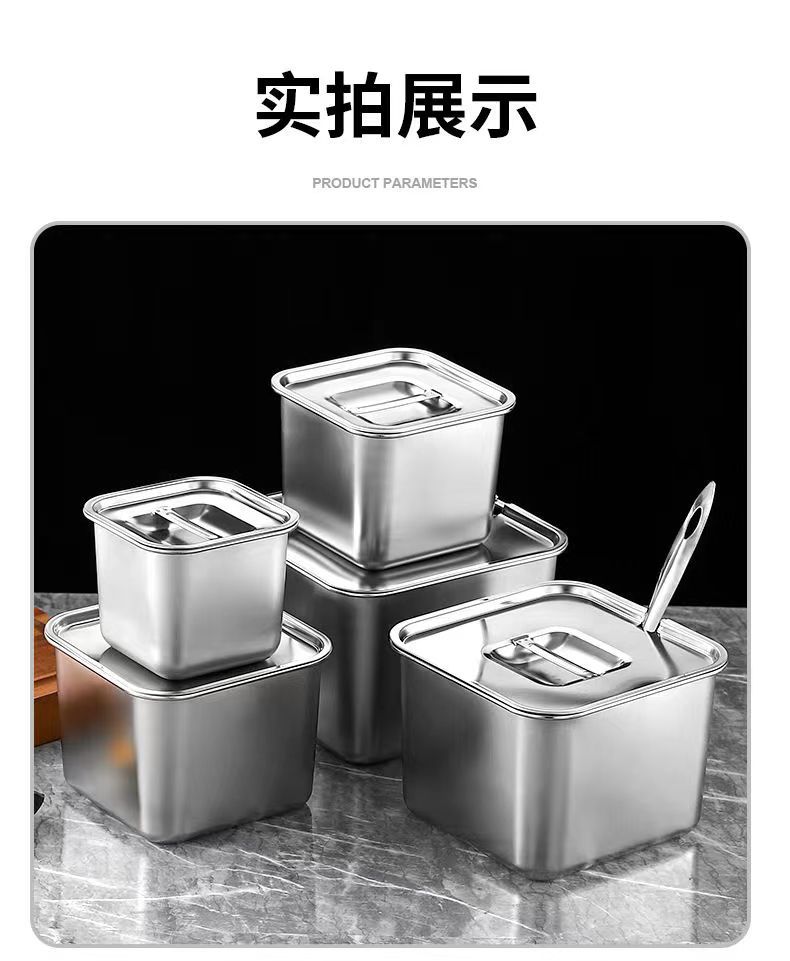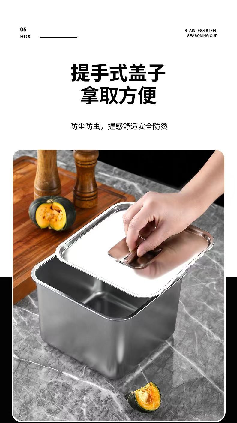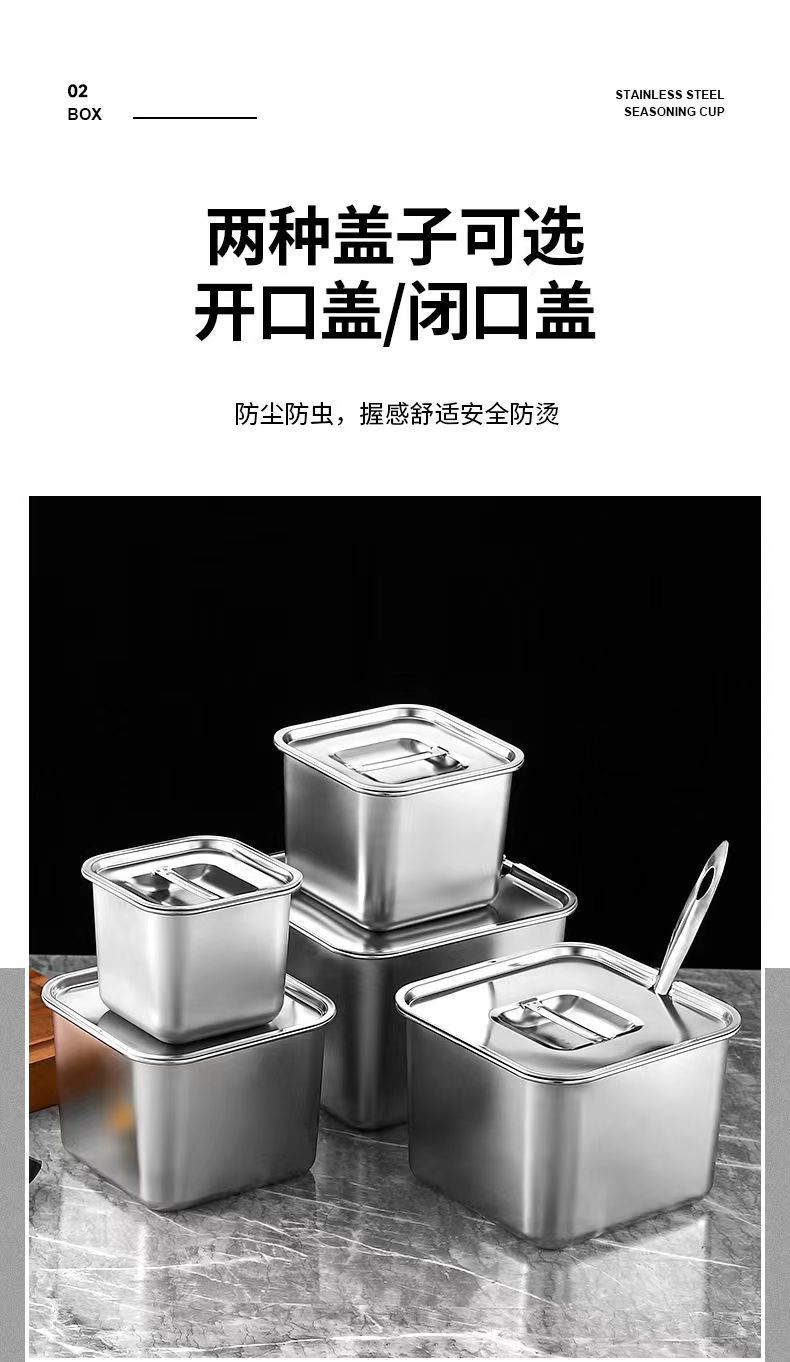 不锈钢调料盒带盖商用调味盒正方形不锈钢味盅厨房配料盒猪油盆