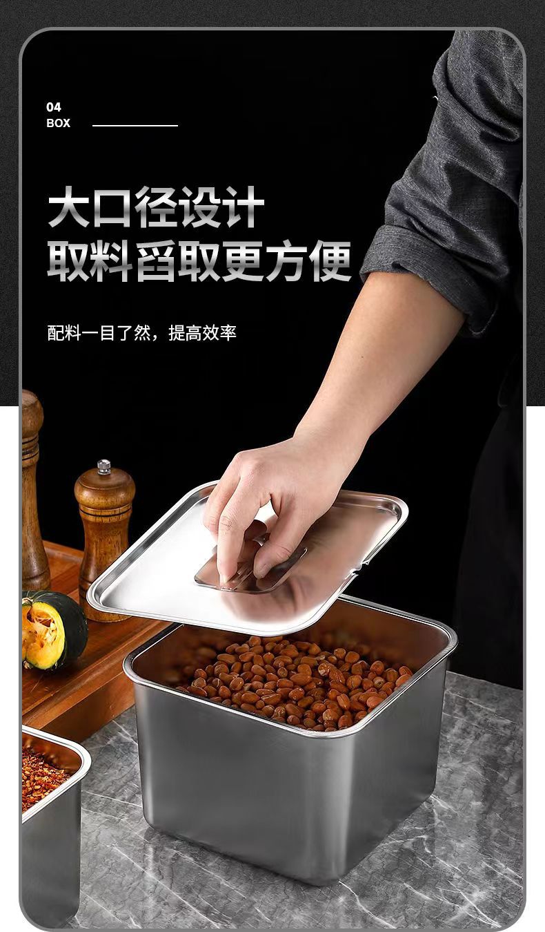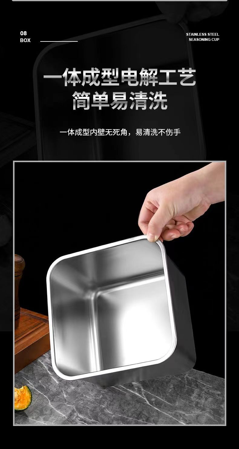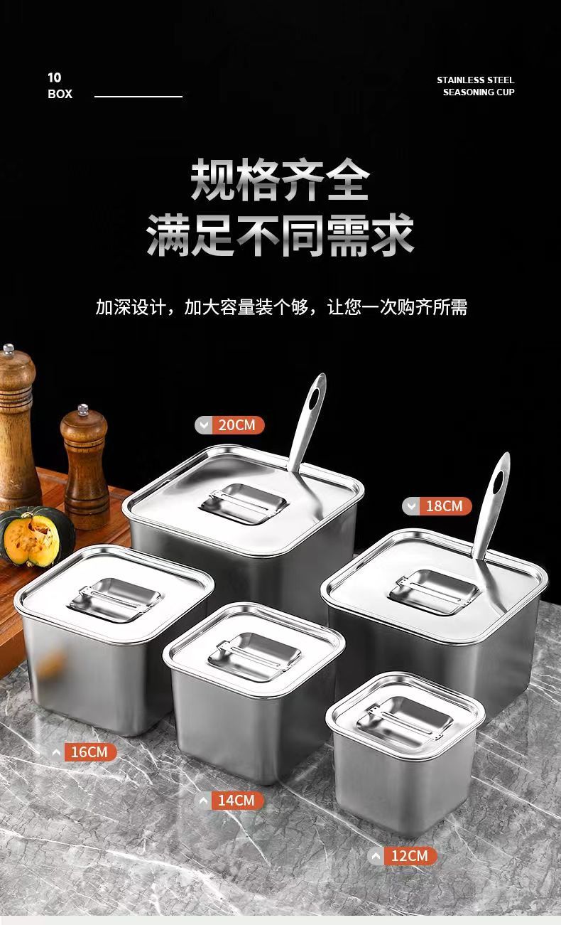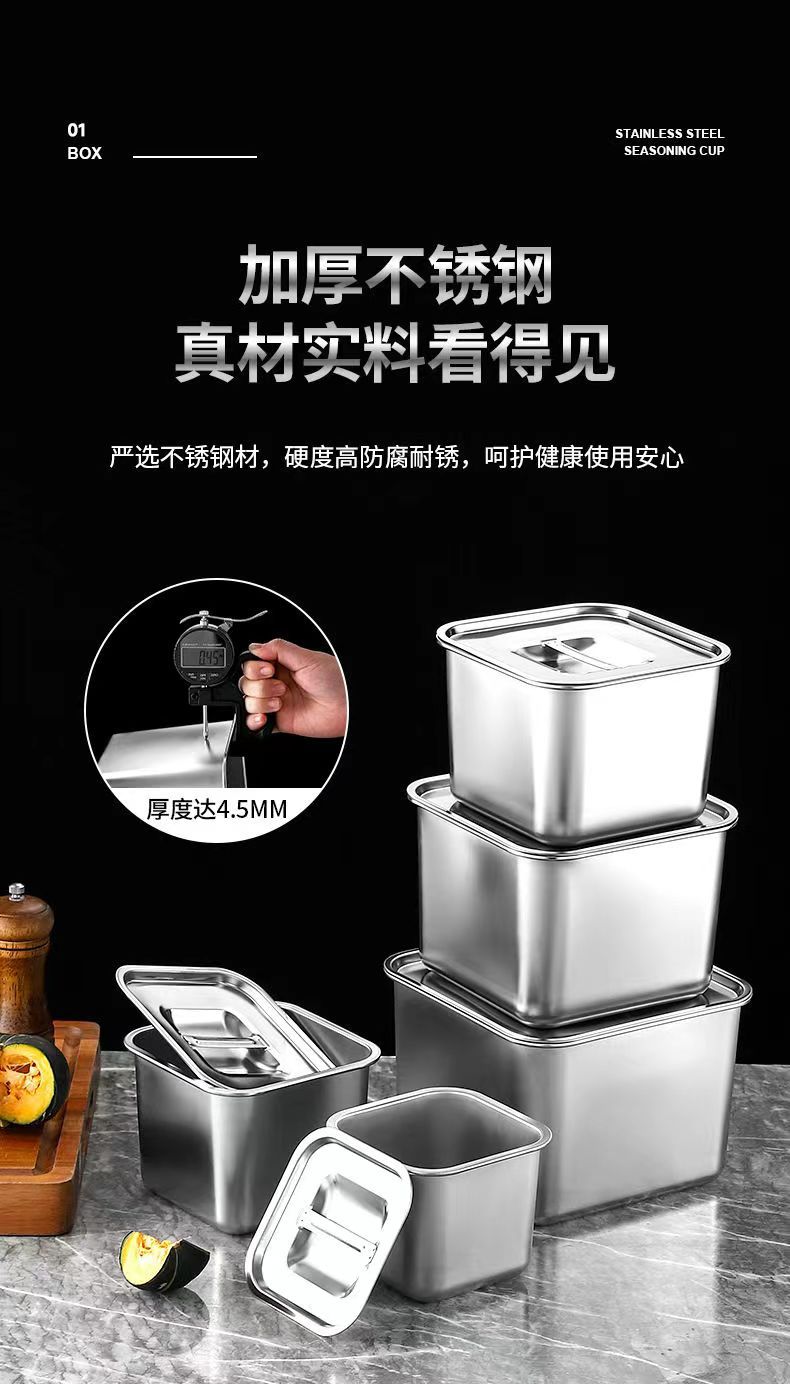 不锈钢调料盒带盖商用调味盒正方形不锈钢味盅厨房配料盒猪油盆