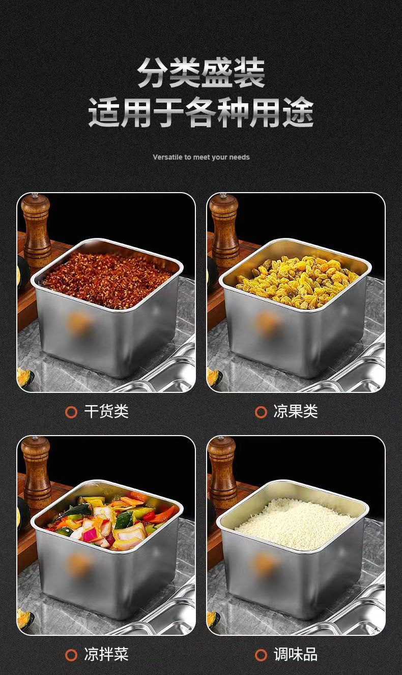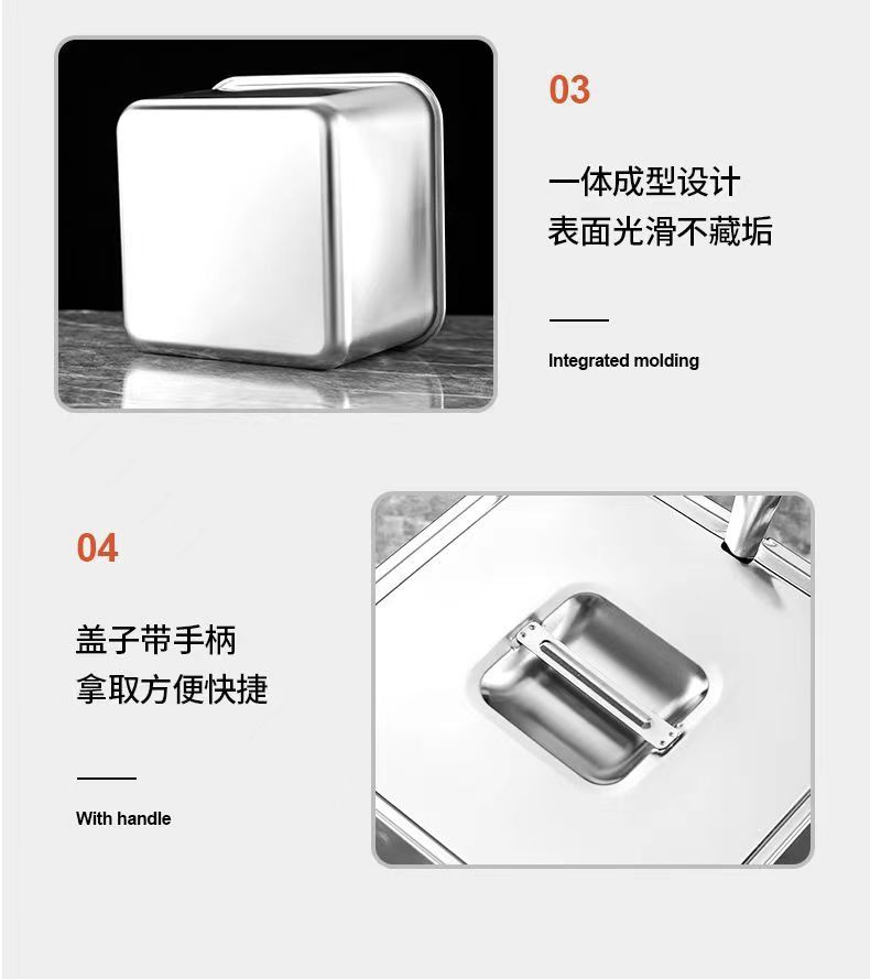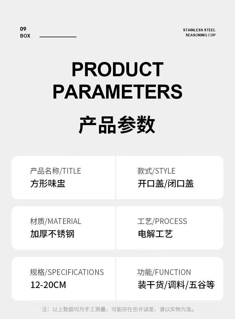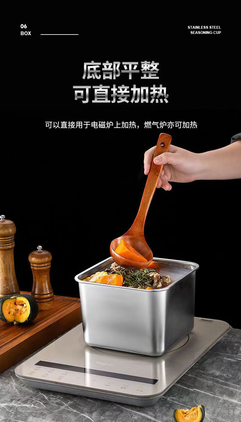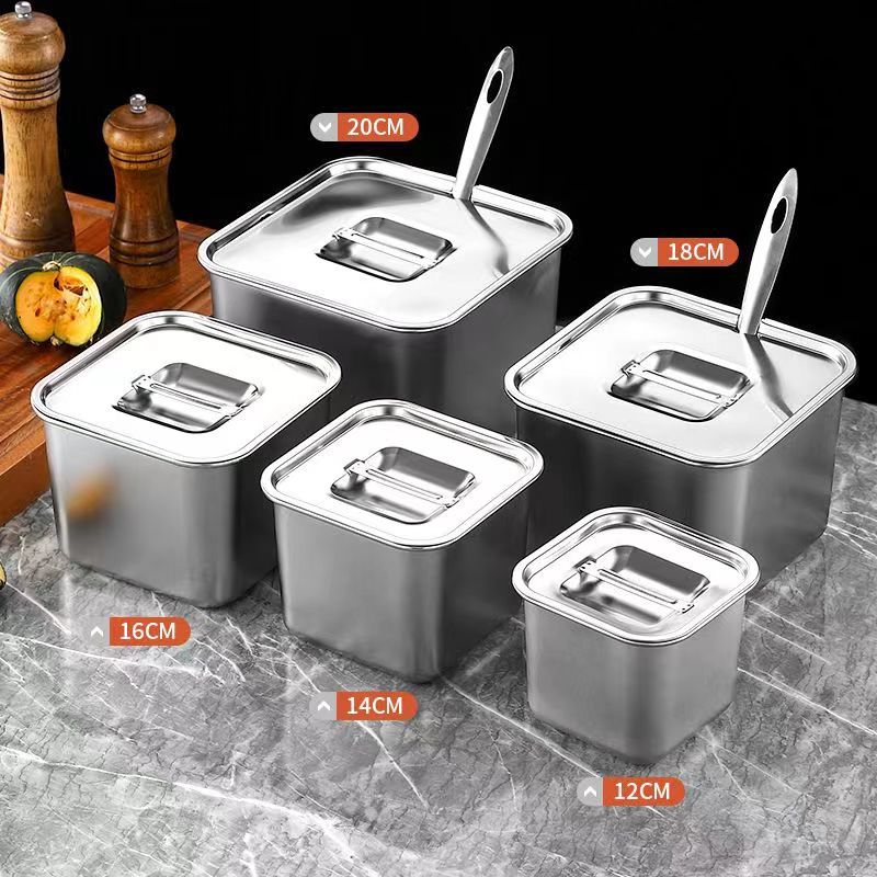 不锈钢调料盒带盖商用调味盒正方形不锈钢味盅厨房配料盒猪油盆