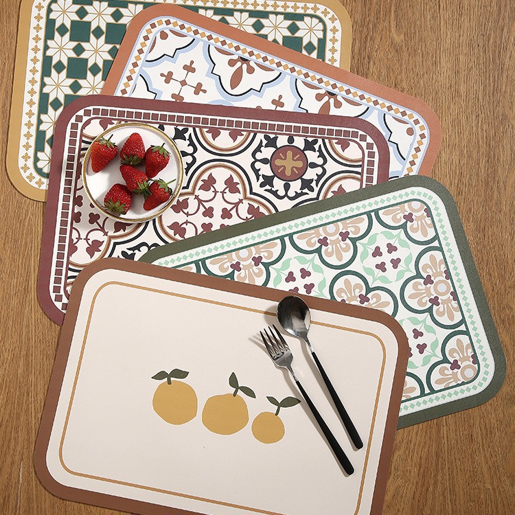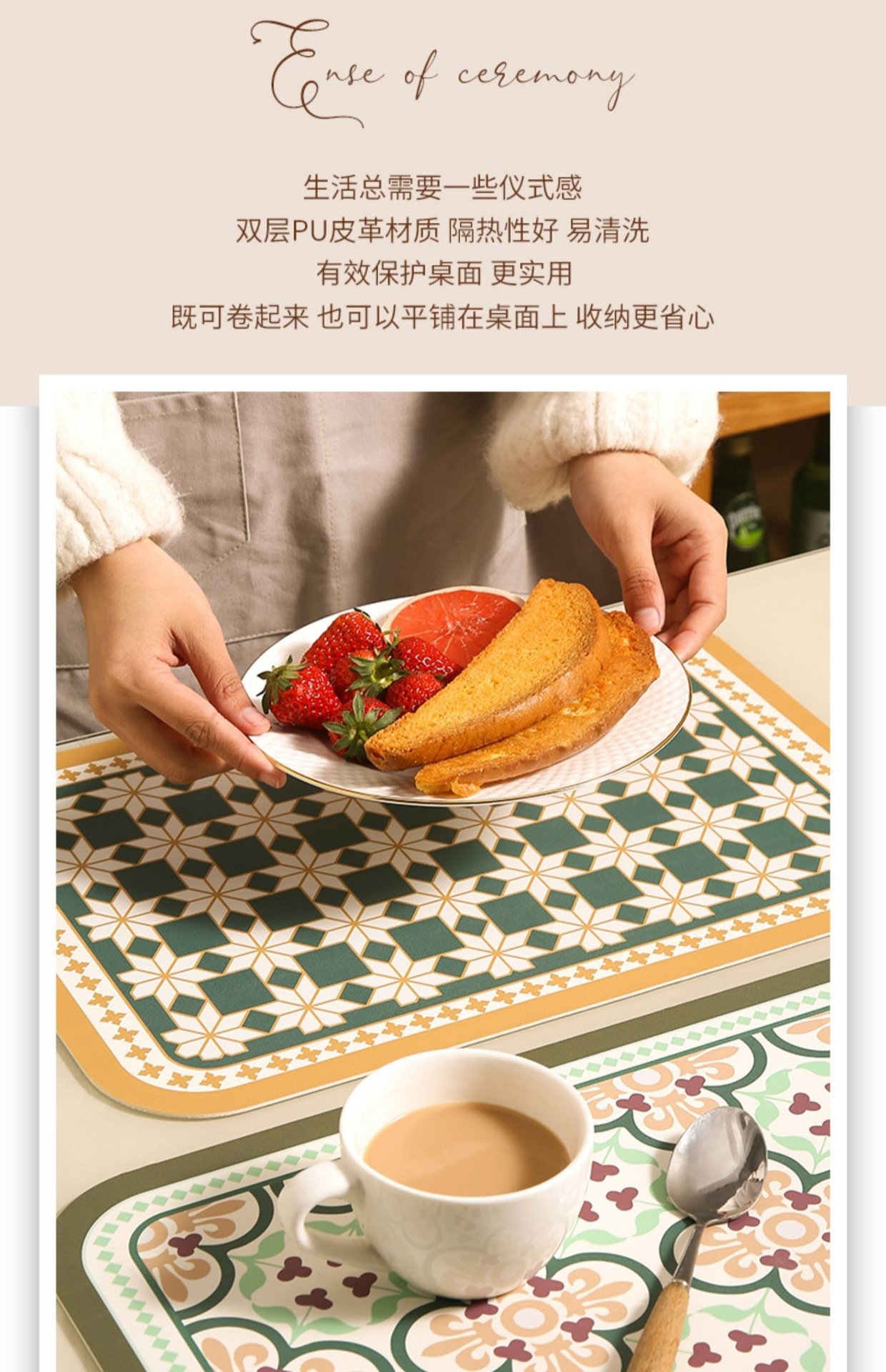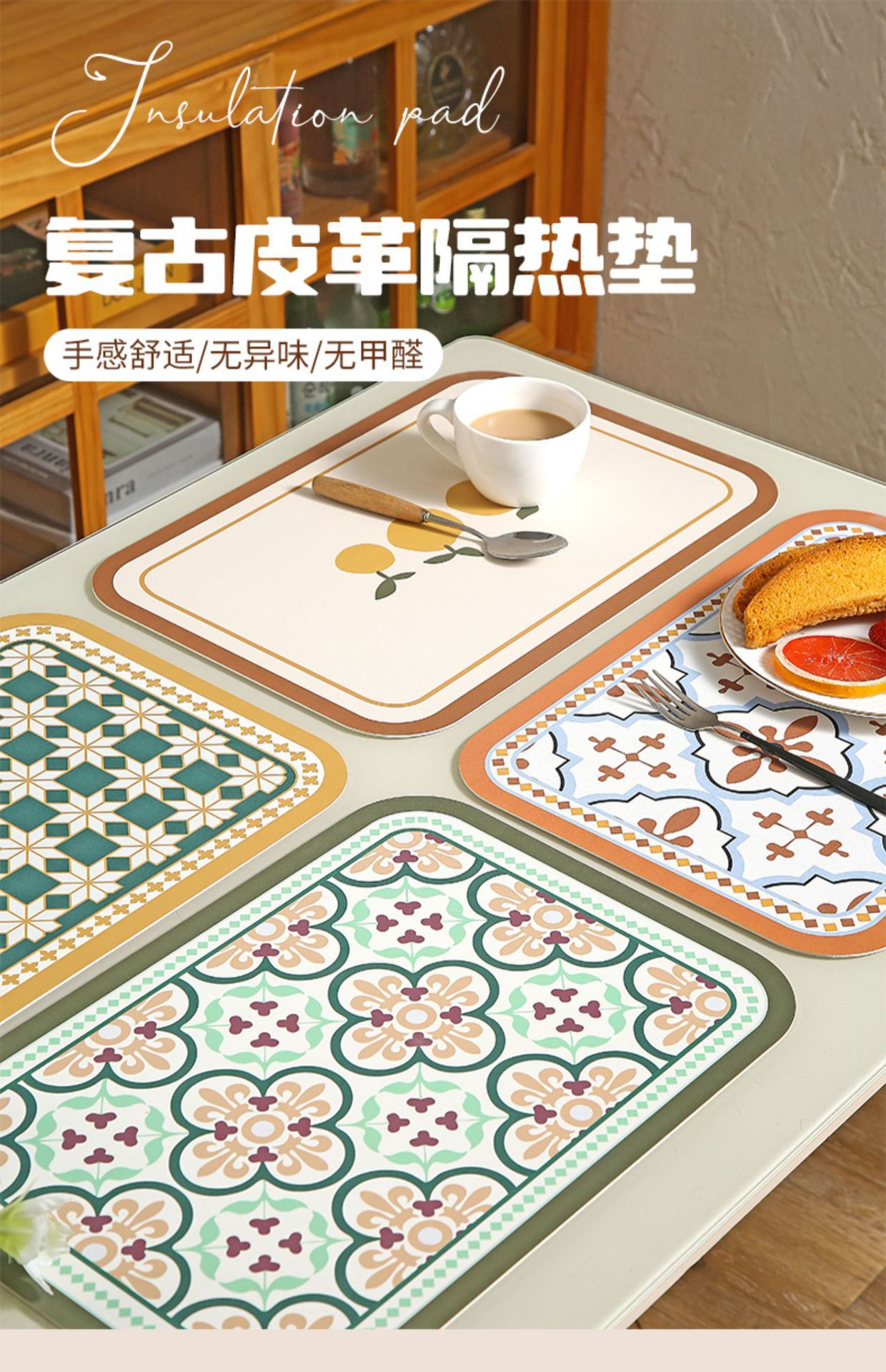 餐垫复古厨房防水防油桌布花砖系列可擦免洗餐垫防滑耐磨皮革桌垫