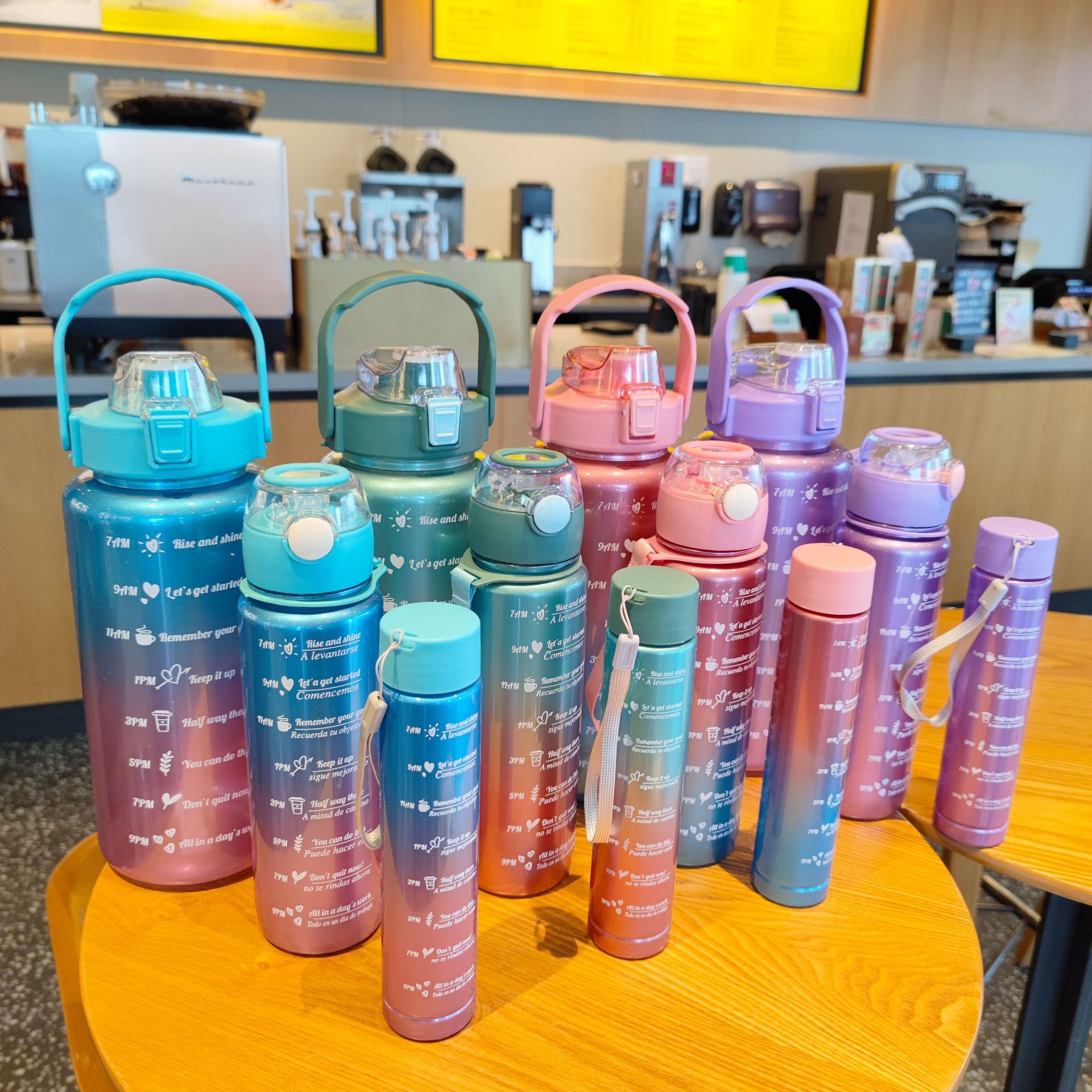 外贸跨境亚马逊电商三件套大容量塑料杯吸管杯弹跳盖运动水瓶户外