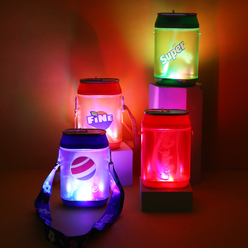 厂家创意新品吸管背带造型杯炫彩闪光灯塑料杯OEM贴牌加工广告杯