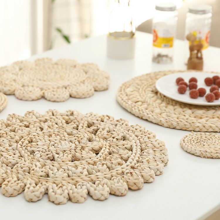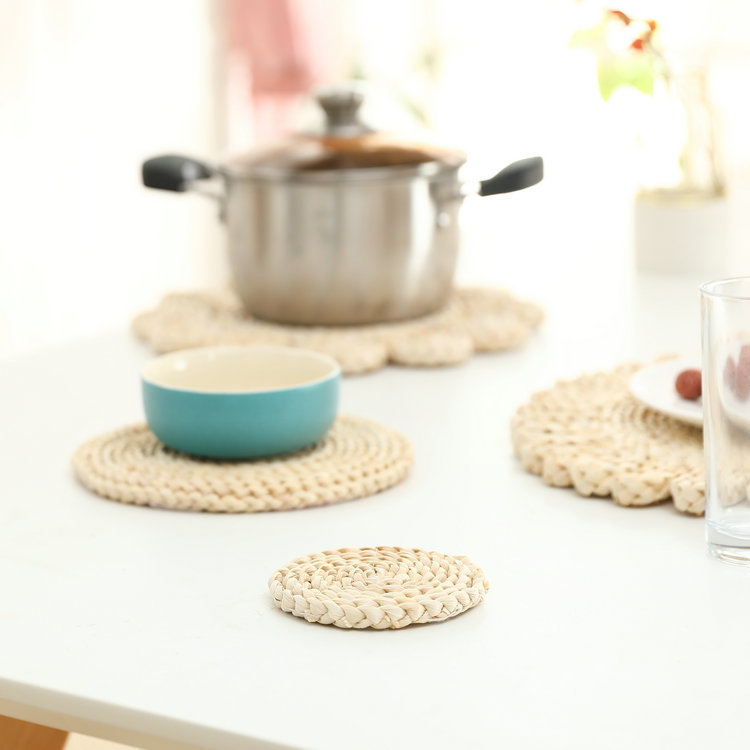 日式圆形大餐垫餐桌垫防烫隔热垫高密度家用锅垫玉米皮草编垫子