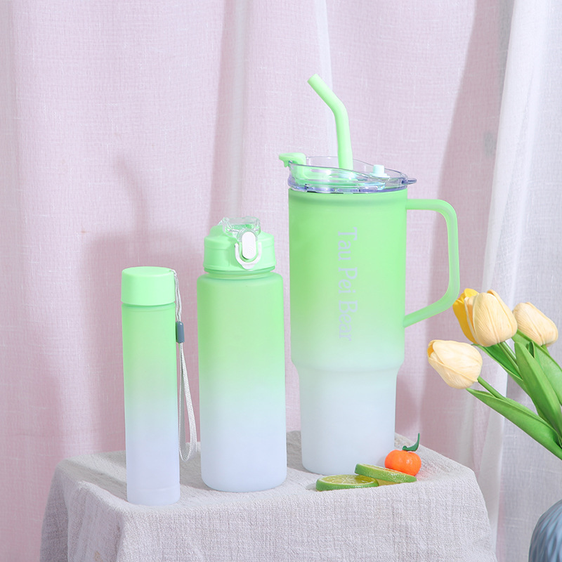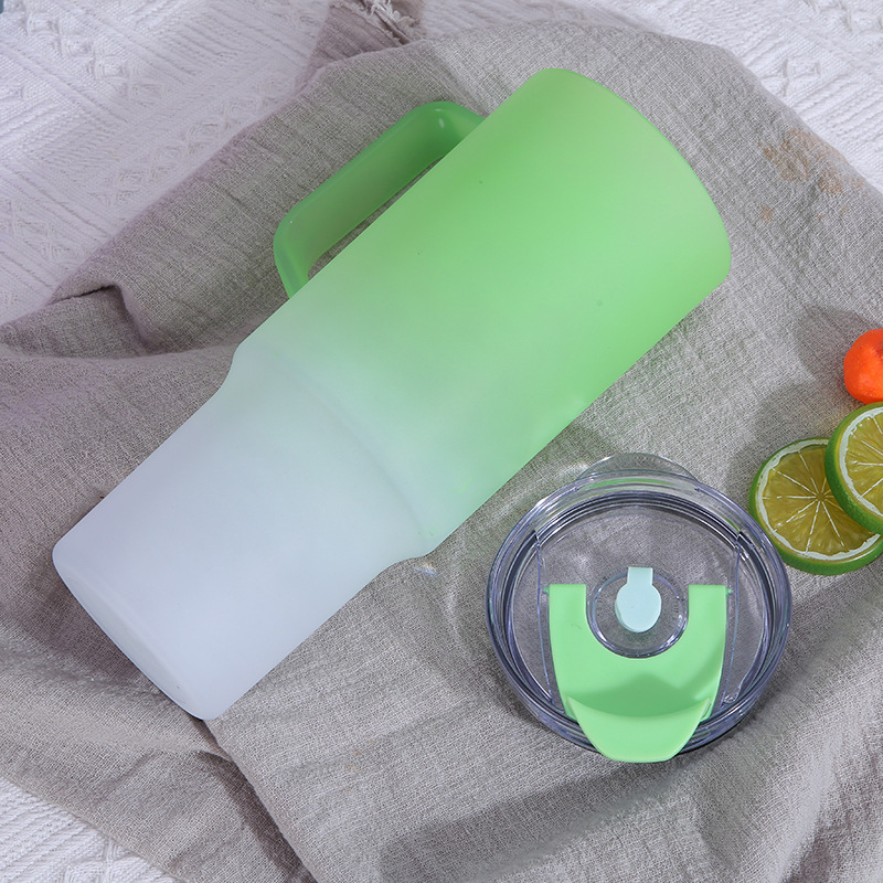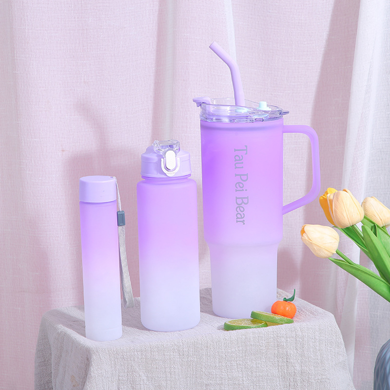 跨境40冰霸杯渐变色塑料水杯大容量带吸管杯子手柄款外贸三件套12