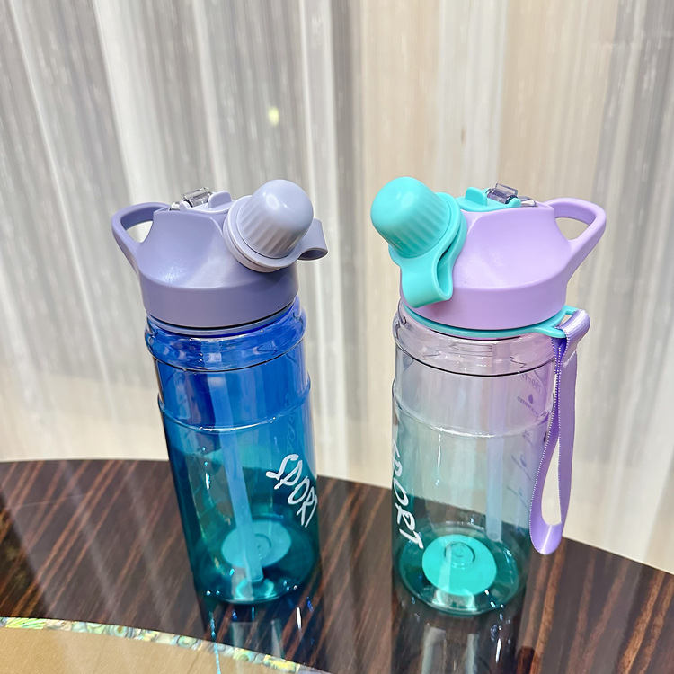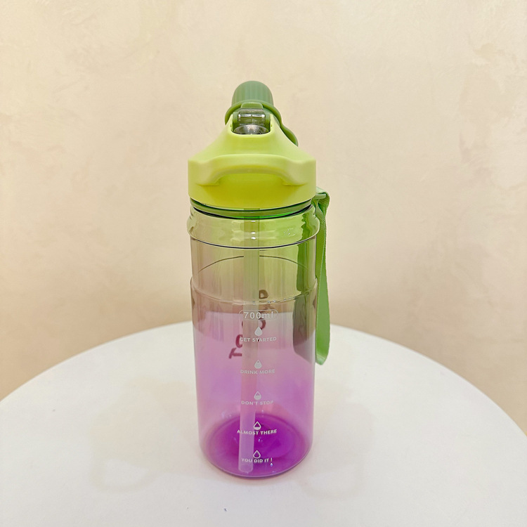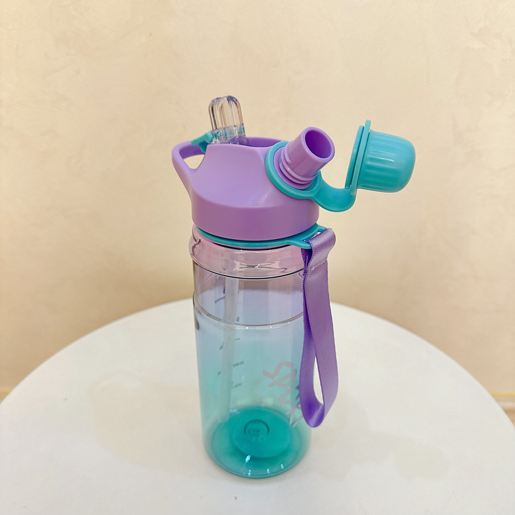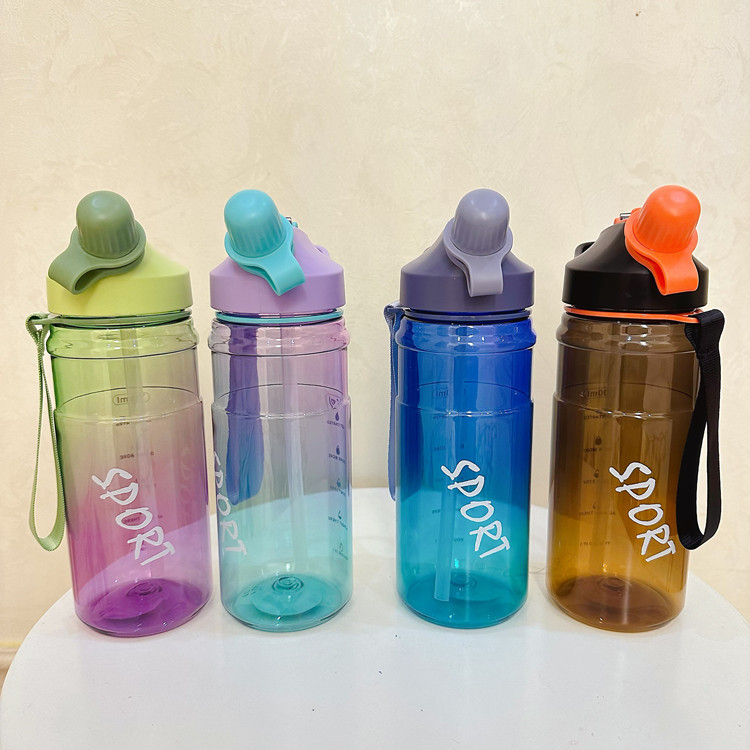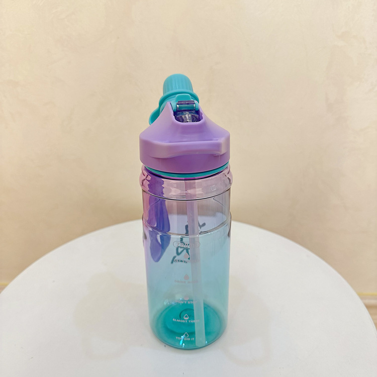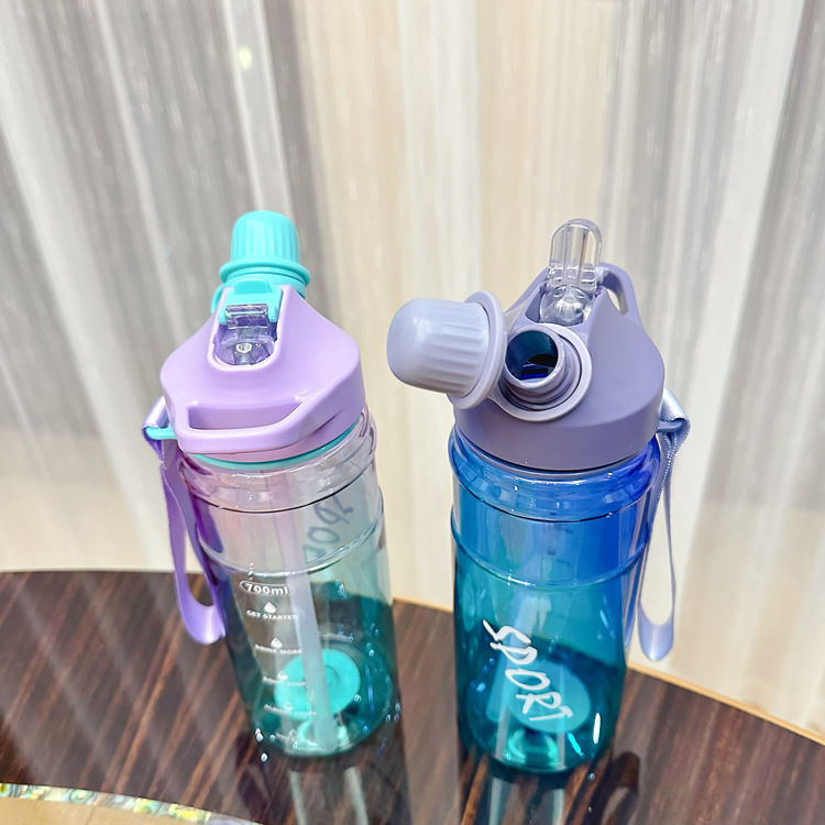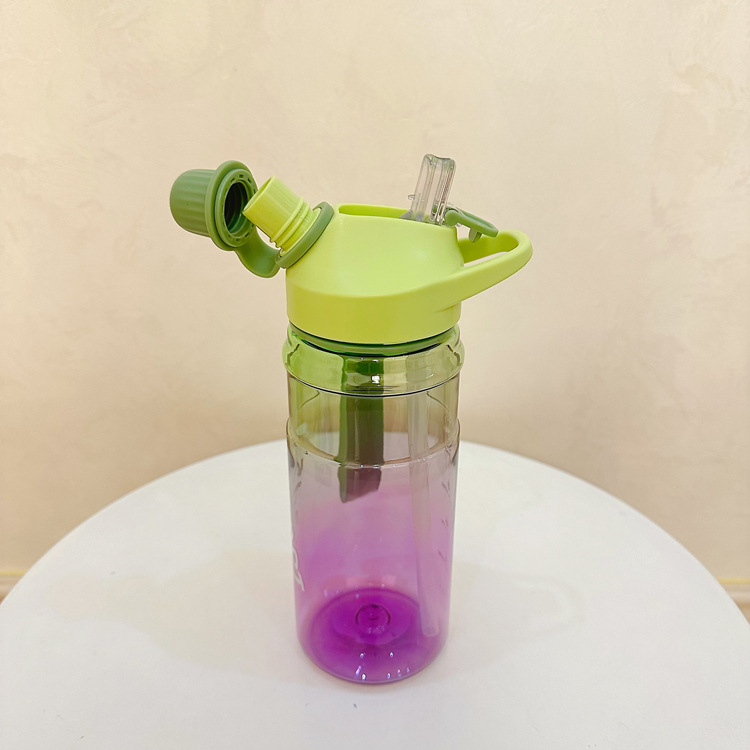 渐变两色学生水杯便携撞色吸管直饮塑料杯高颜值随手杯