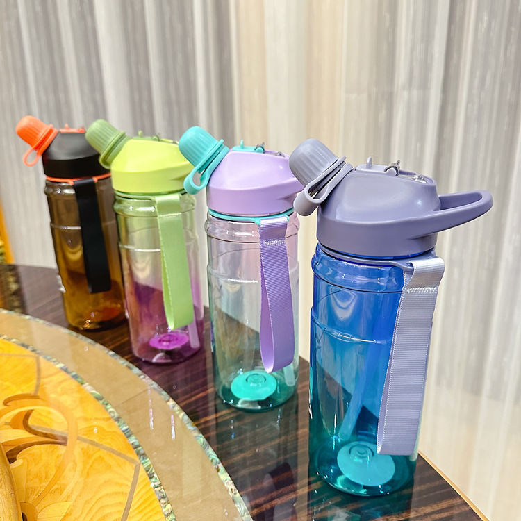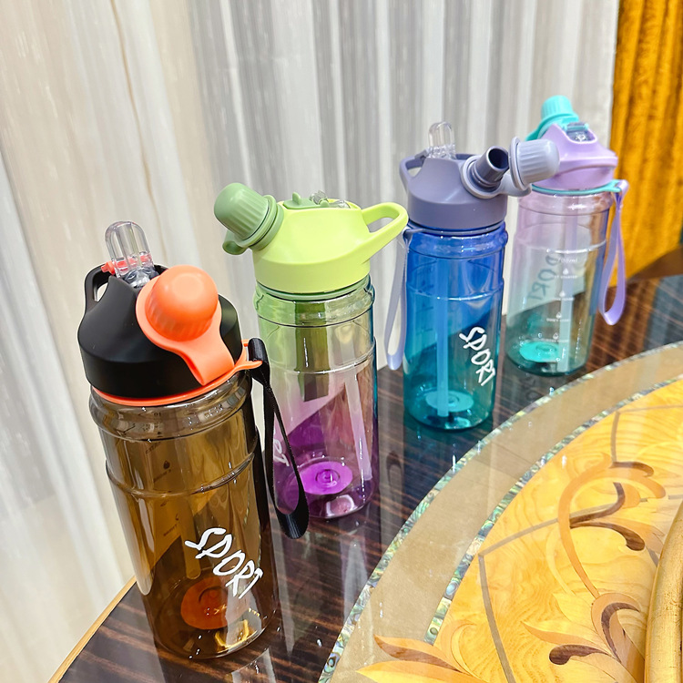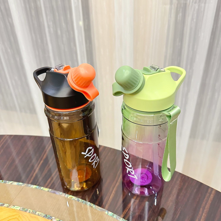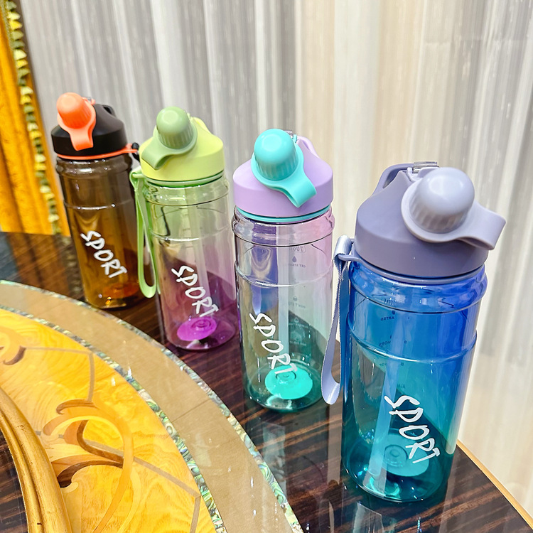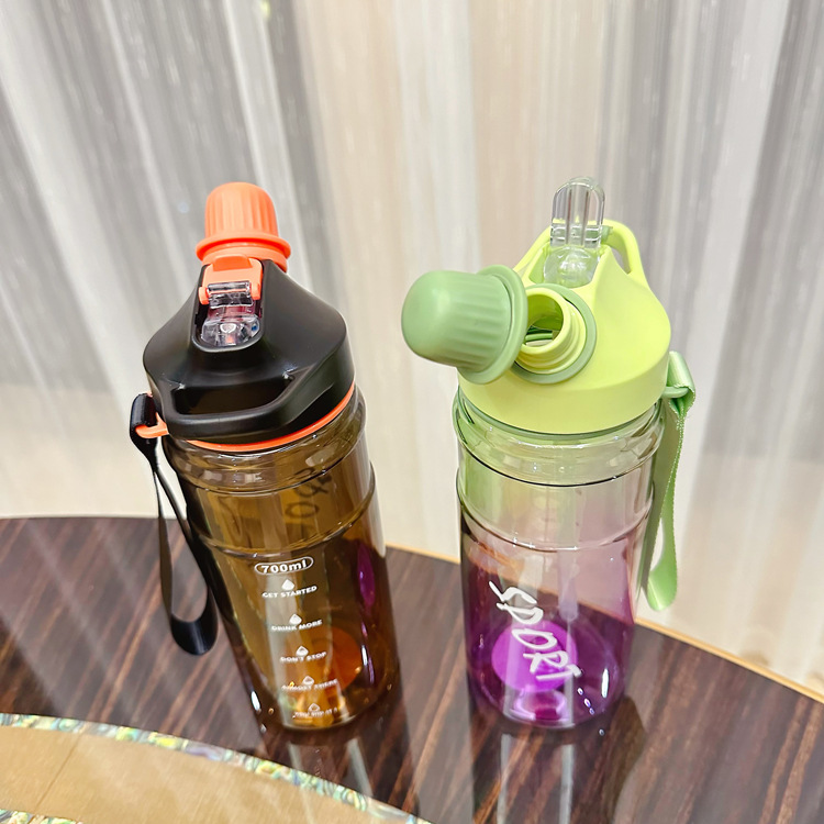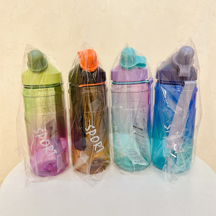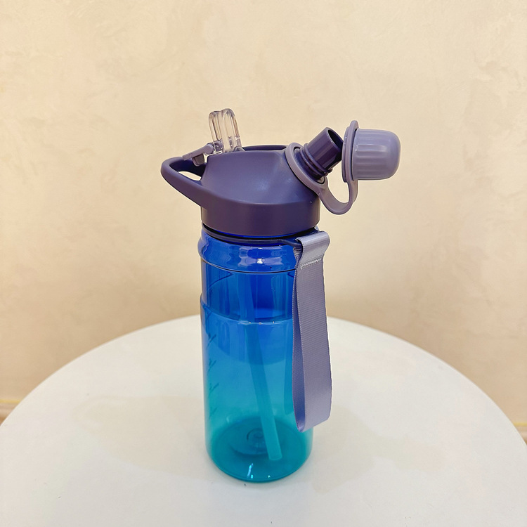渐变两色学生水杯便携撞色吸管直饮塑料杯高颜值随手杯