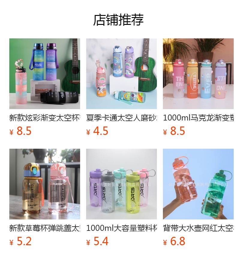 新款炫彩透明渐变太空杯带提手绳户外运动弹跳盖塑料水杯