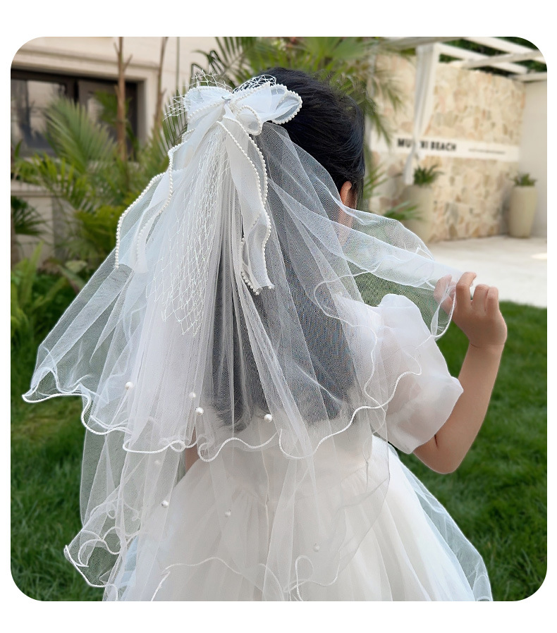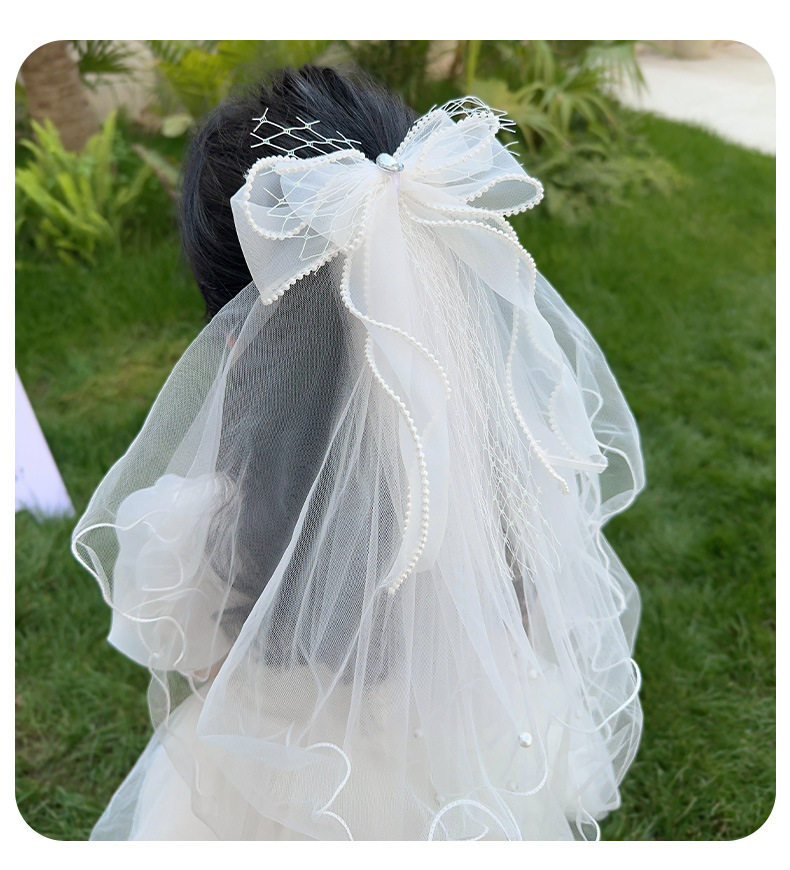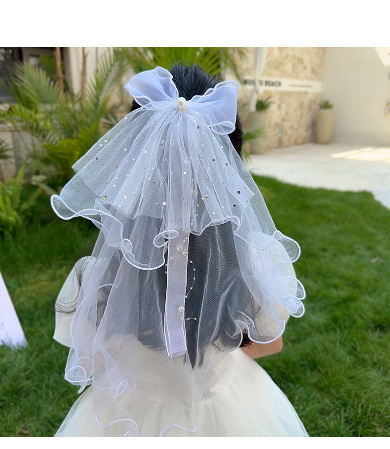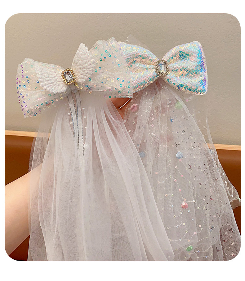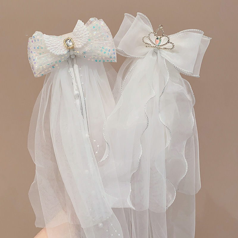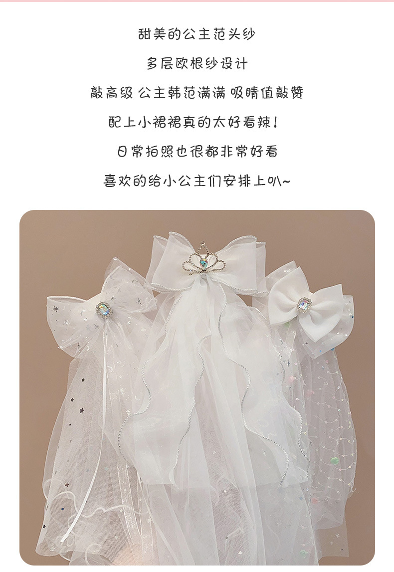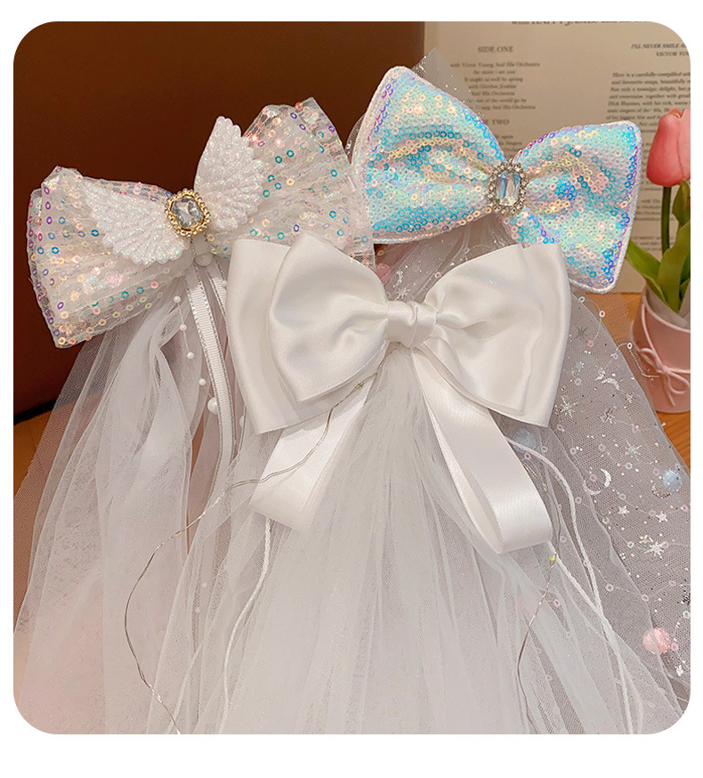 儿童发夹会发光蝴蝶结头纱公主皇冠网纱顶夹领证登记头饰花童发饰