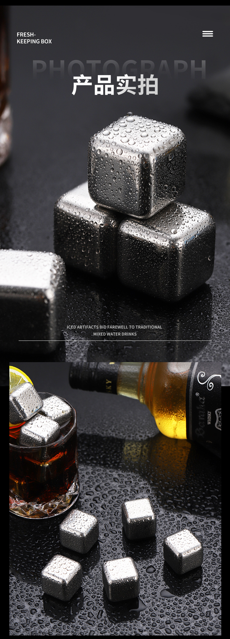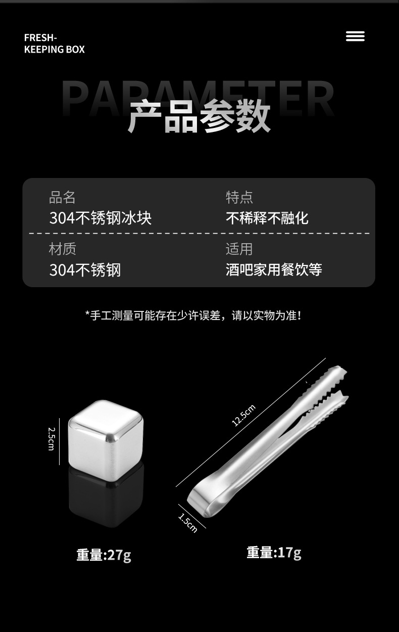 304不锈钢冰块食品级速冻冰粒饮料冰酒石酒吧威士忌啤酒金属冰块