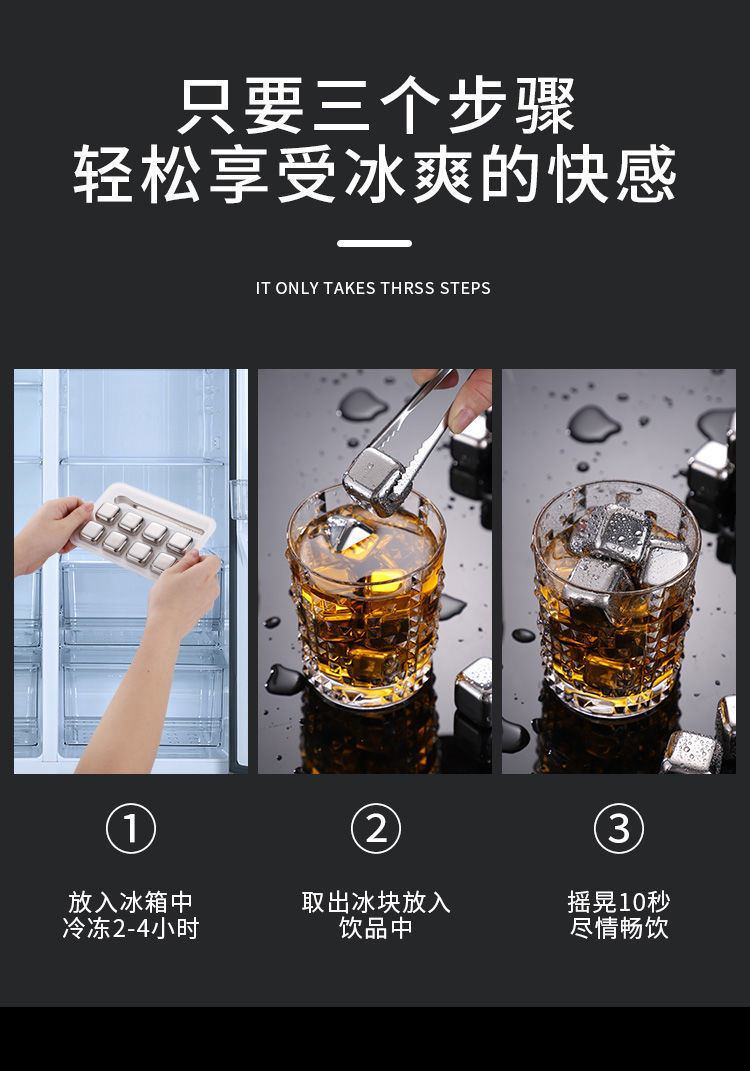 304不锈钢冰块金属铁威士忌铁冰石家用冰镇316冰粒模具速冻冰酒石
