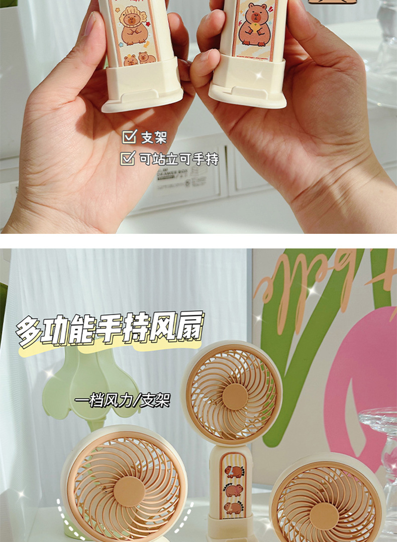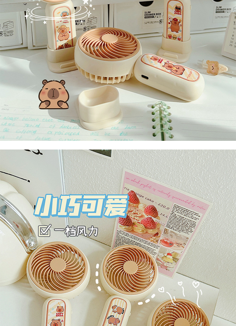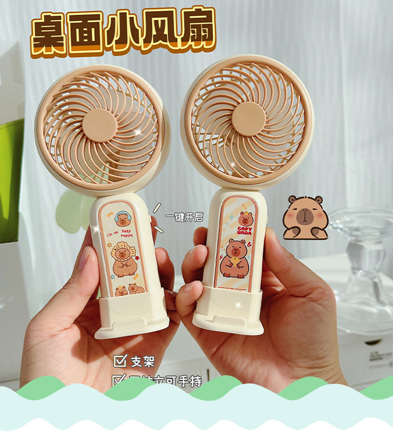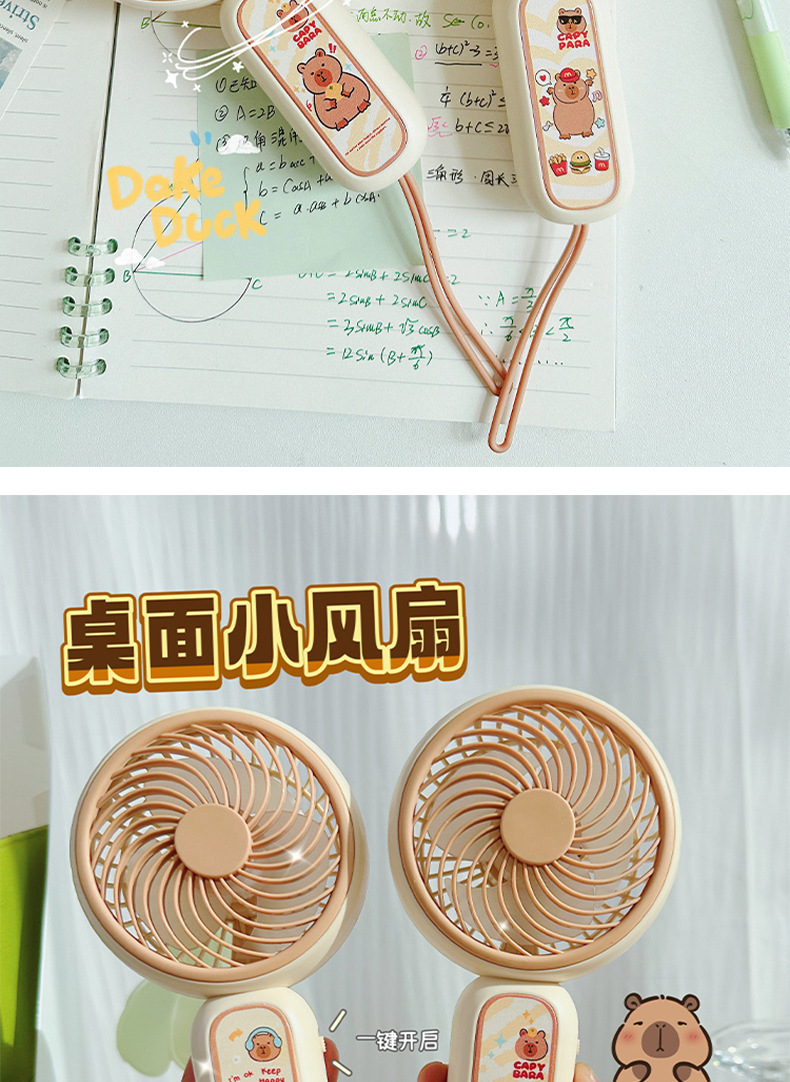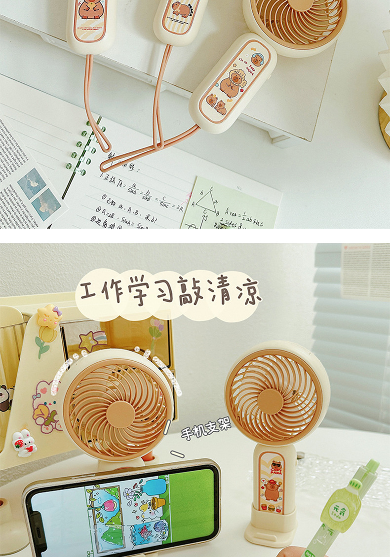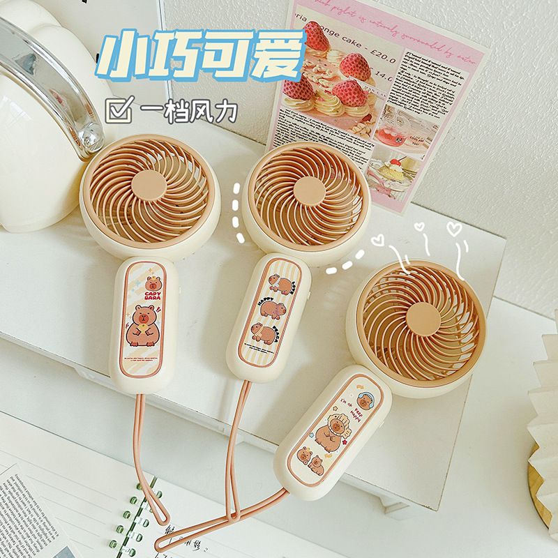 卡皮巴拉手持挂脖风扇USB充电迷你可爱便携挂绳风扇儿童礼品挂件