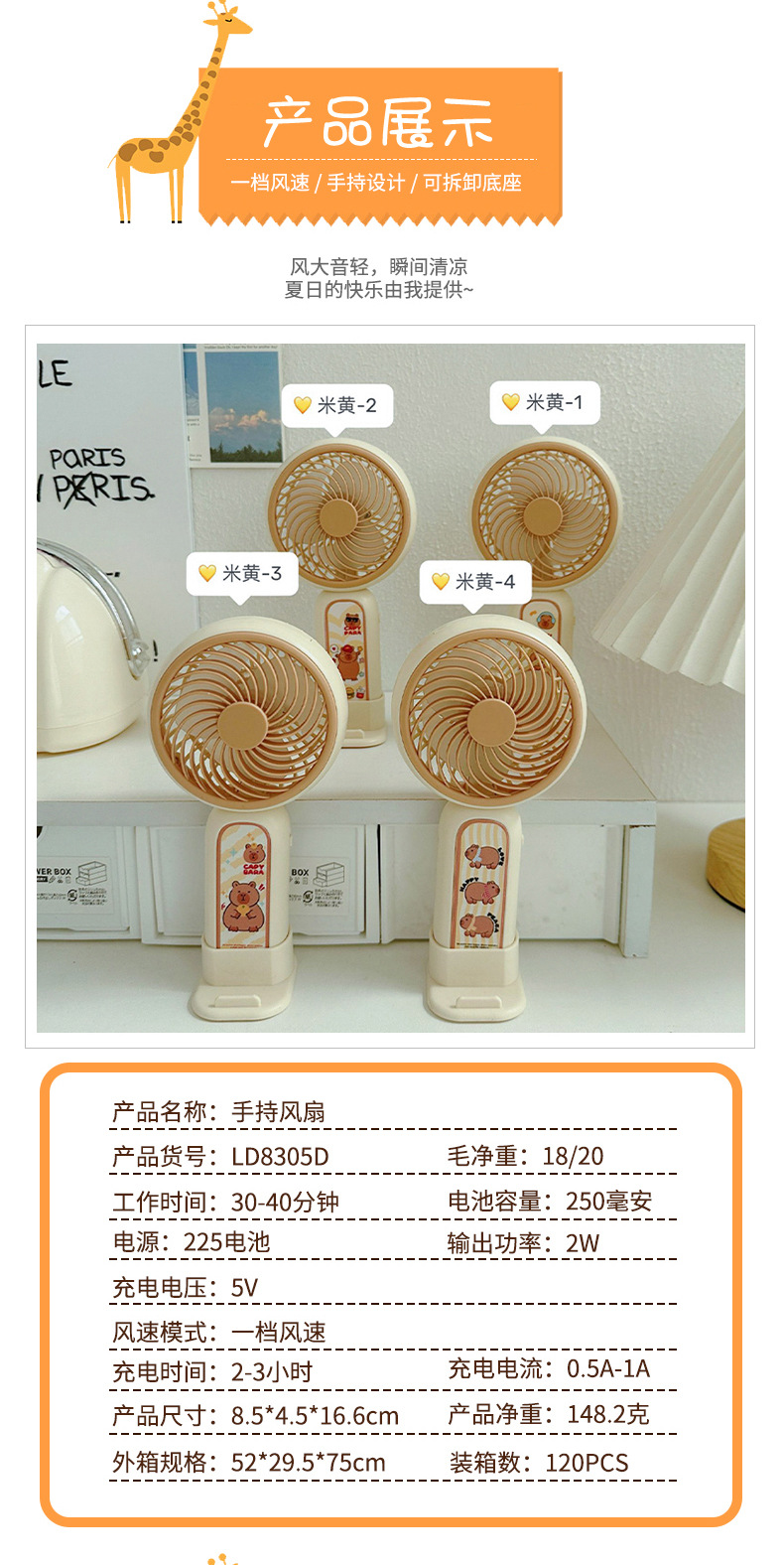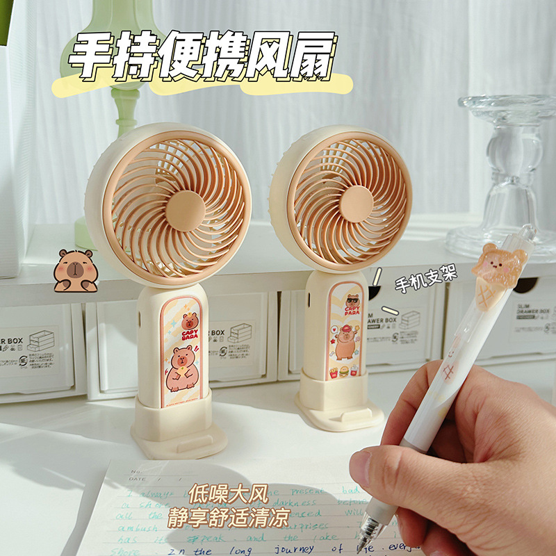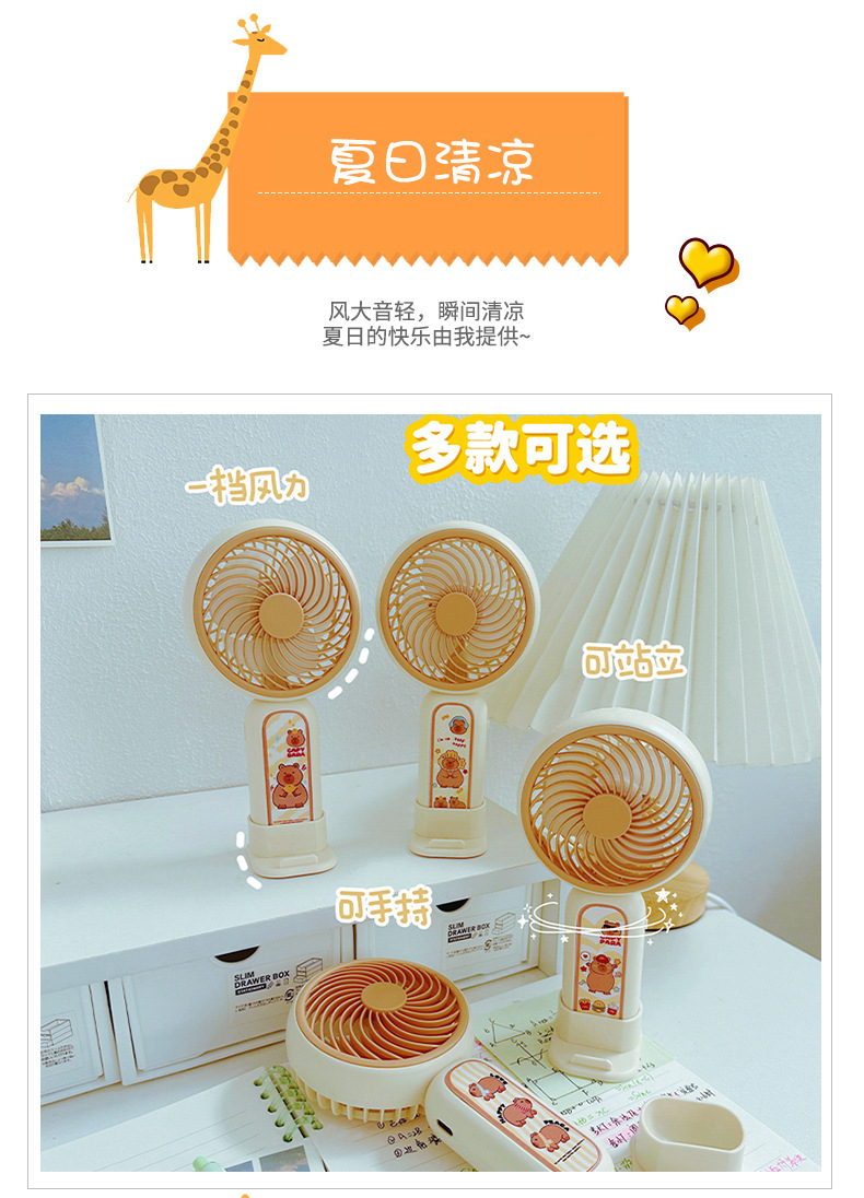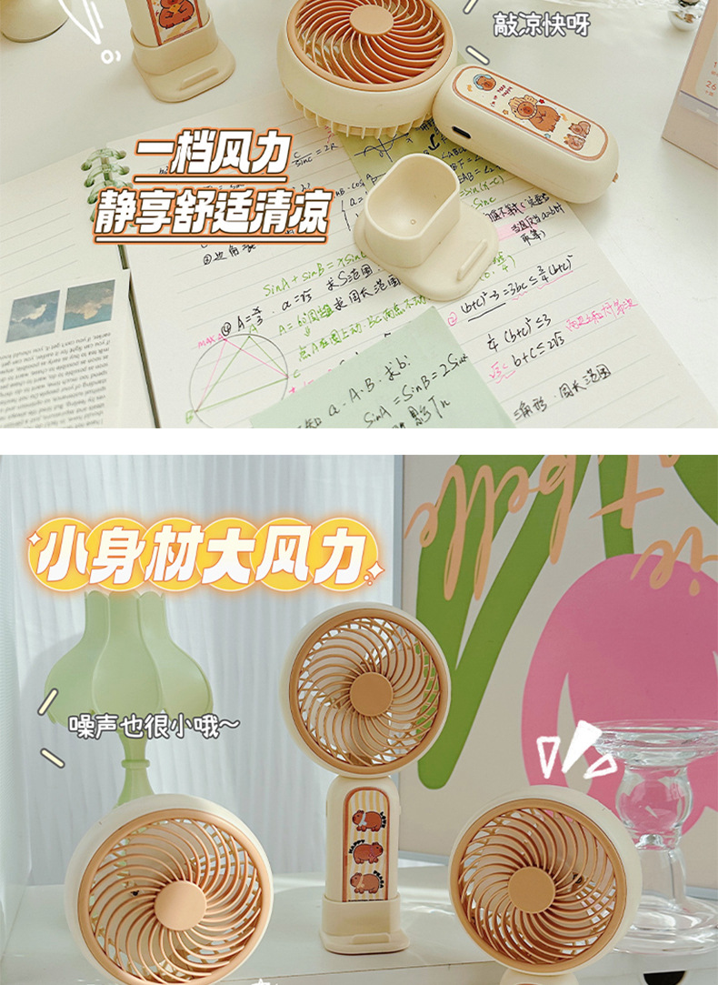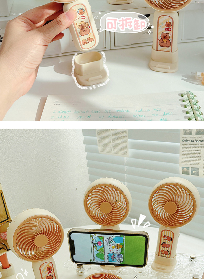 卡皮巴拉手持挂脖风扇USB充电迷你可爱便携挂绳风扇儿童礼品挂件