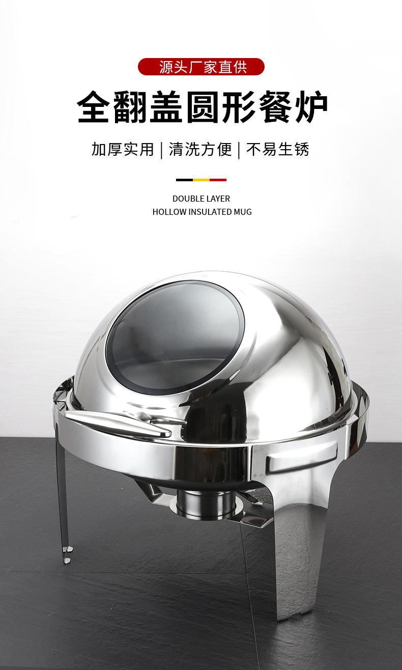 商用翻盖自助餐炉跨境加厚不锈钢布菲炉酒店餐厅酒精加热早餐炉